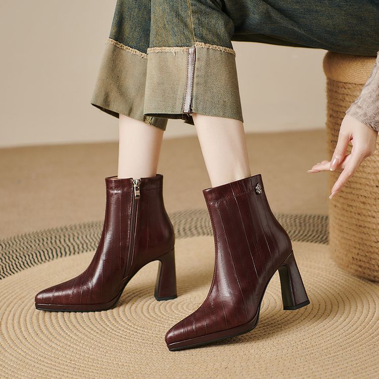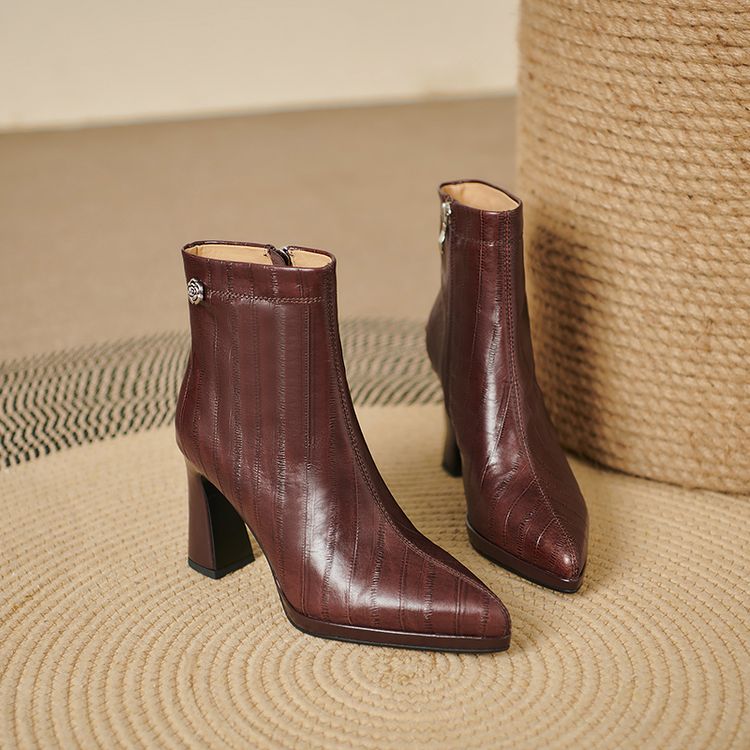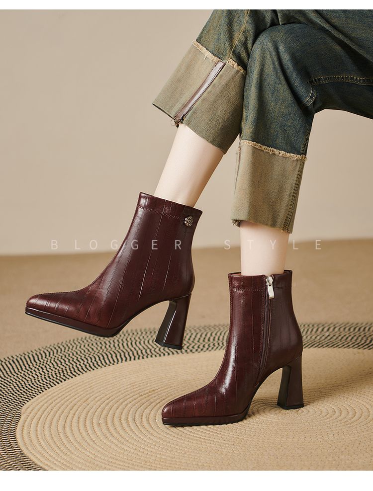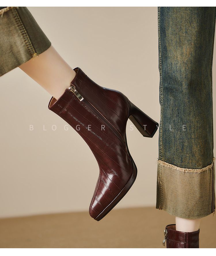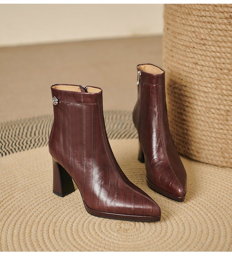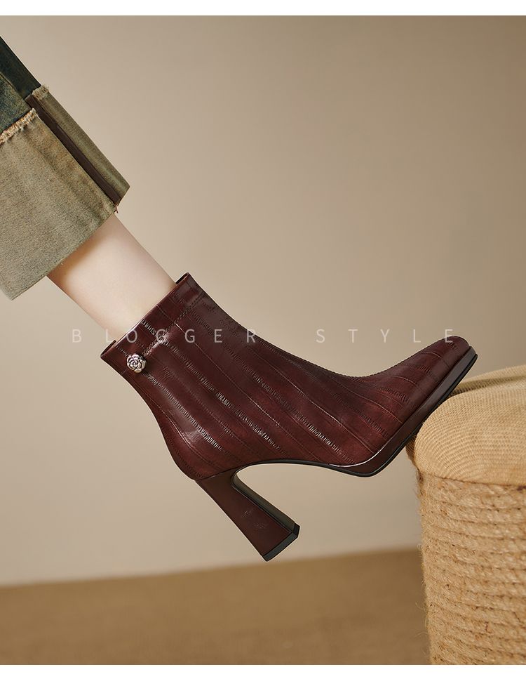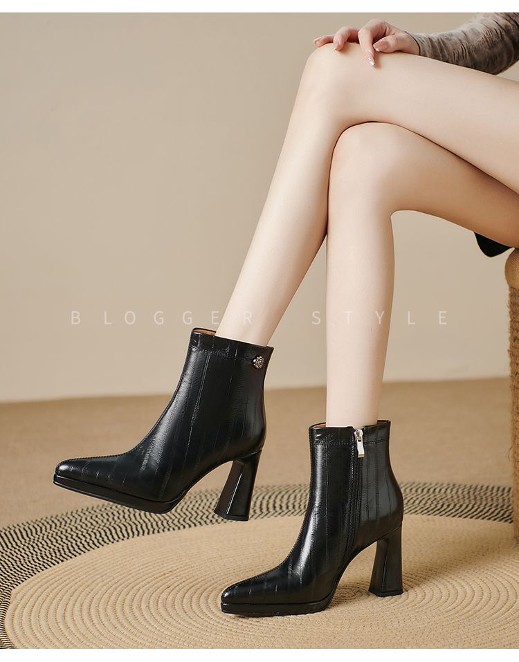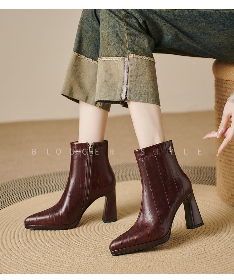【预售5天】尖头高跟短靴女秋冬新款黑色法式百搭粗跟马丁靴女QS&6070