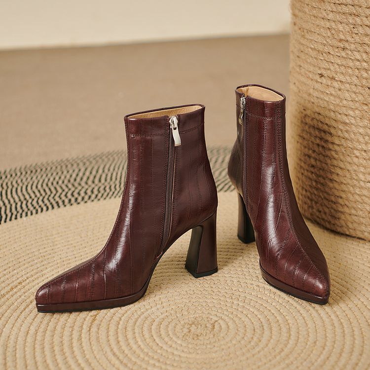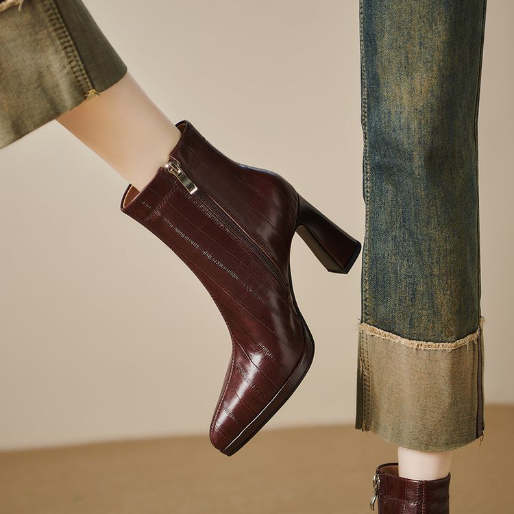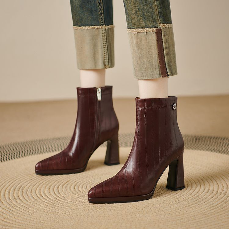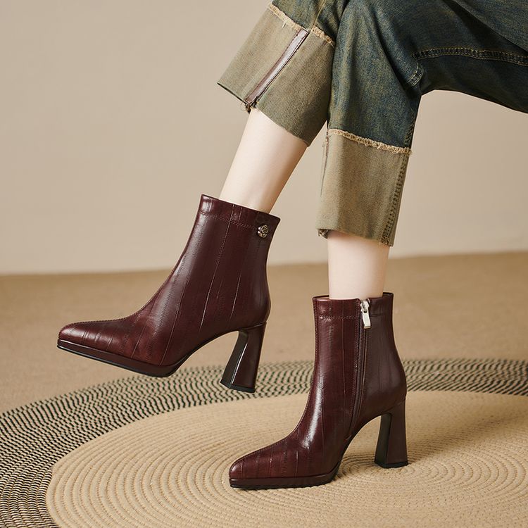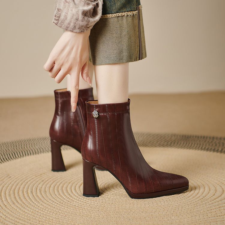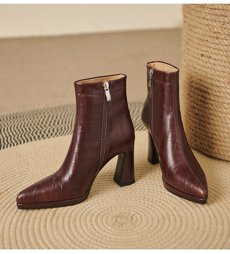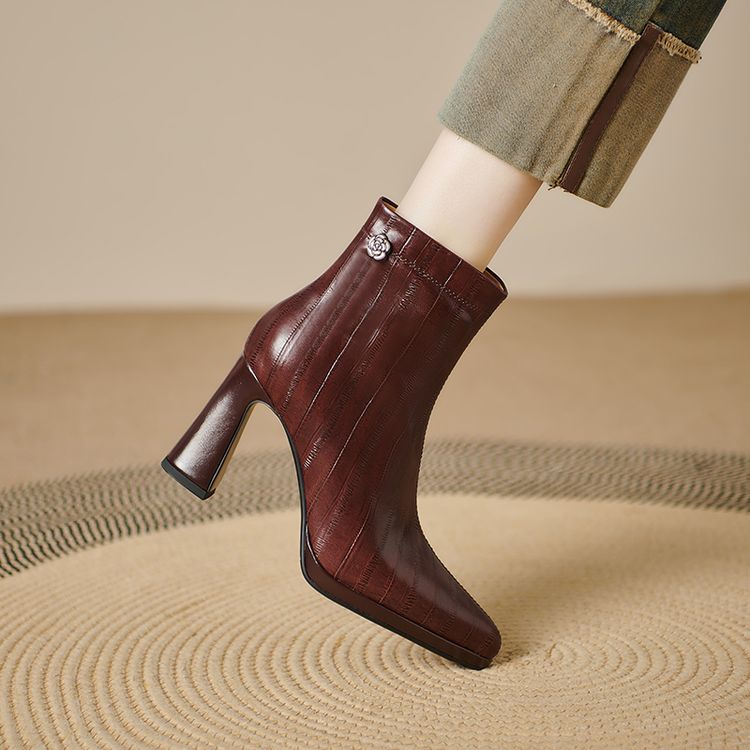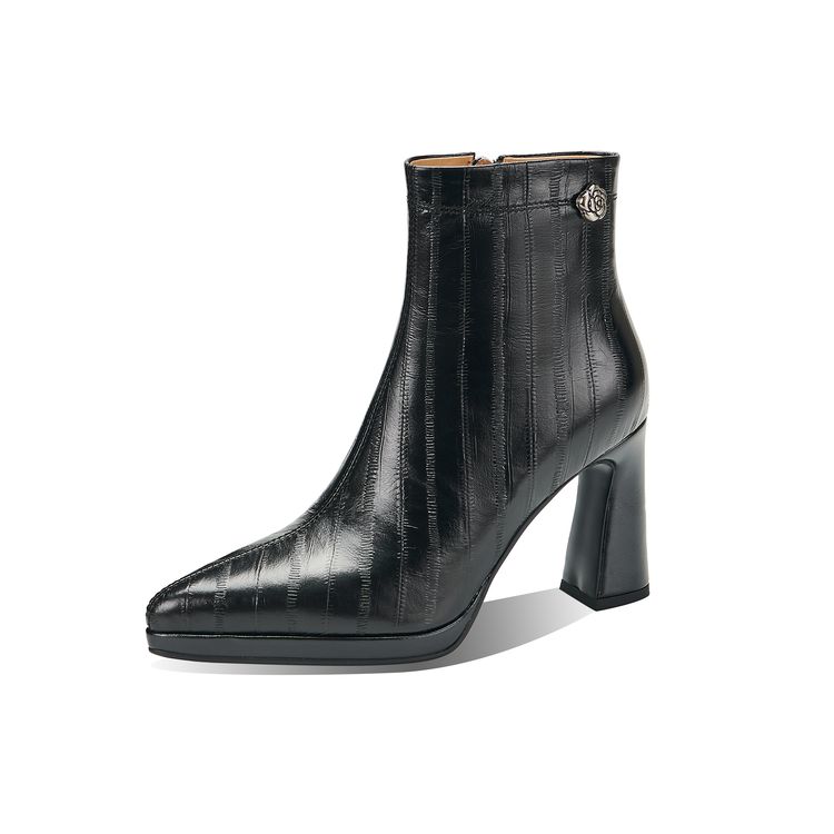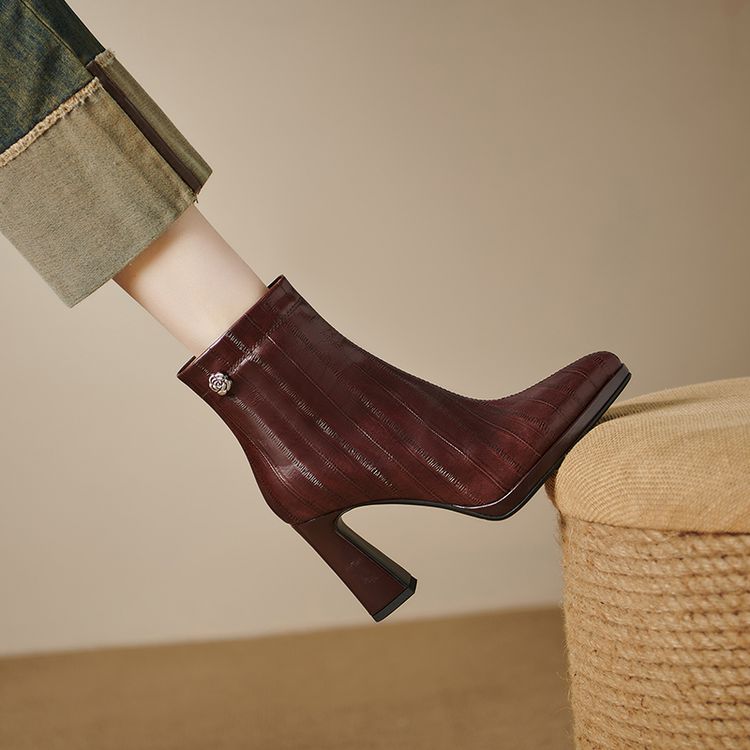 【预售5天】尖头高跟短靴女秋冬新款黑色法式百搭粗跟马丁靴女QS&6070