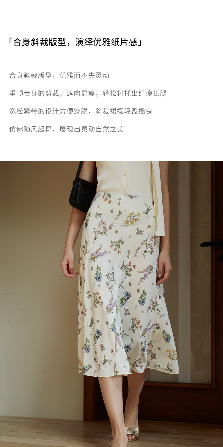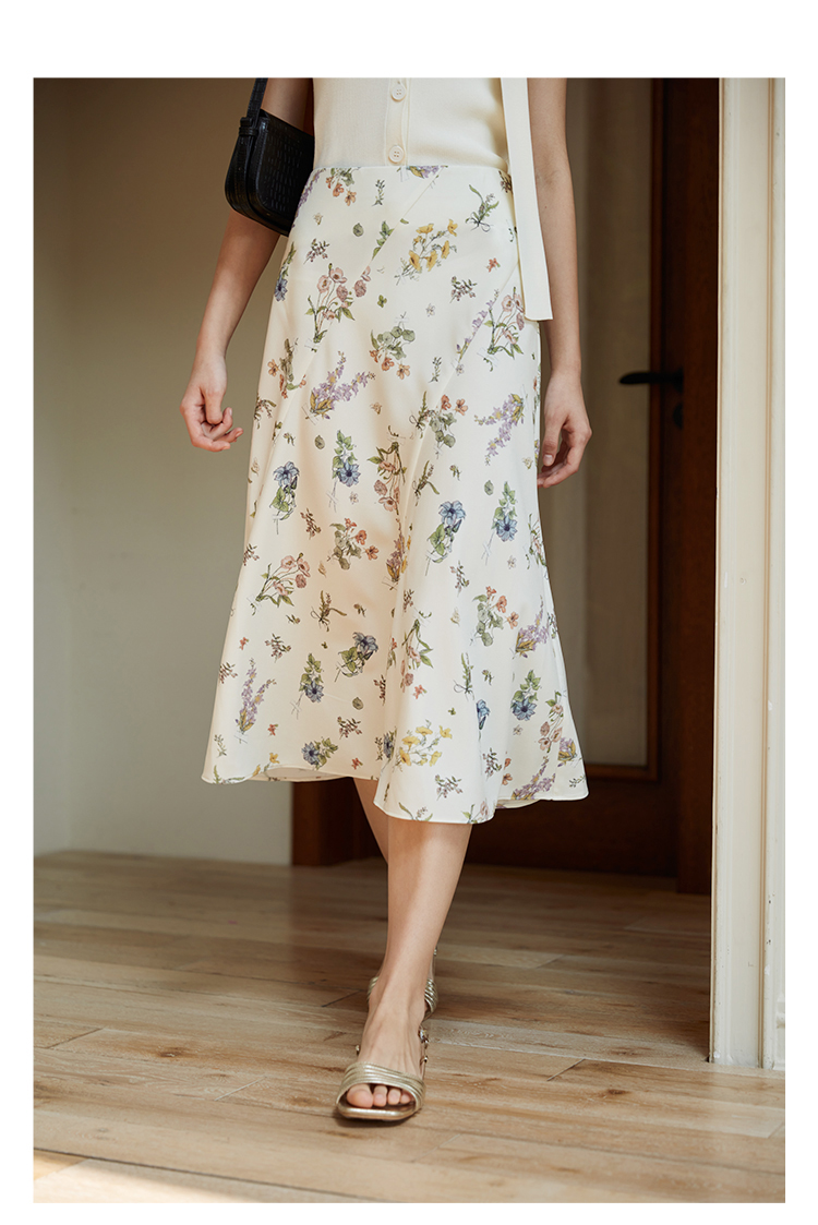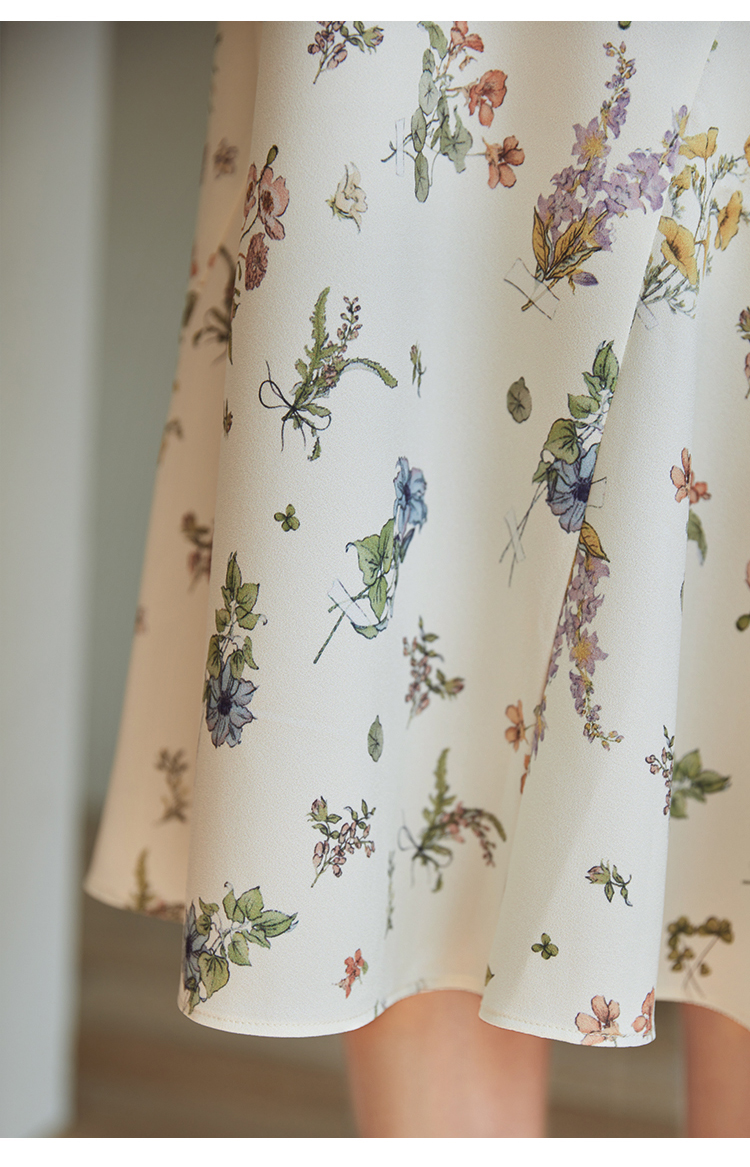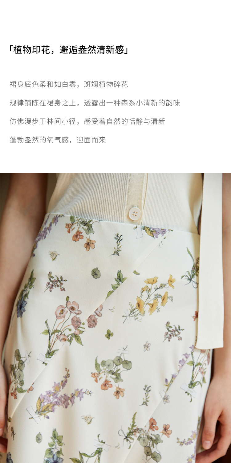HeyDress植物印花半身裙女夏季高腰宽松A字半裙温柔感气质裙子