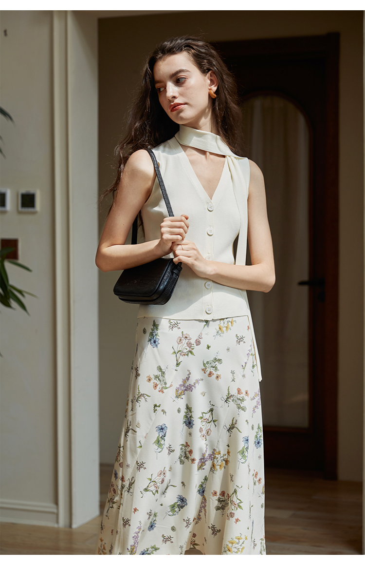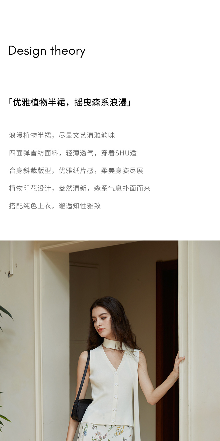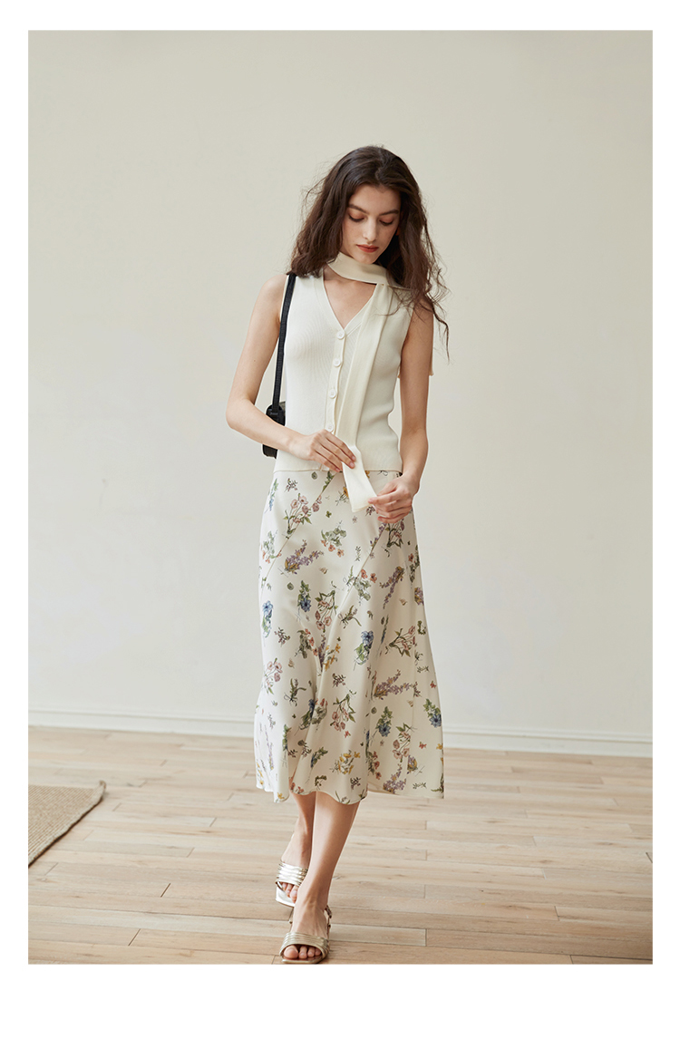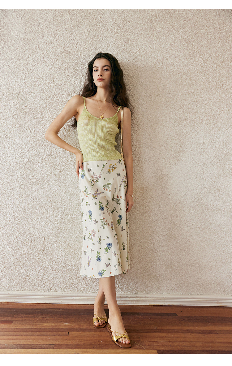 HeyDress植物印花半身裙女夏季高腰宽松A字半裙温柔感气质裙子