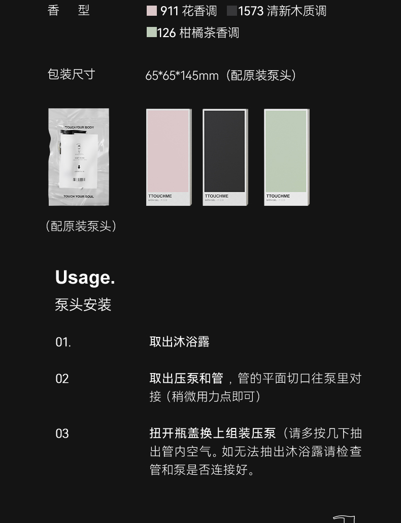 【99元3瓶】TTOUCHME香水沐浴露粉丝专享款 清新木质调 花香调 柑橘果香调茶香 300ml持久留香男女士沐浴露