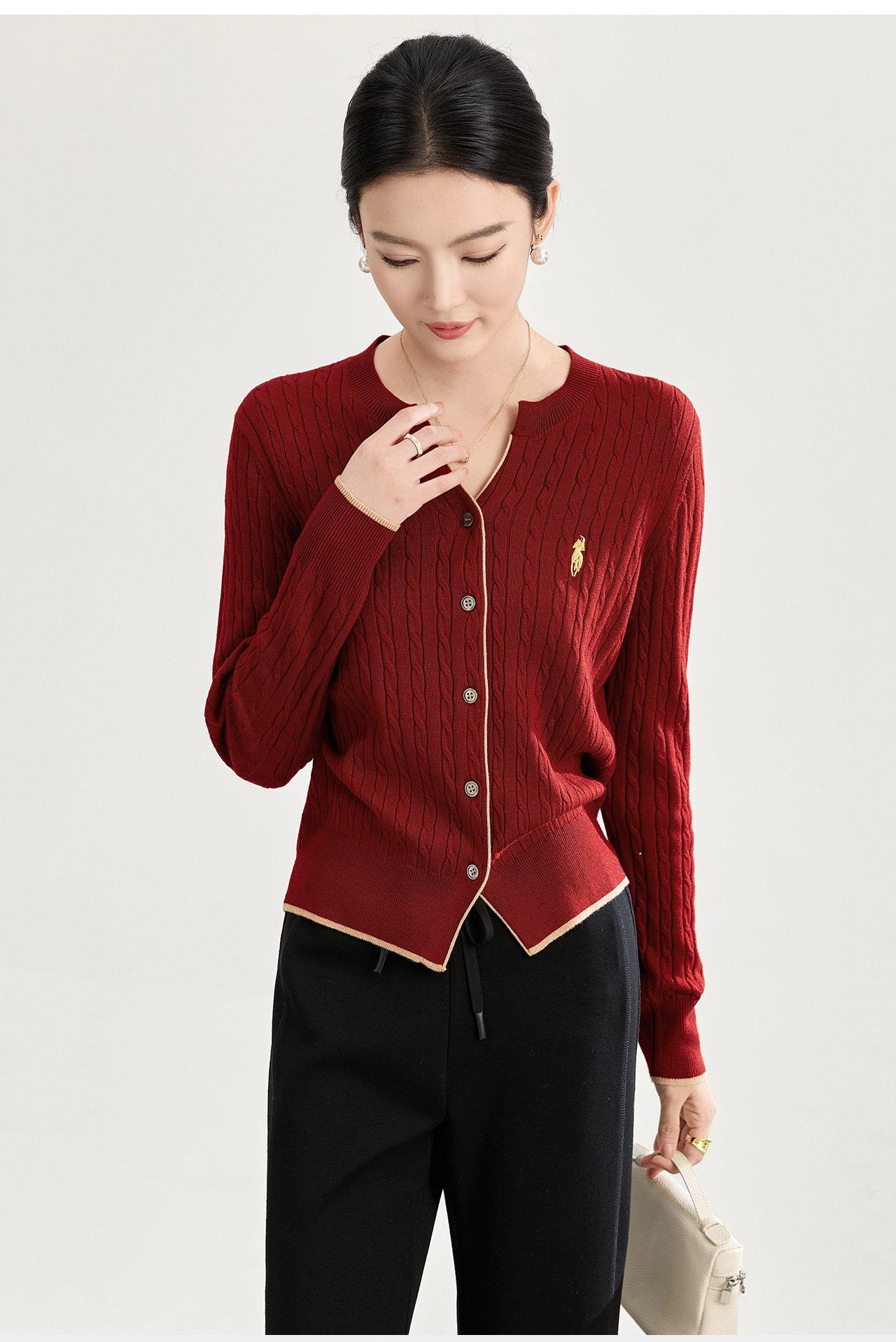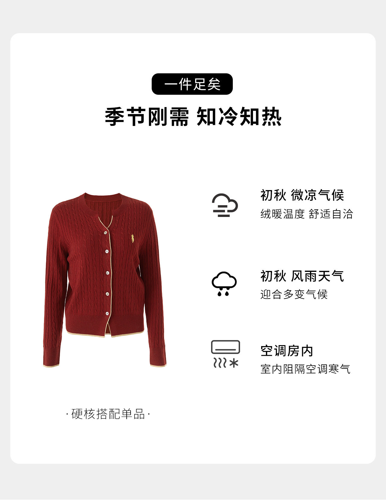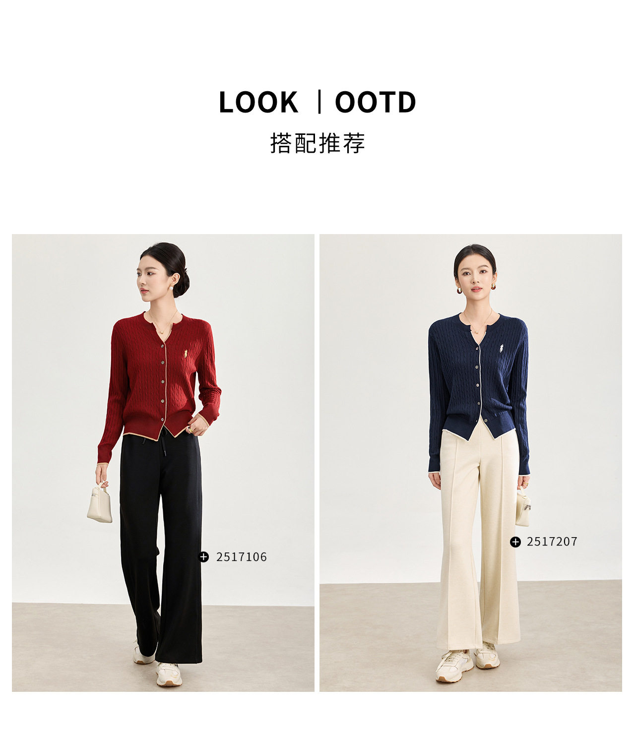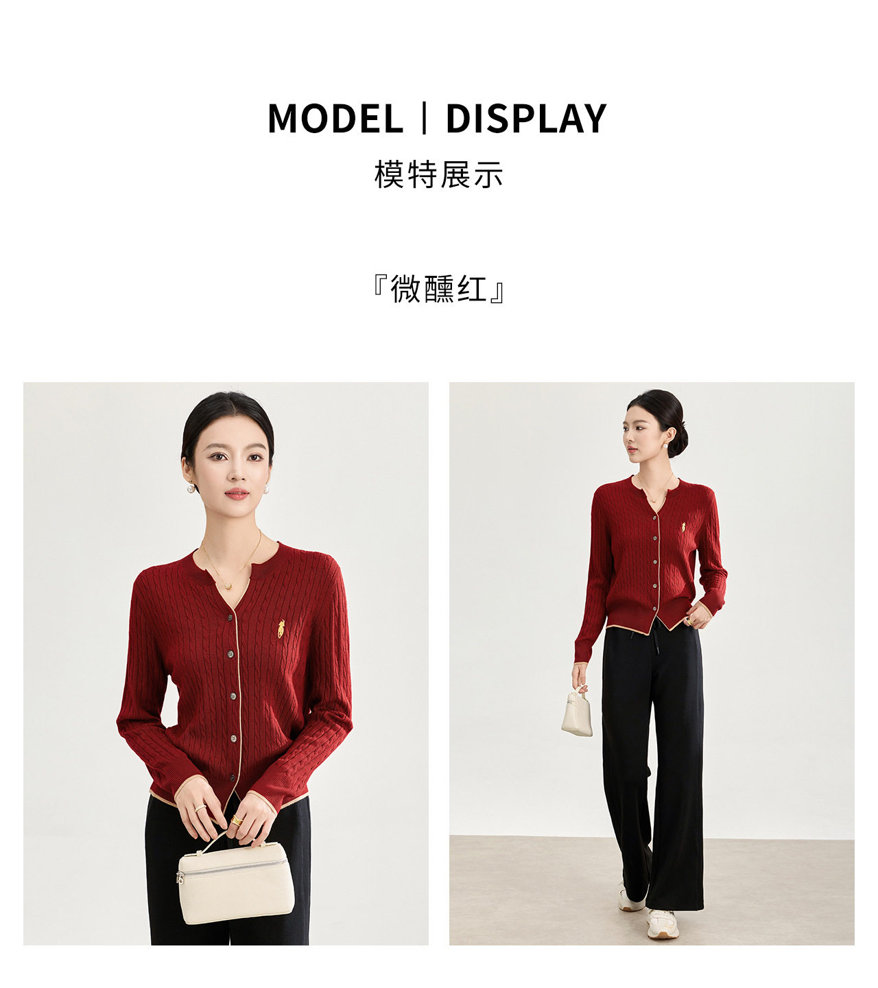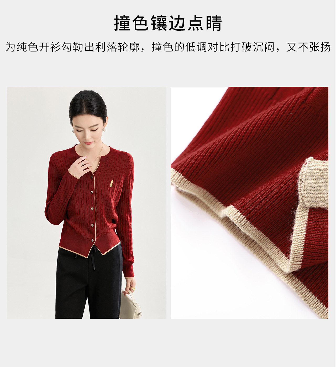 「高货wl」全新升级【铂金会员220/天猫289/差价69】(01558)洛诗琳立体绞花羊毛混纺上衣2025秋冬简约圆领针织开衫