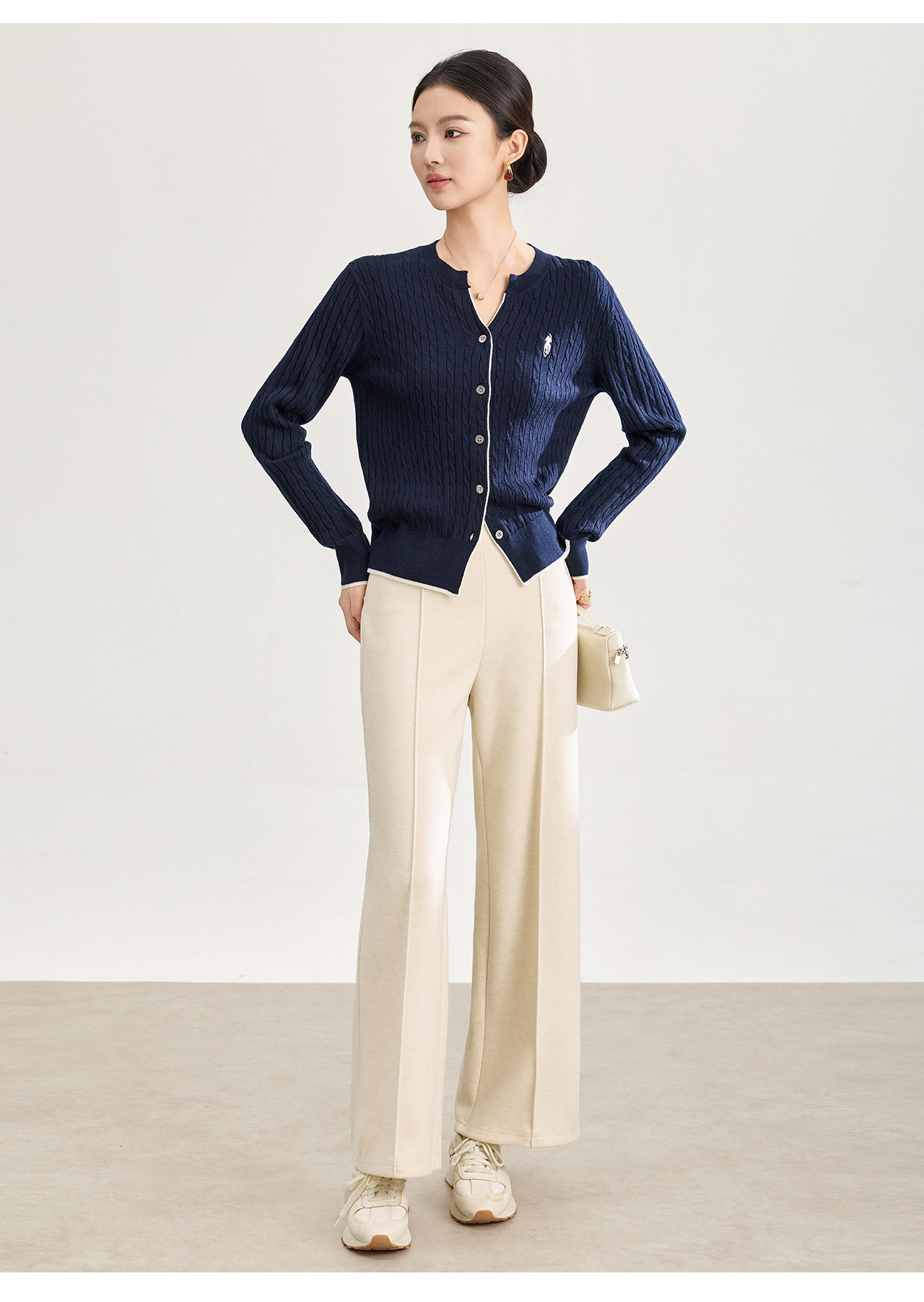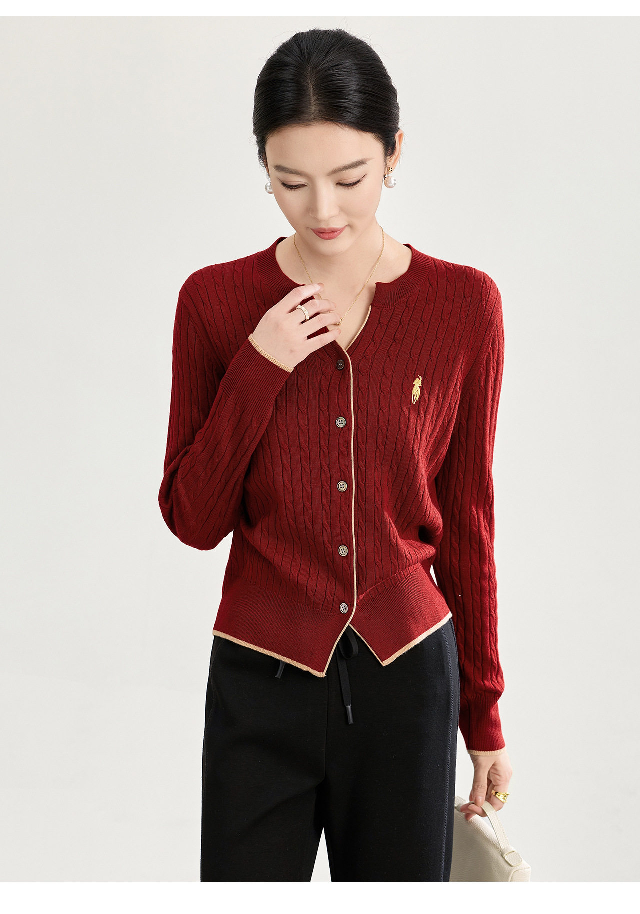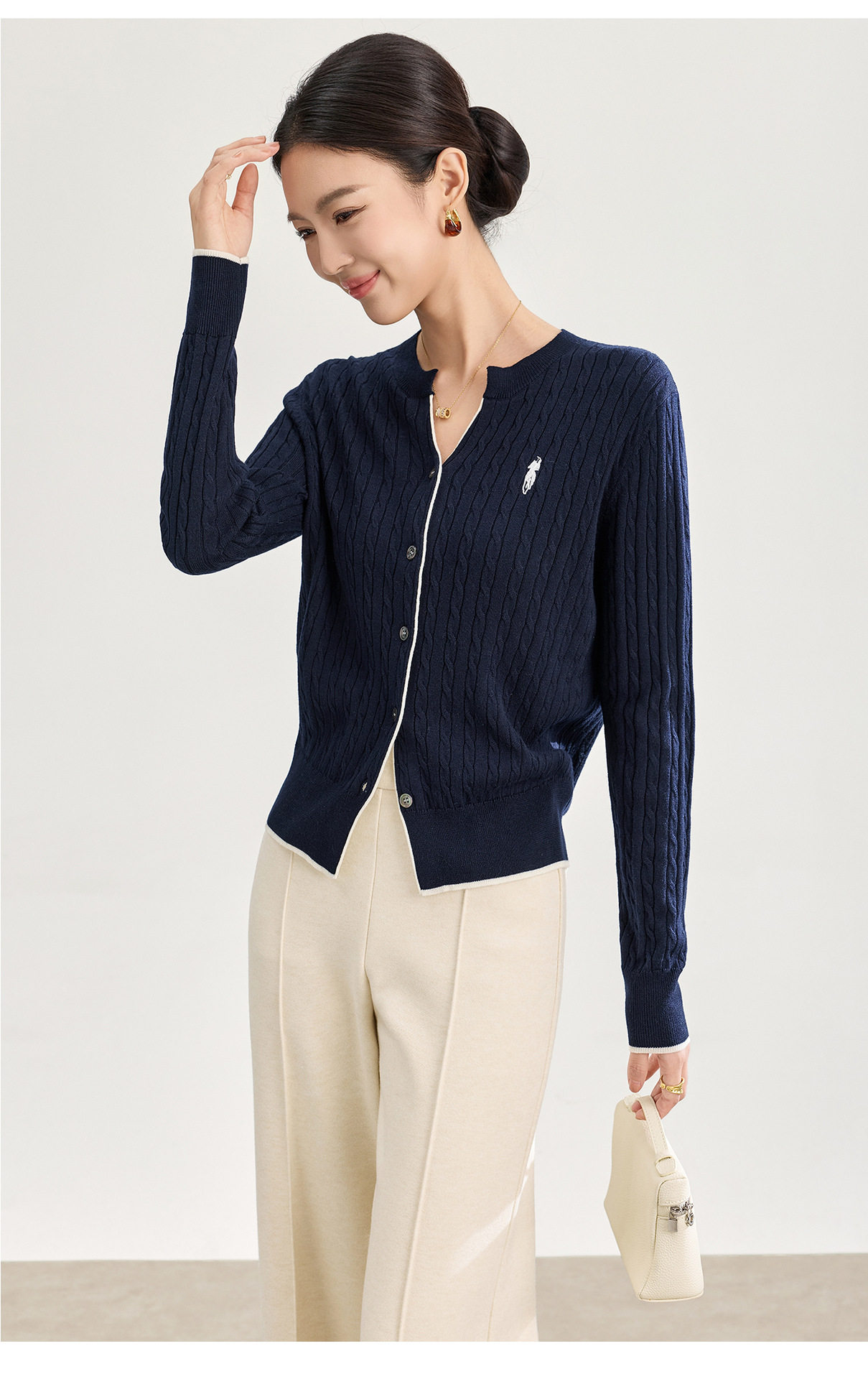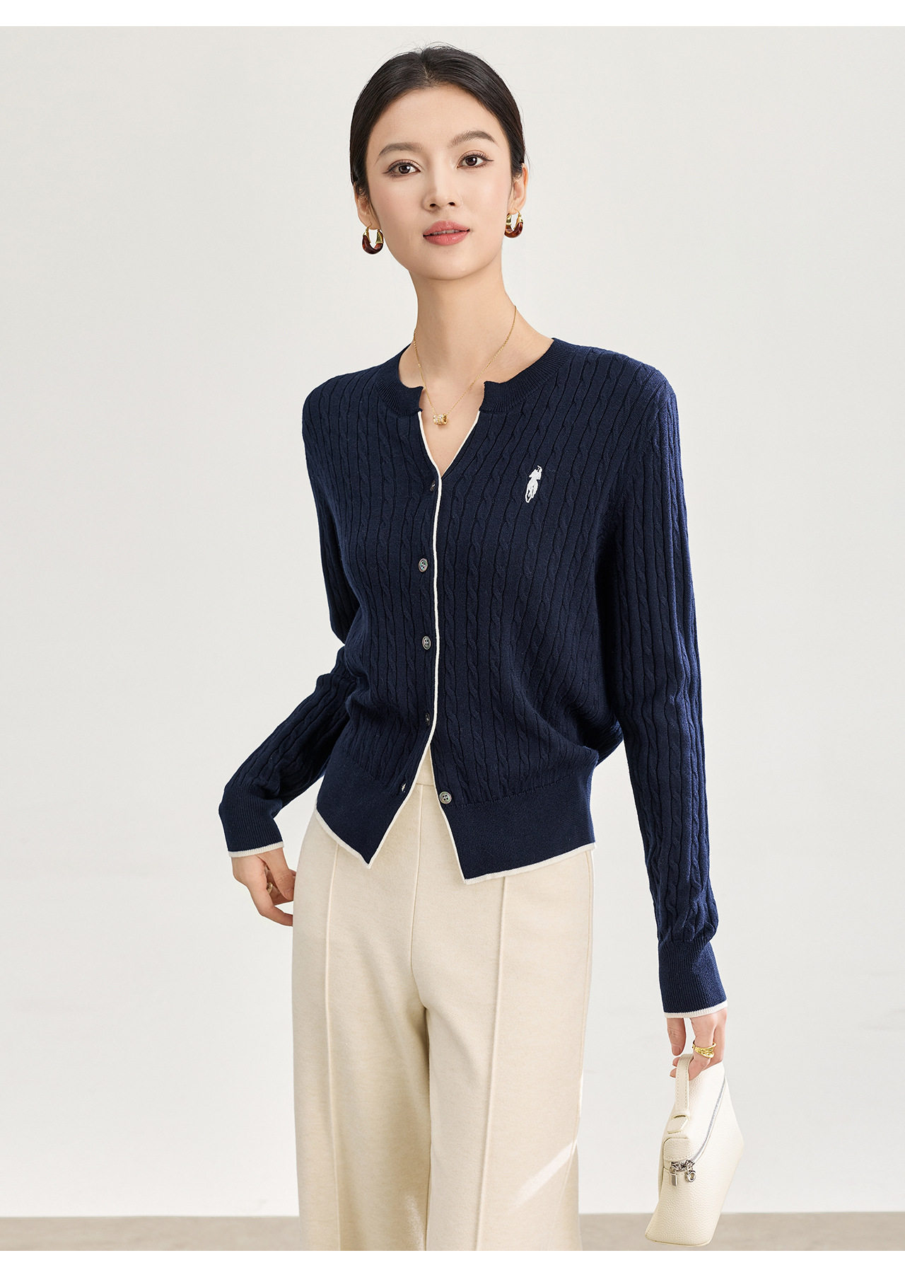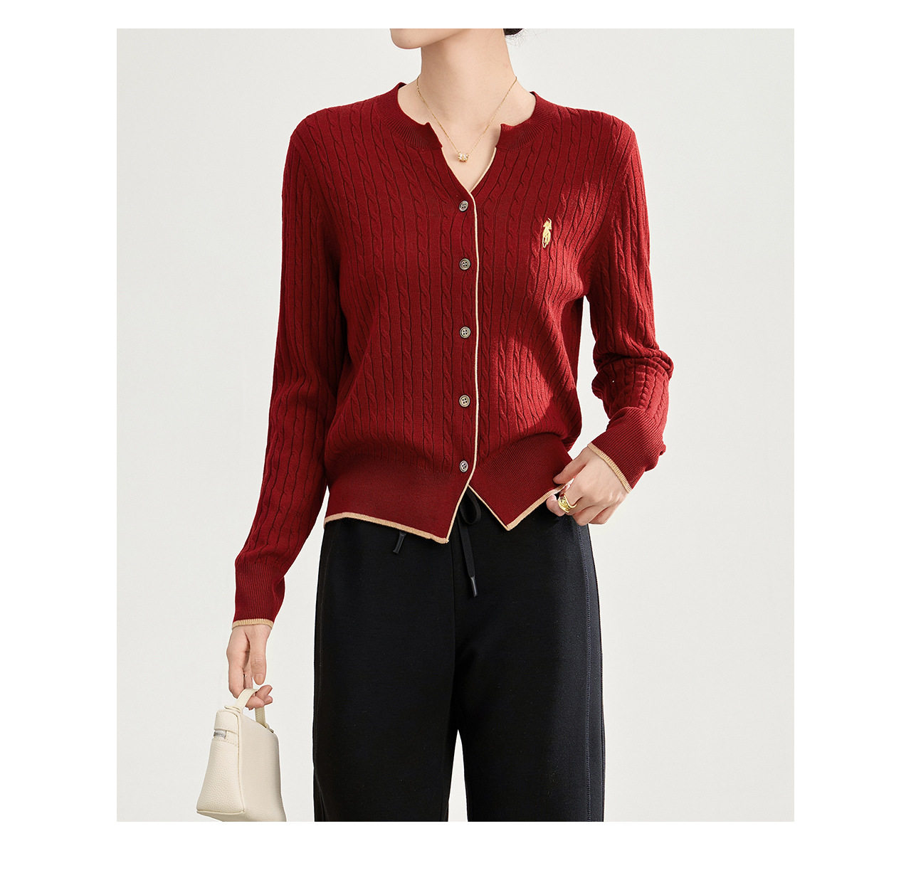 「高货wl」全新升级【铂金会员220/天猫289/差价69】(01558)洛诗琳立体绞花羊毛混纺上衣2025秋冬简约圆领针织开衫