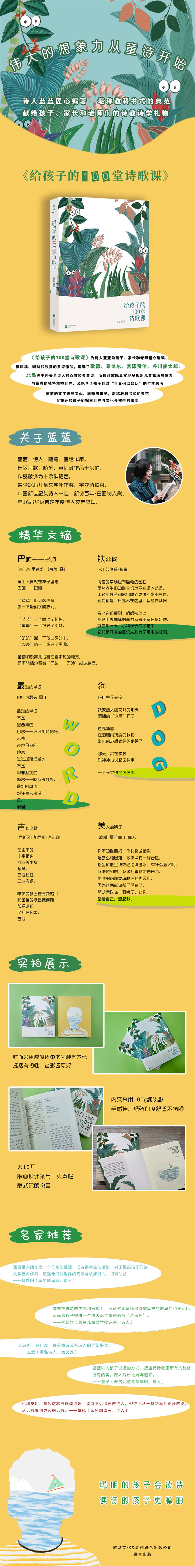诗人蓝蓝匠心编著,献给孩子、家长和老师的诗教诗学礼物。