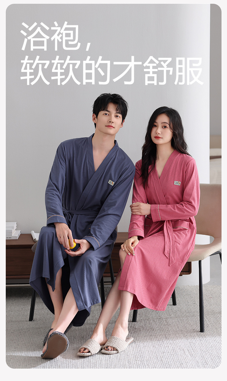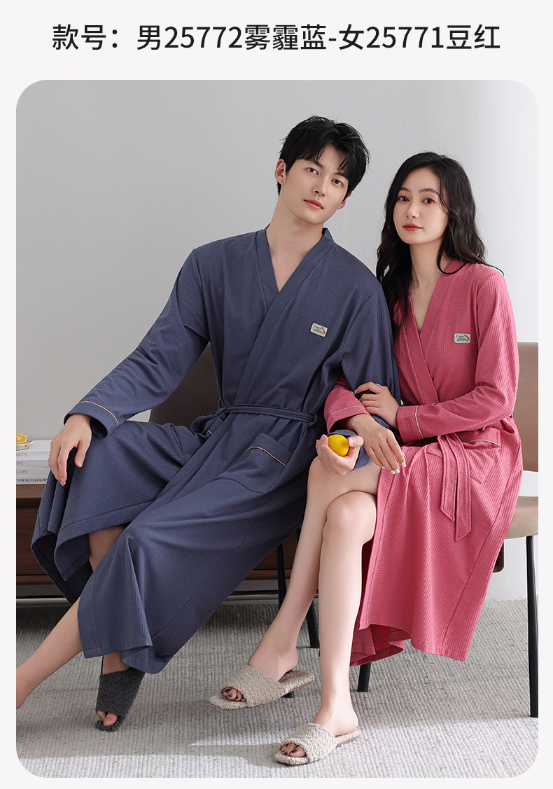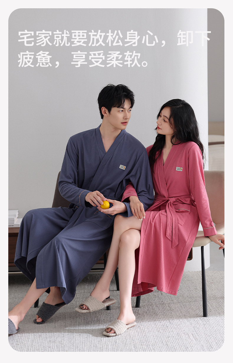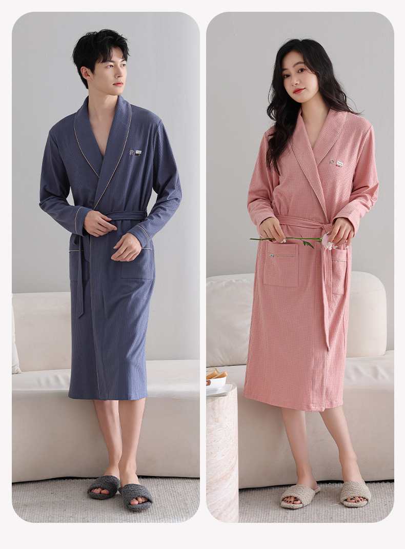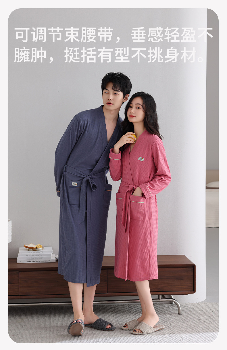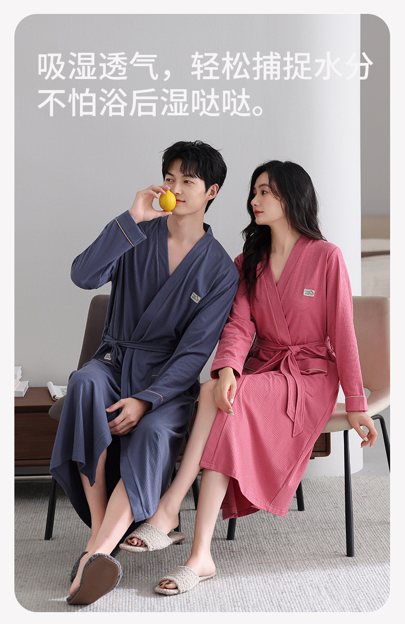 丁摩 华夫格情侣睡袍纯棉长袖高级感女士长袍秋冬新款男女浴袍5ZF-25771