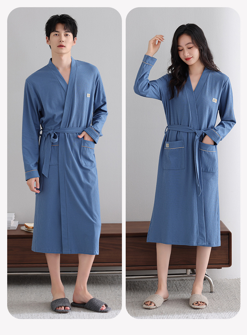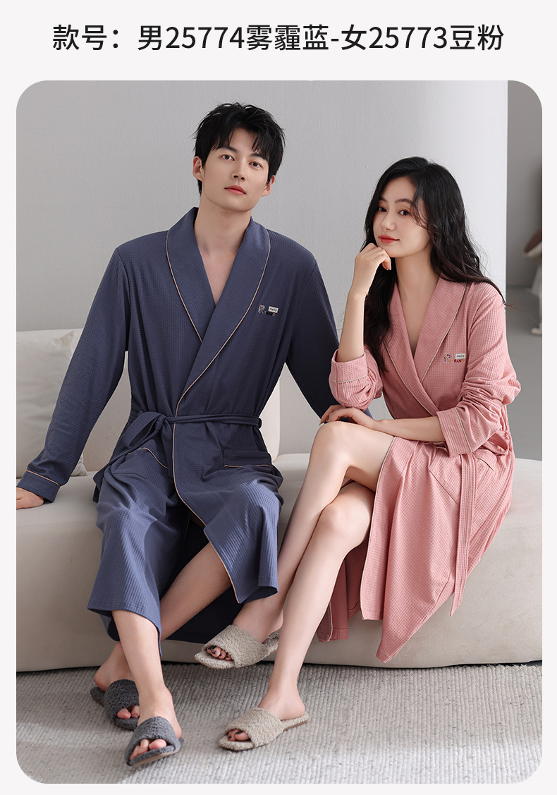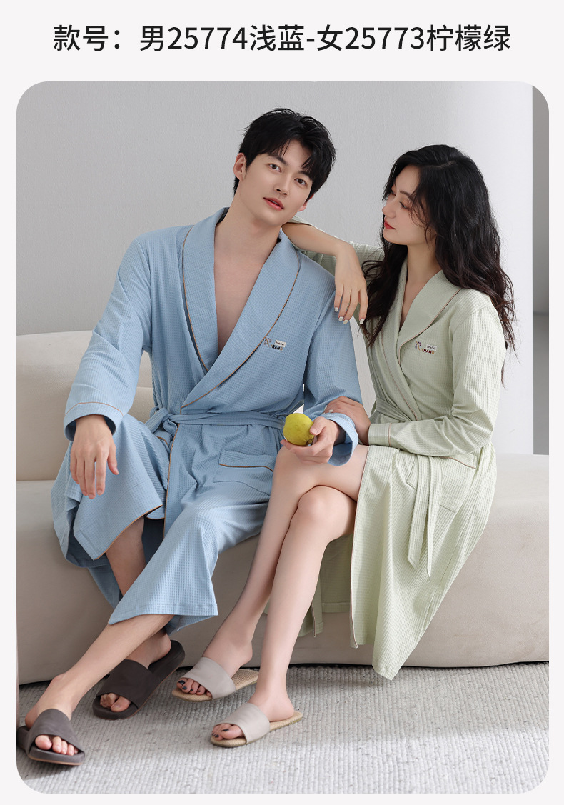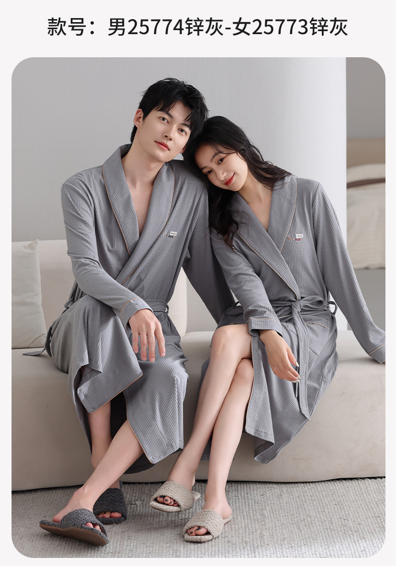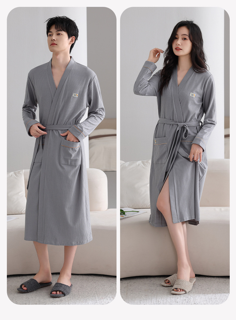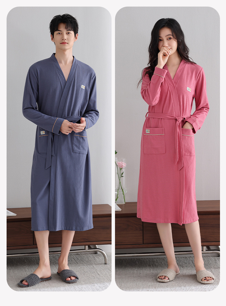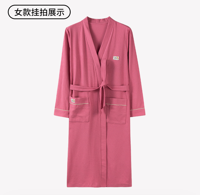 丁摩 华夫格情侣睡袍纯棉长袖高级感女士长袍秋冬新款男女浴袍5ZF-25771