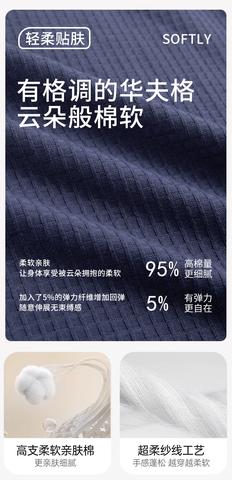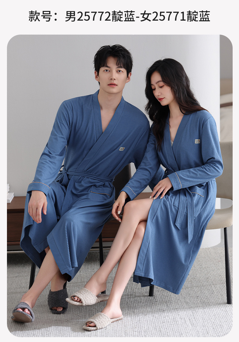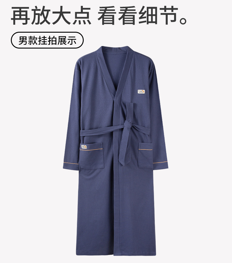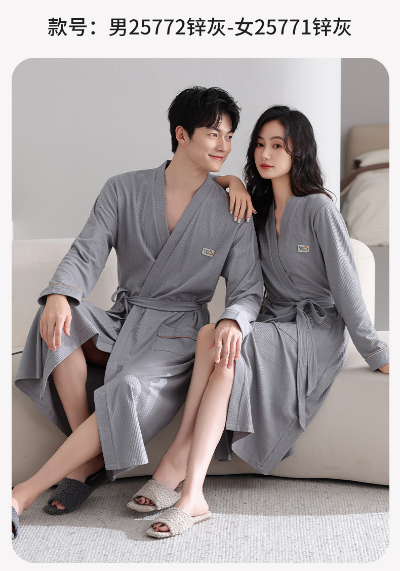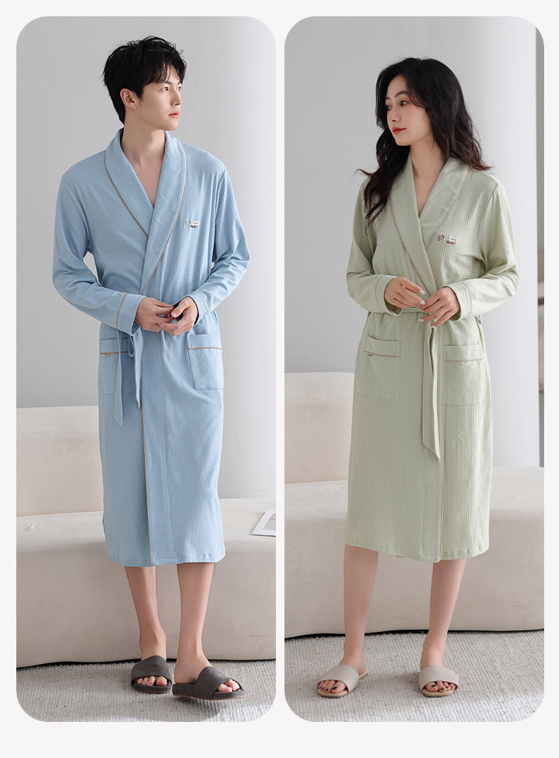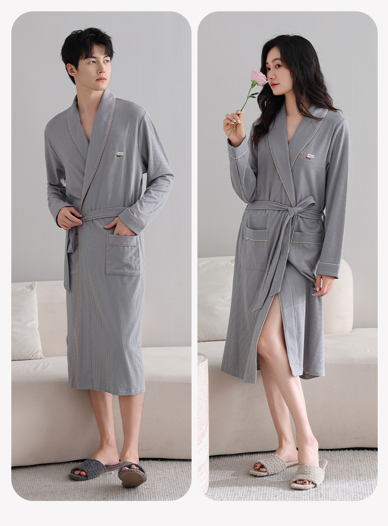 丁摩 华夫格情侣睡袍纯棉长袖高级感女士长袍秋冬新款男女浴袍5ZF-25771
