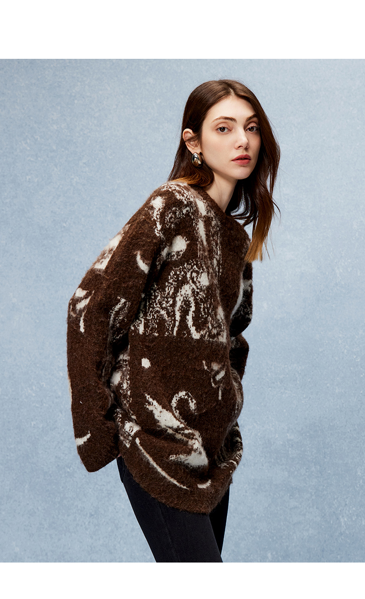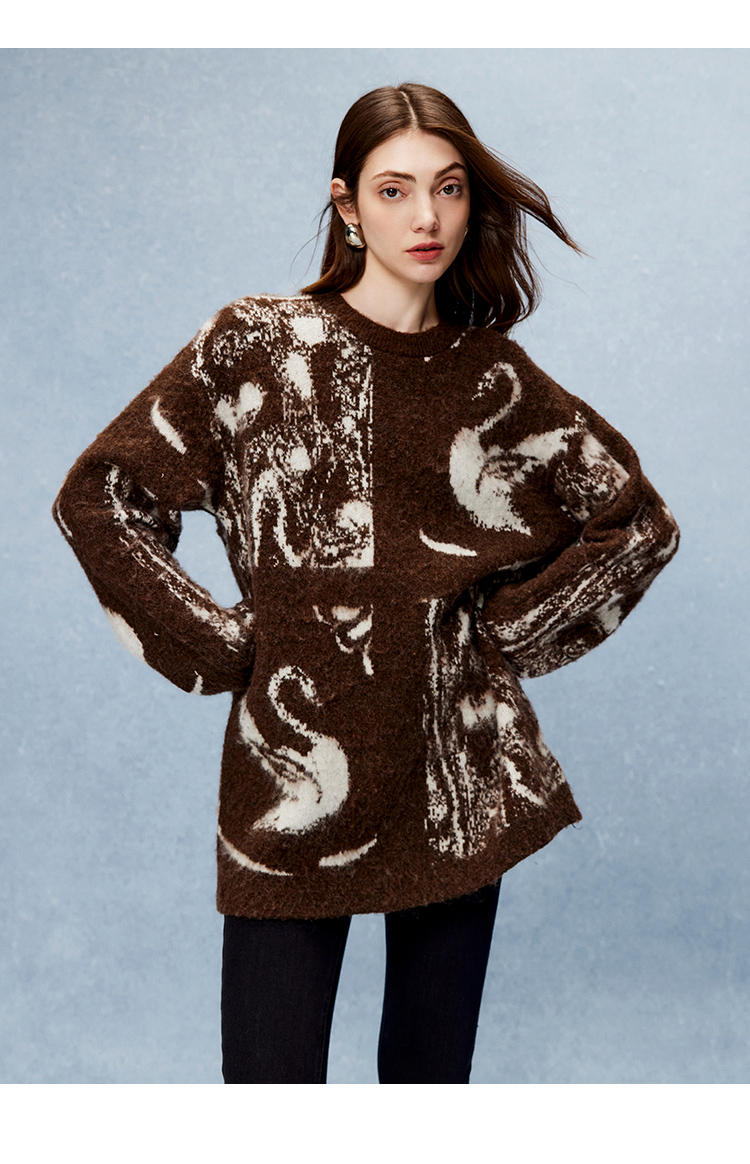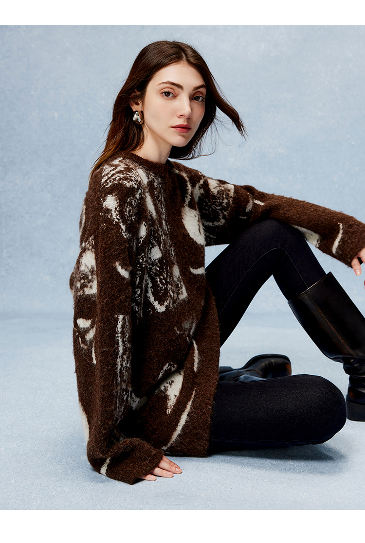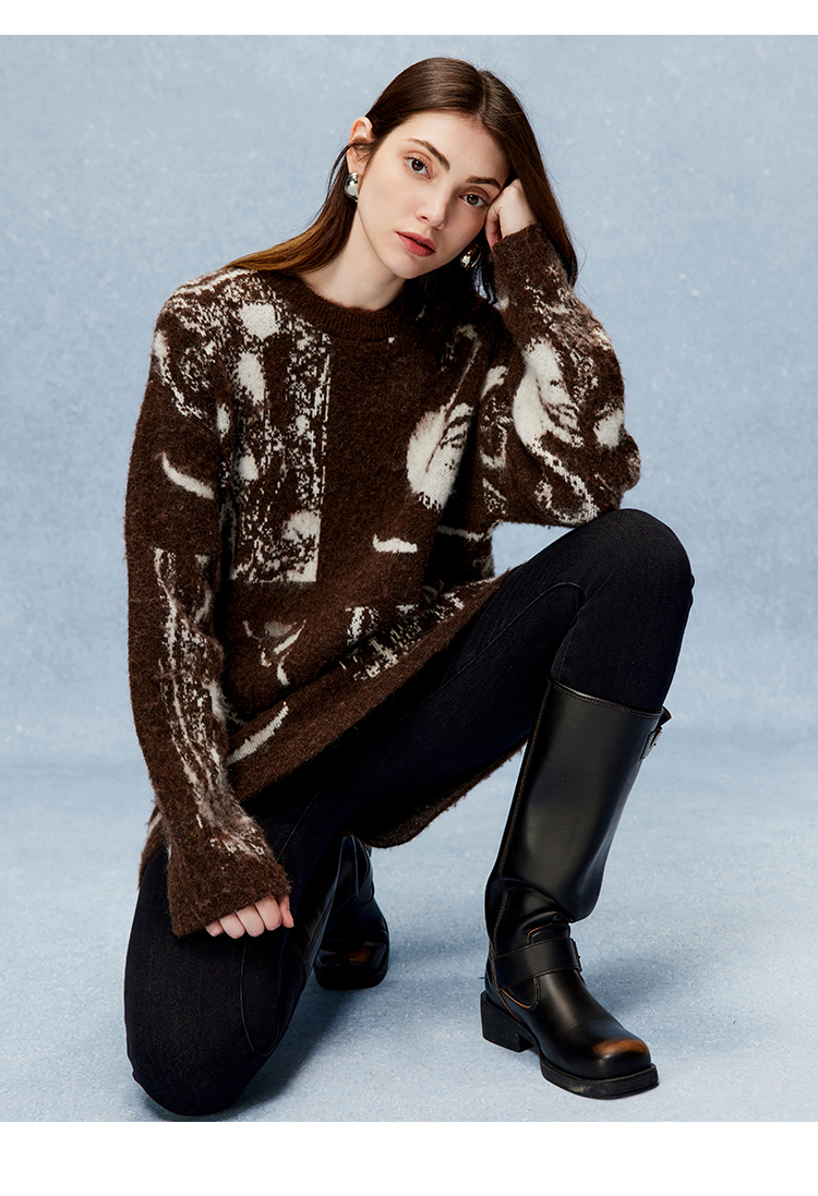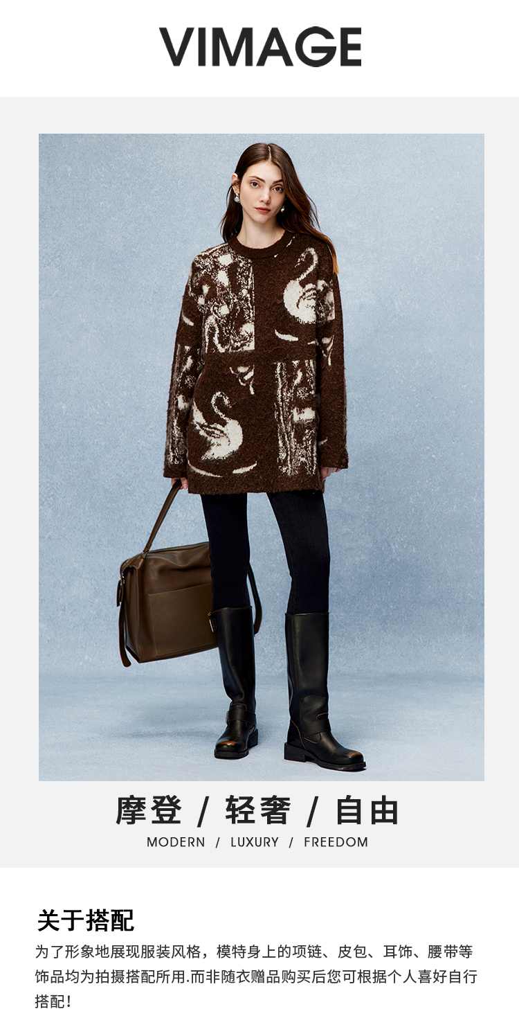 VIMAGE纬漫纪冬季新款印花慵懒风温柔宽松时尚显瘦针织衫V2201818