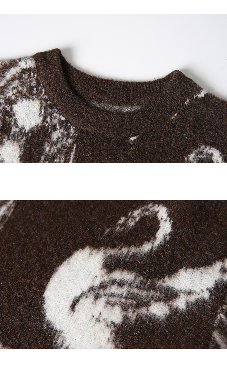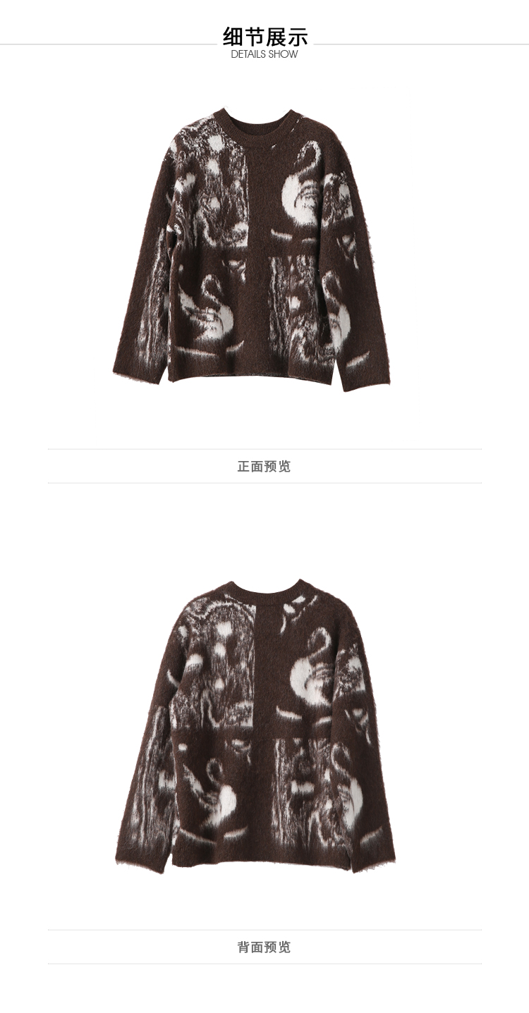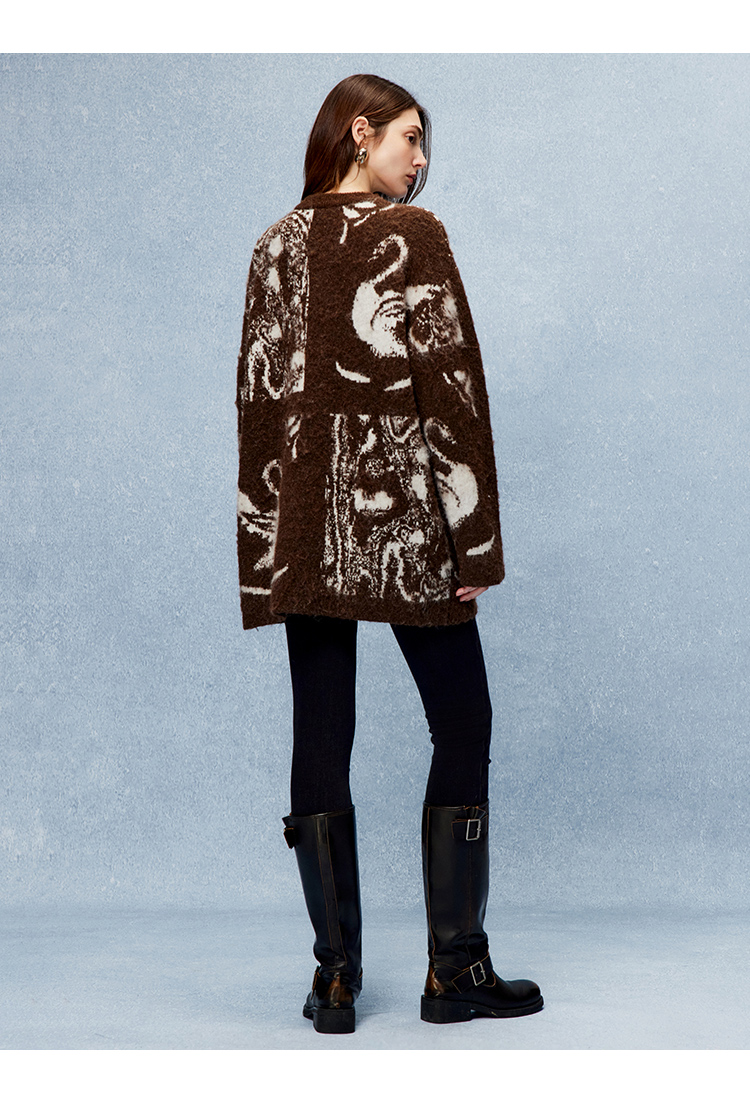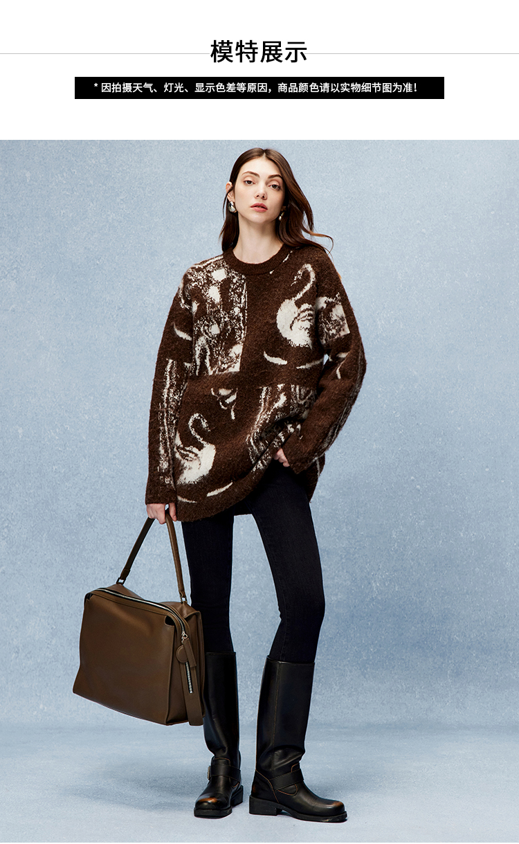 VIMAGE纬漫纪冬季新款印花慵懒风温柔宽松时尚显瘦针织衫V2201818