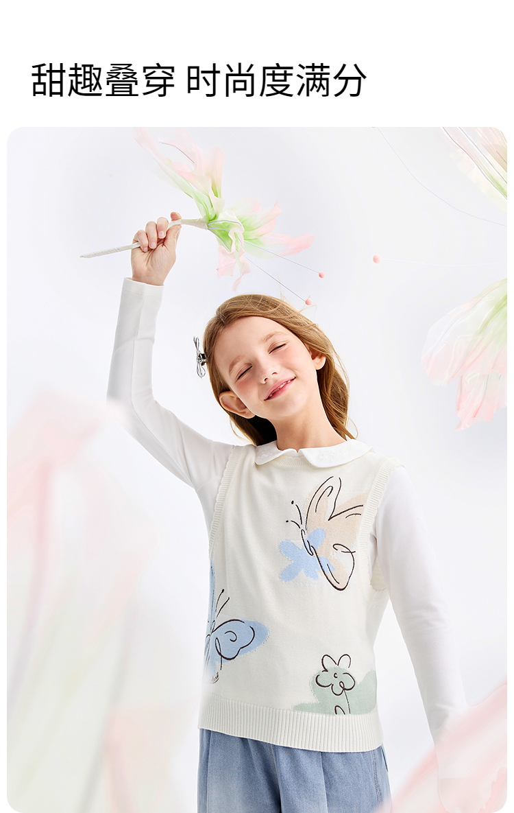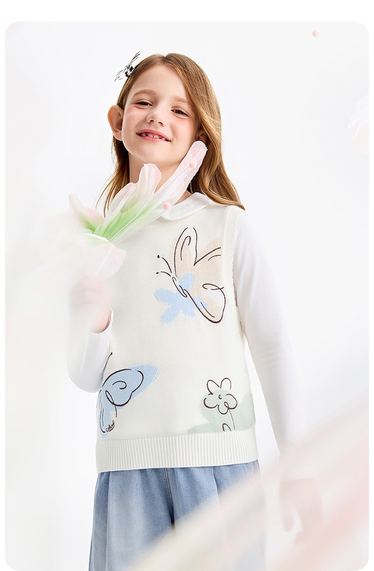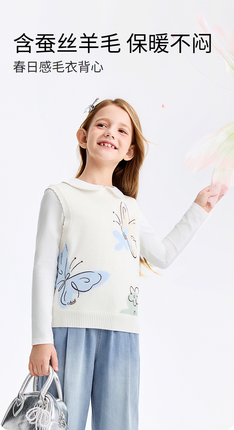 女童针织背心春季新款安奈儿童装EG612574