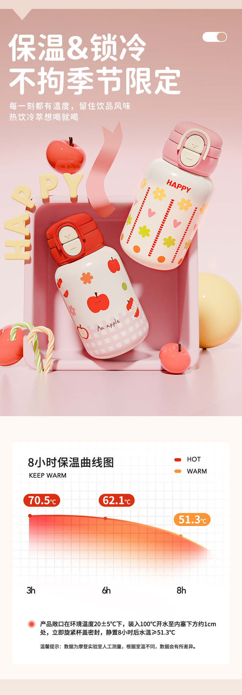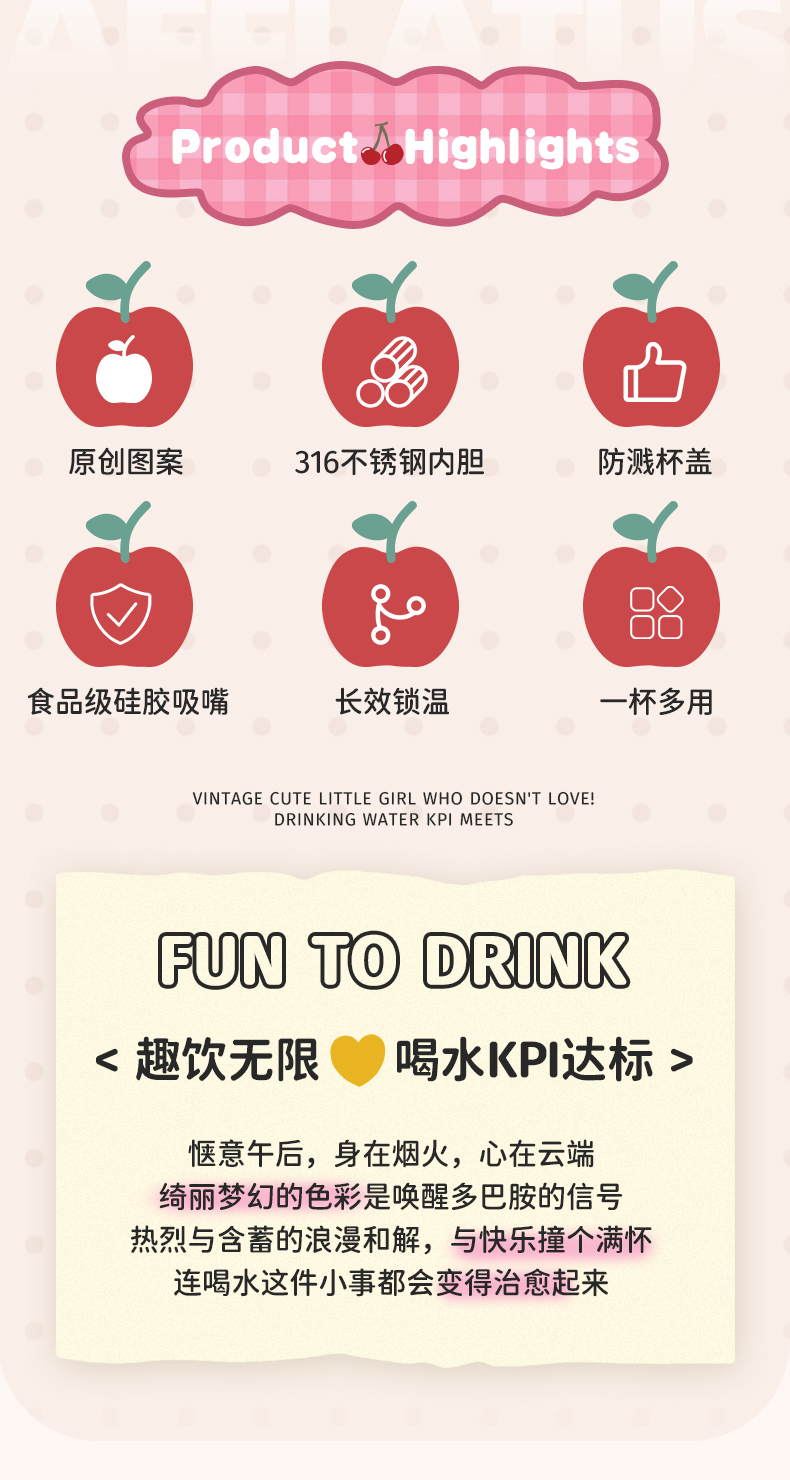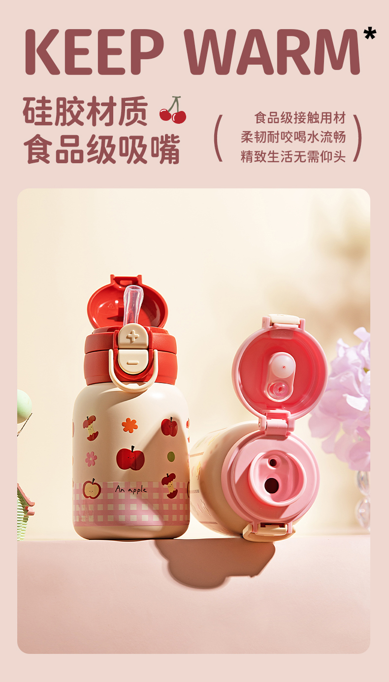 摩登主妇高颜值儿童保温杯2024新款水杯圣诞节礼物杯子女生吸管杯