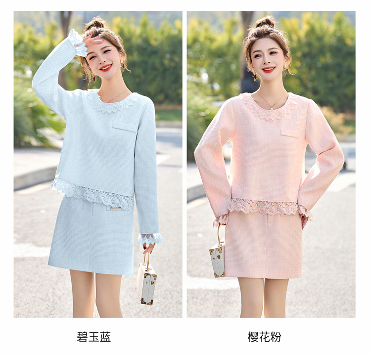 香风套装新款女装时尚气质设计拼接花边两件套HMQY2888-1