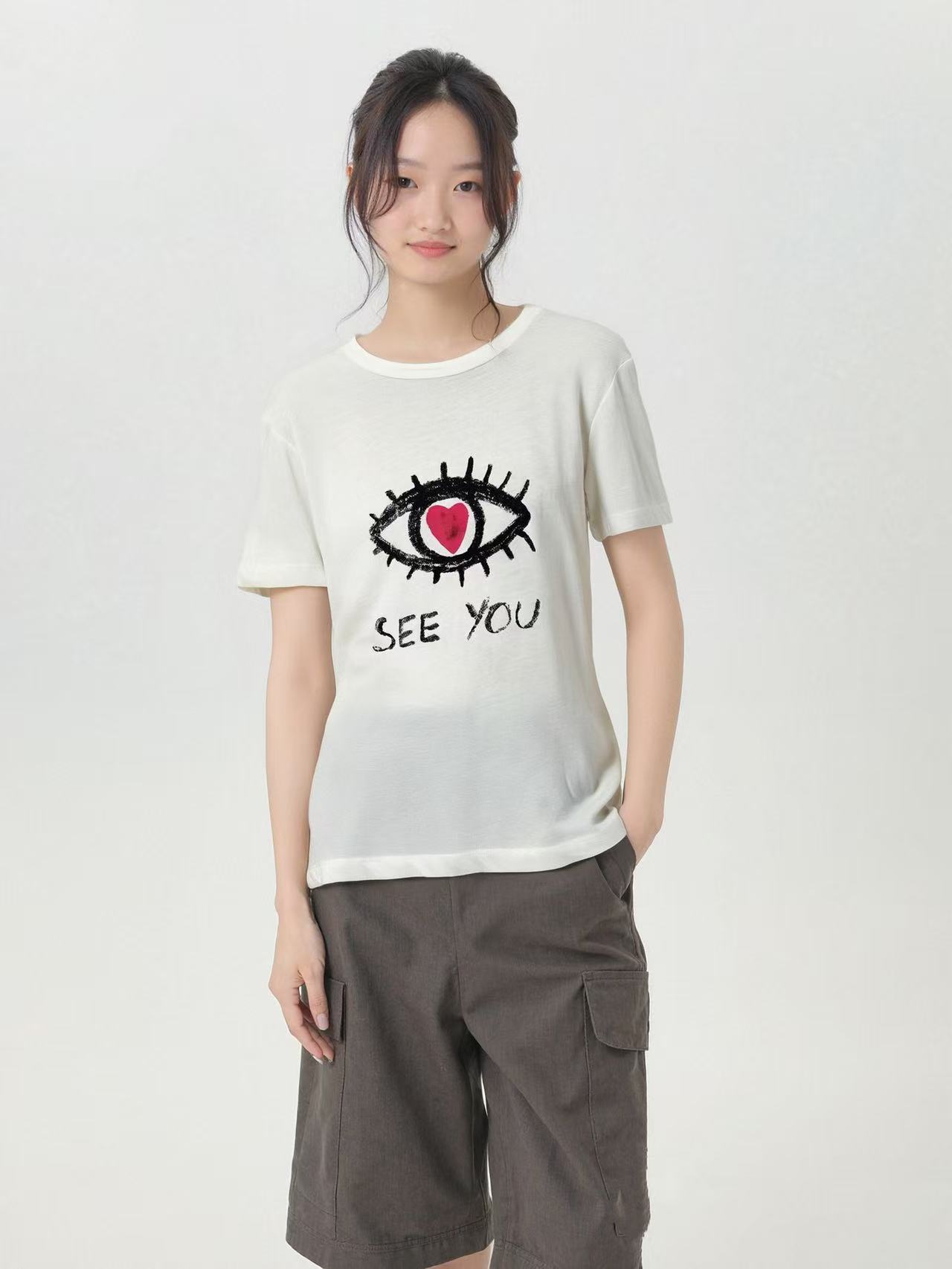 520破价~(NO退)竹节棉眼睛薄款短袖T恤-喜出