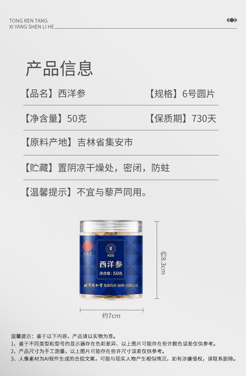 【168元任选3件】【正宗同仁堂品牌】北京同仁堂 青源堂 西洋参50克 片片精选 参香四溢 微苦回甘SY