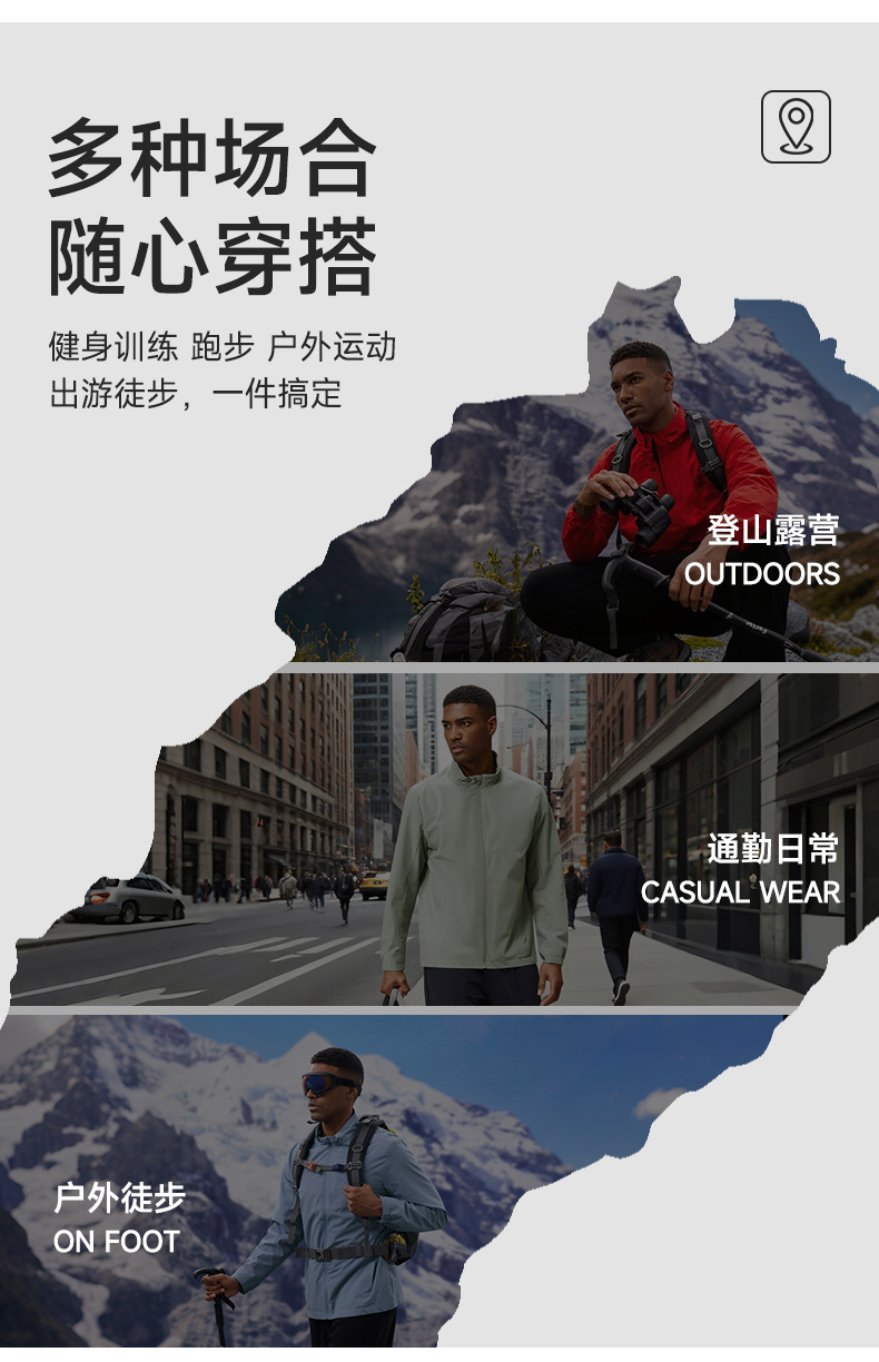 跃牌【欲动春风】男装系列 户外防风防水冲锋衣外套男女露营登山徒步立领夹克运动风衣D16004