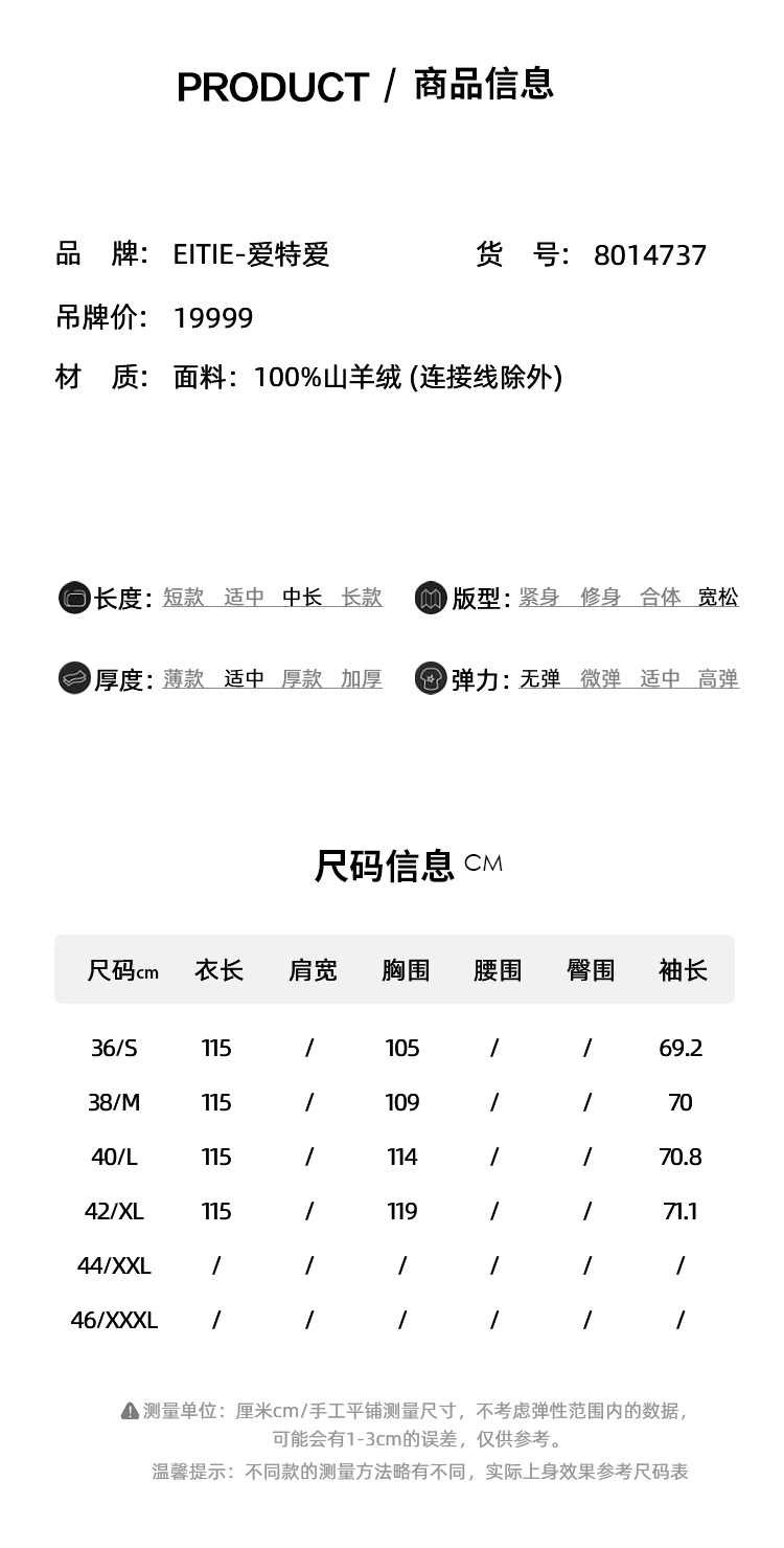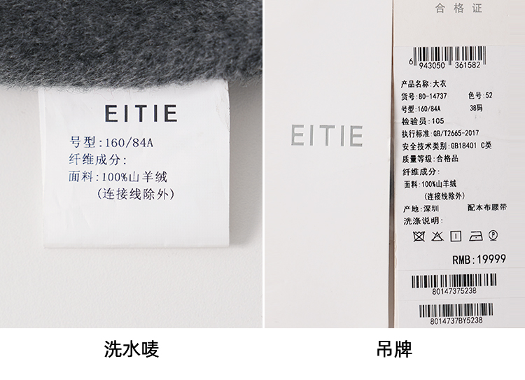 EITIE爱特爱宽松简约时尚纯山羊绒柔软保暖大衣8014737