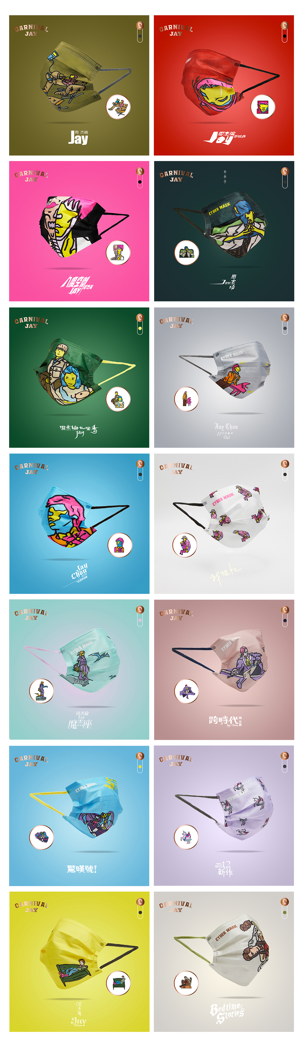 周杰伦嘉年华口罩纪念礼盒(14张专辑封面设计/56片装)