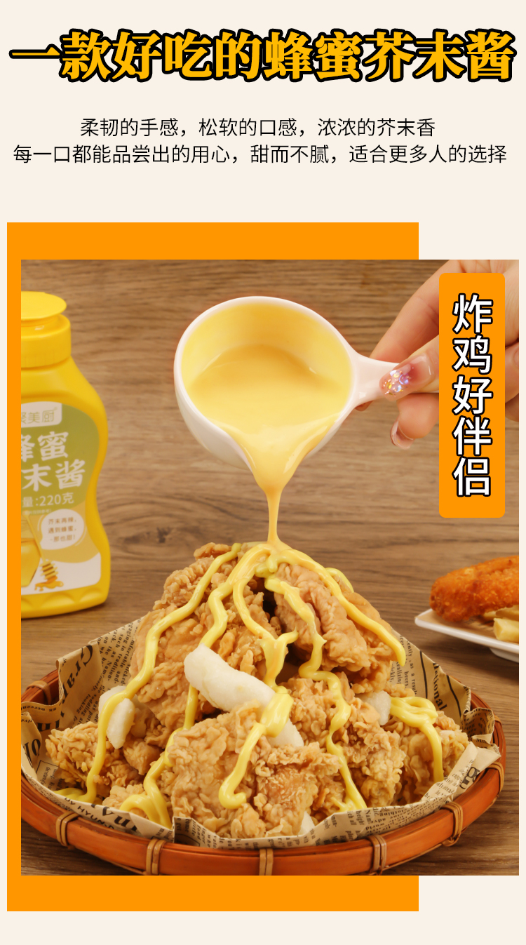 聚美厨韩式蜂蜜芥末酱挤压瓶装寿司炸鸡酱汉堡热狗酱料沙拉披萨酱 商品缩略图0 聚美厨韩式蜂蜜芥末酱挤压瓶装寿司炸鸡酱汉堡热狗酱料沙拉披萨酱 商品缩略图1 聚美厨韩式蜂蜜芥末酱挤压瓶装寿司炸鸡酱汉堡热狗酱料沙拉披萨酱 商品缩略图2 聚美厨韩式蜂蜜芥末酱挤压瓶装寿司炸鸡酱汉堡热狗酱料沙拉披萨酱 商品缩略图3 聚美厨韩式蜂蜜芥末酱挤压瓶装寿司炸鸡酱汉堡热狗酱料沙拉披萨酱 商品缩略图4