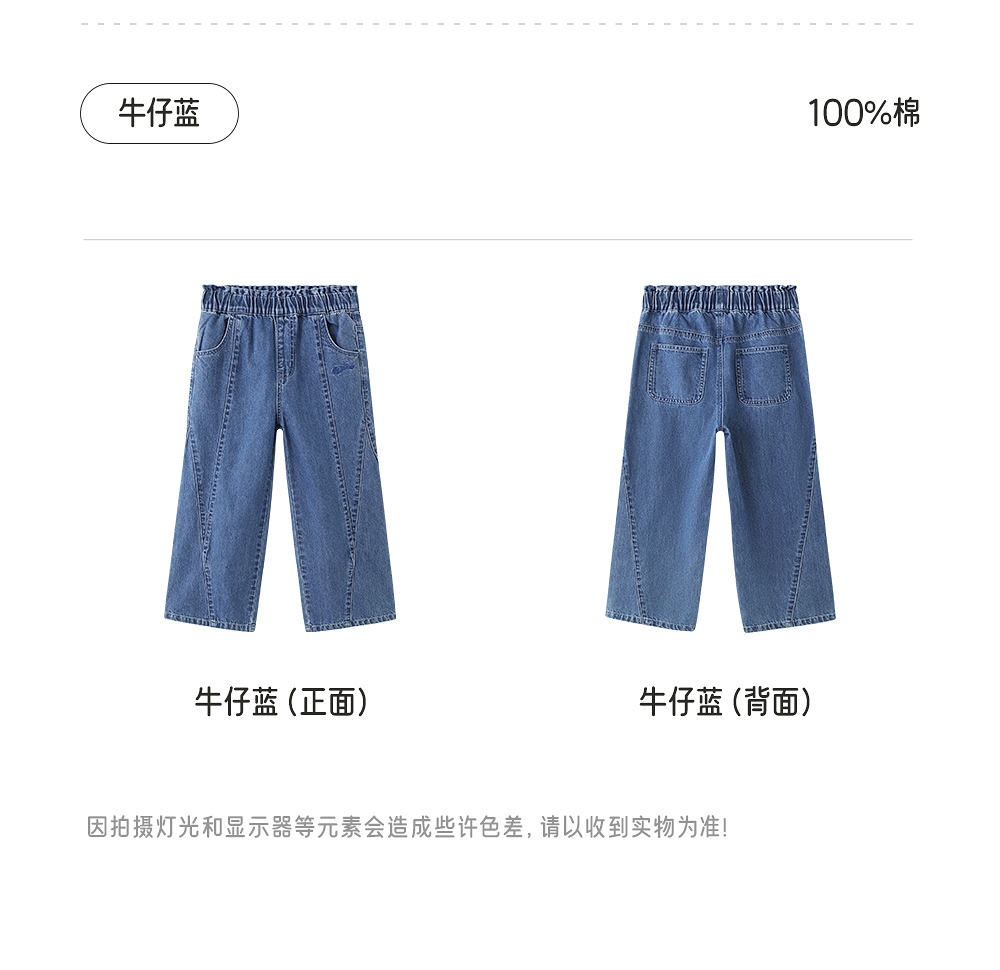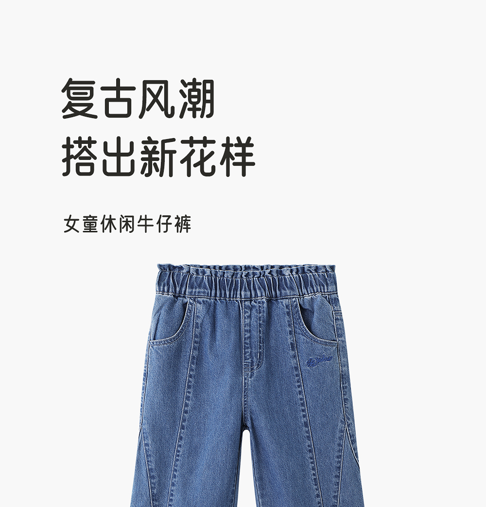 【商场同款】英氏儿童裤子四季女童复古牛仔裤纯棉中大童女宝长裤