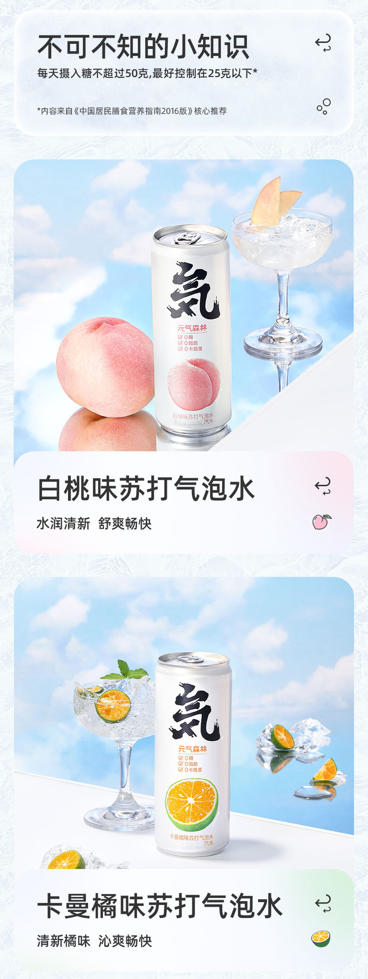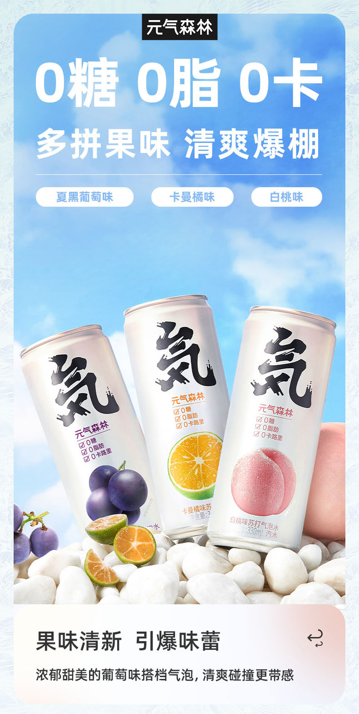【送活力】330ml元气森林气泡水 卡曼橘味/白桃味 0糖0脂0卡