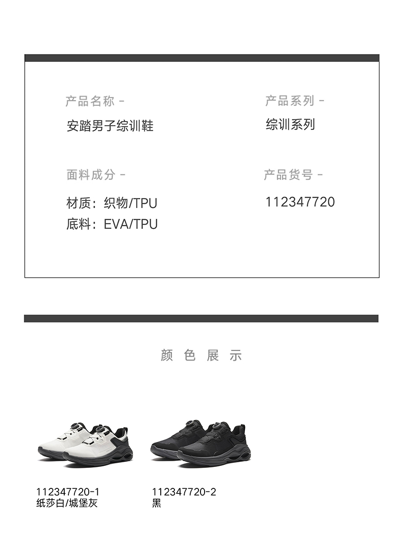 【39断码】安踏训练鞋男2023秋季新款旋钮缓震软底综训健身运动鞋112347720【库存有限,如无货将做退款,介意慎拍!】