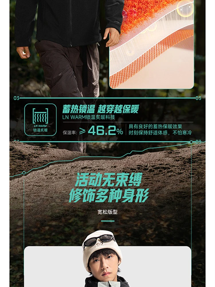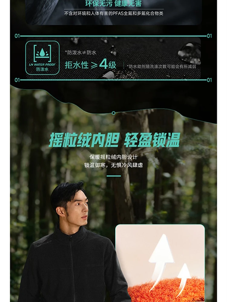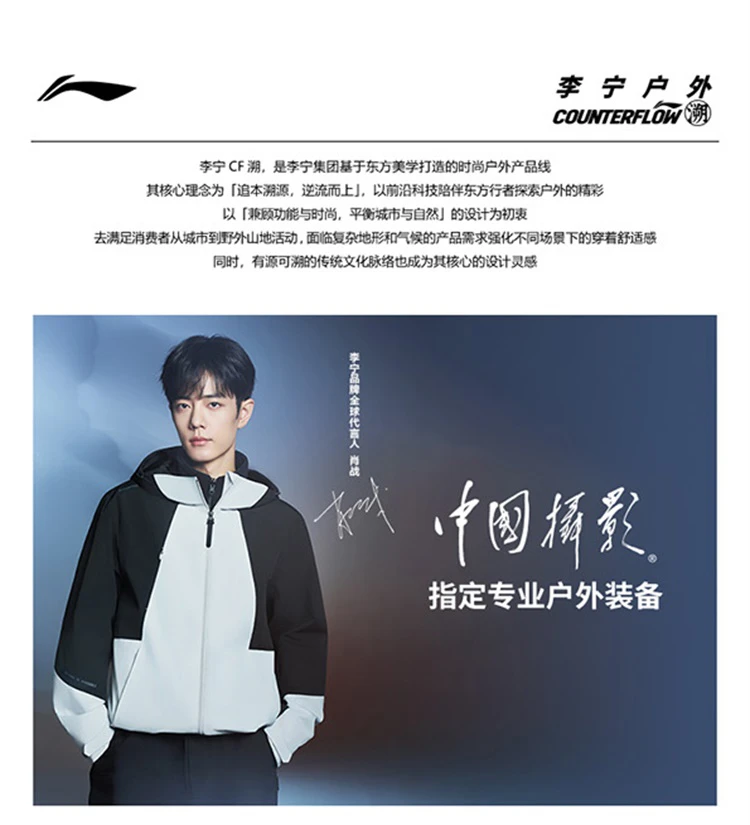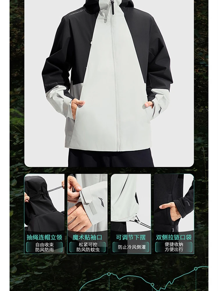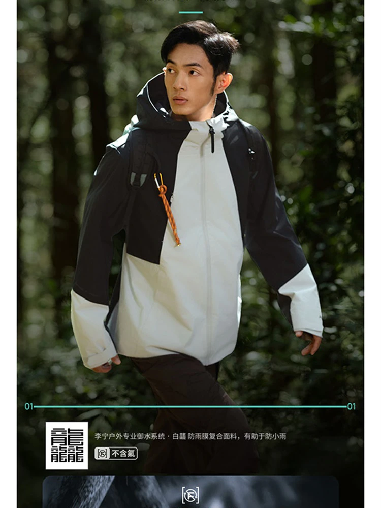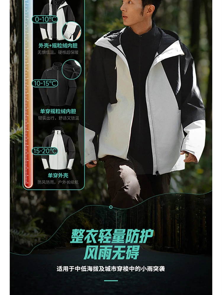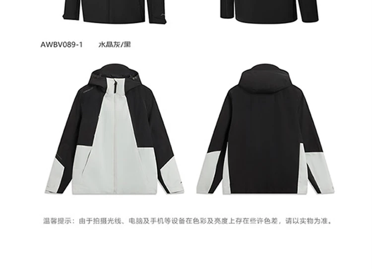 李宁户外CF溯珑壳外套白龘男子加绒保暖防泼水宽松三合一运动风衣套装AWBV089