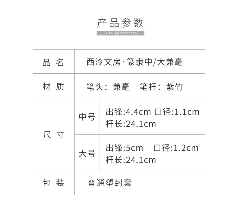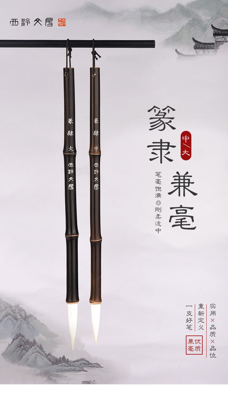 西泠印社 篆隶兼毫毛笔文房四宝初学者篆书隶书书法国画练习字帖临摹天然紫竹专业毛笔