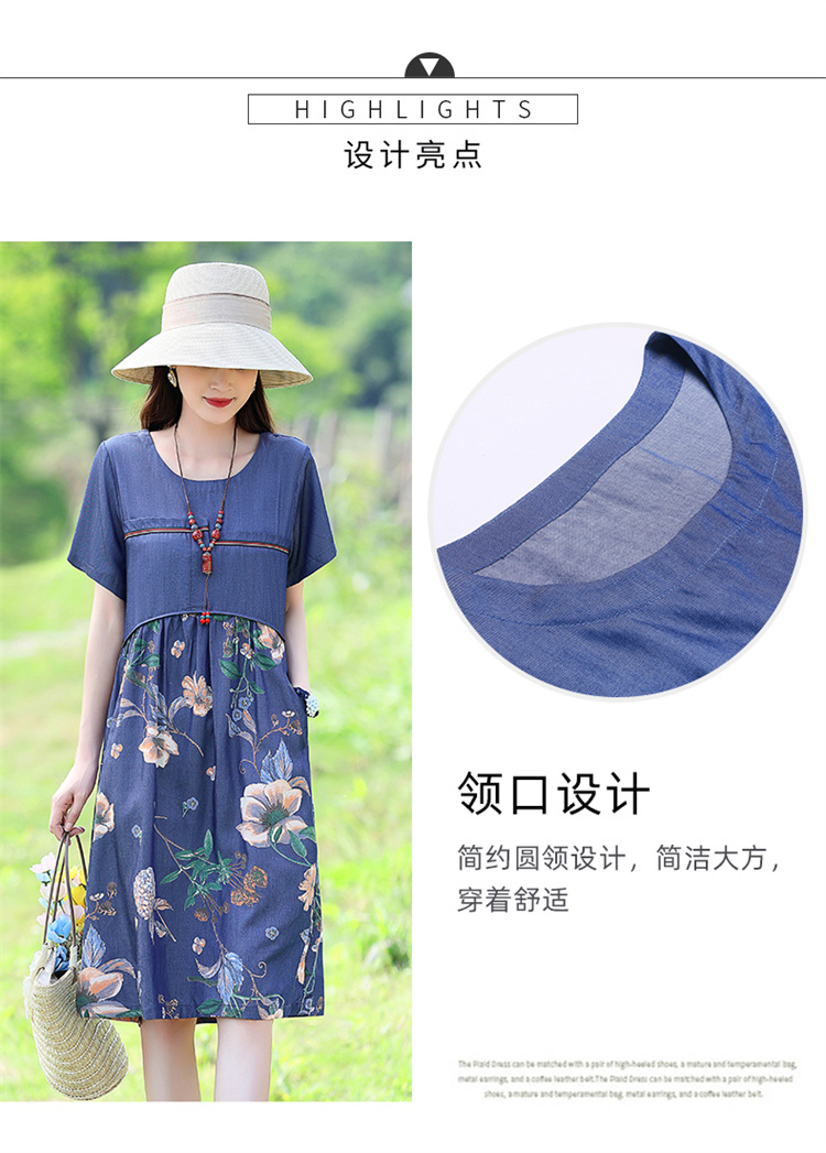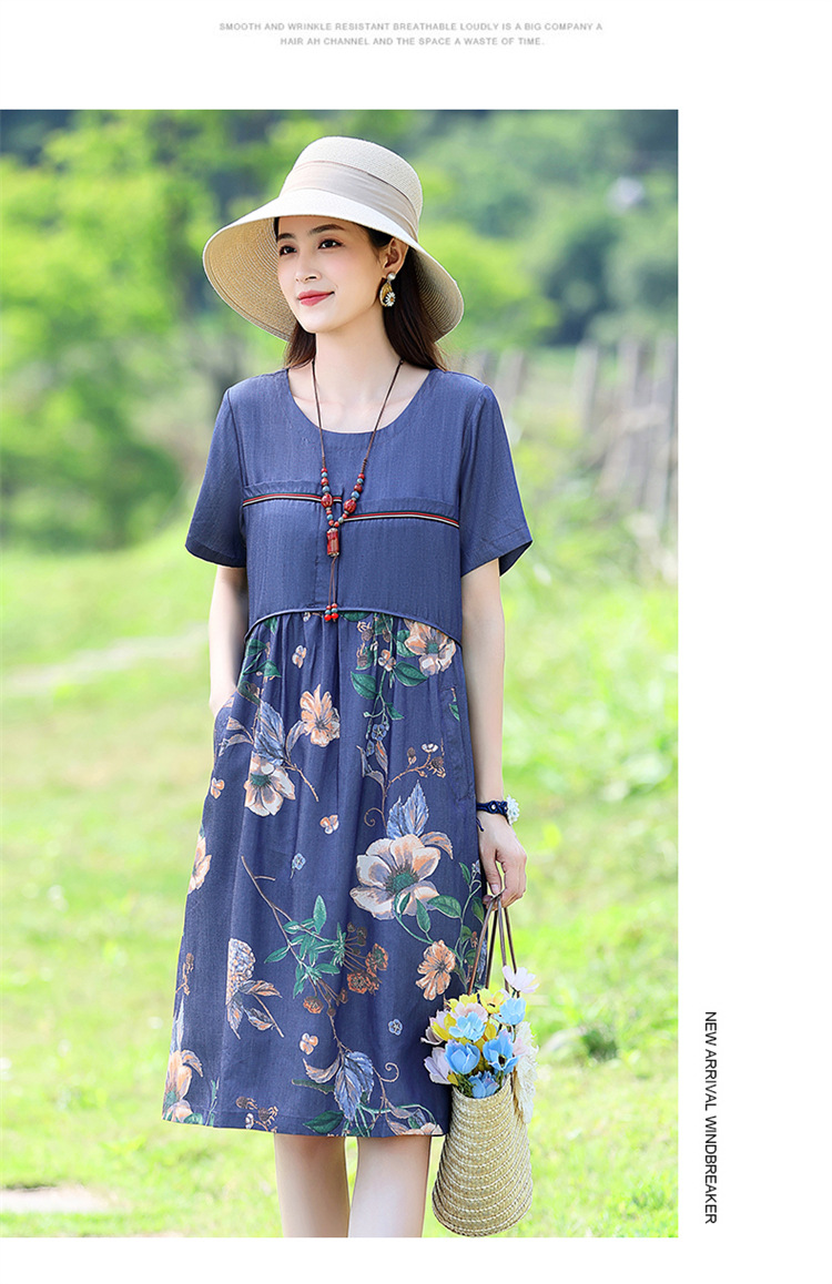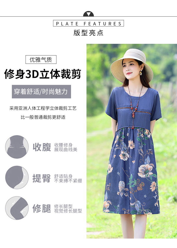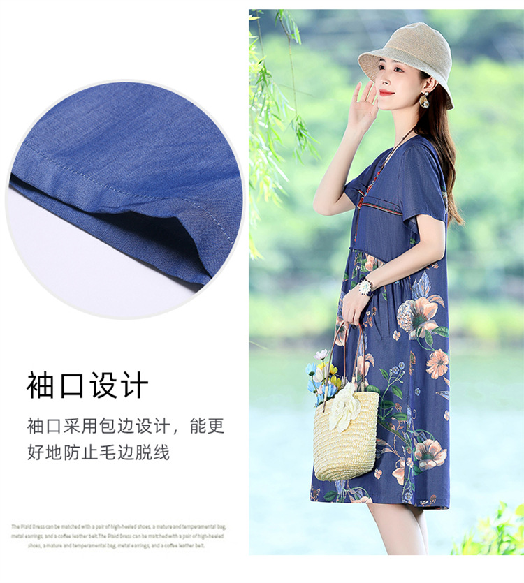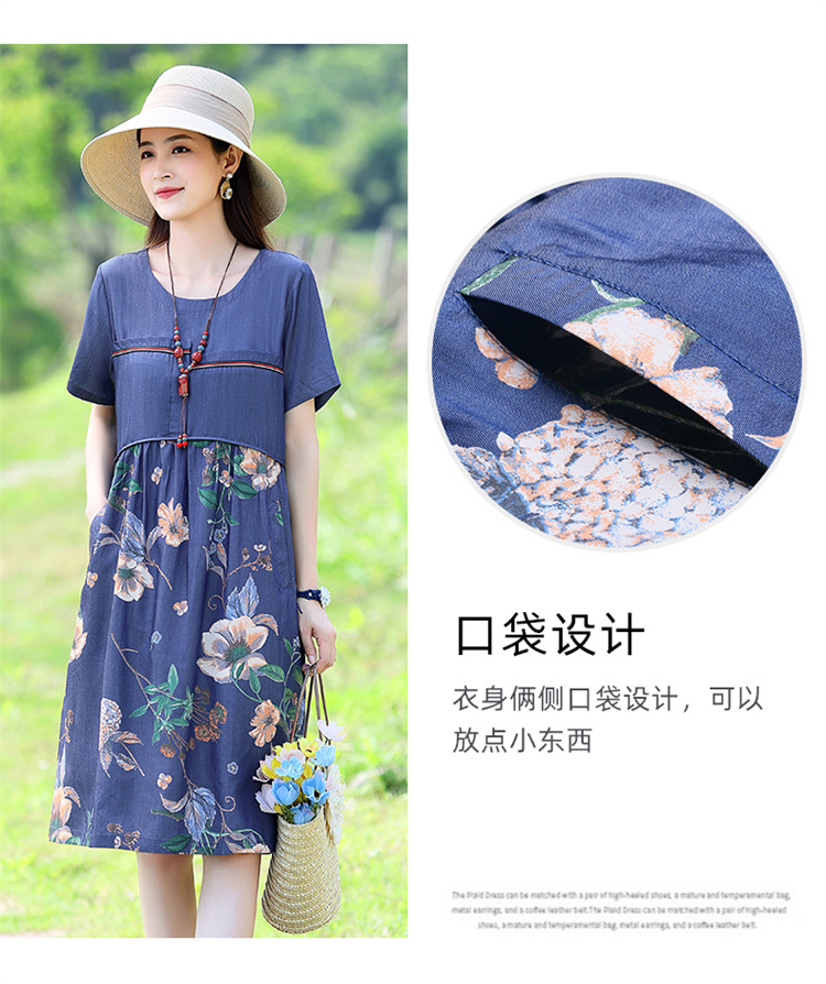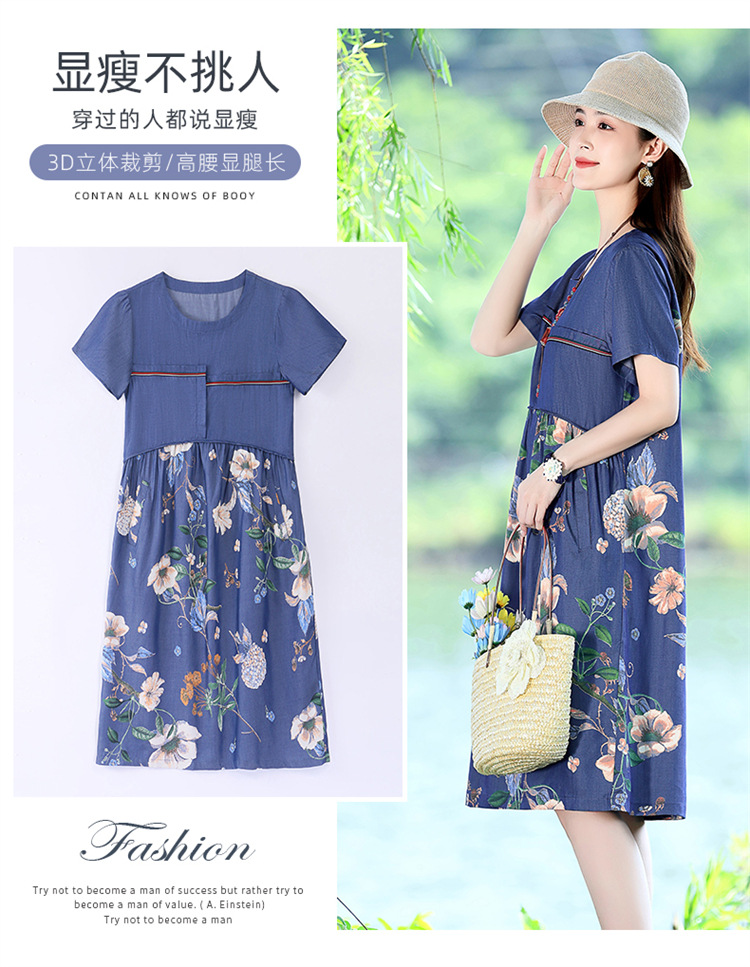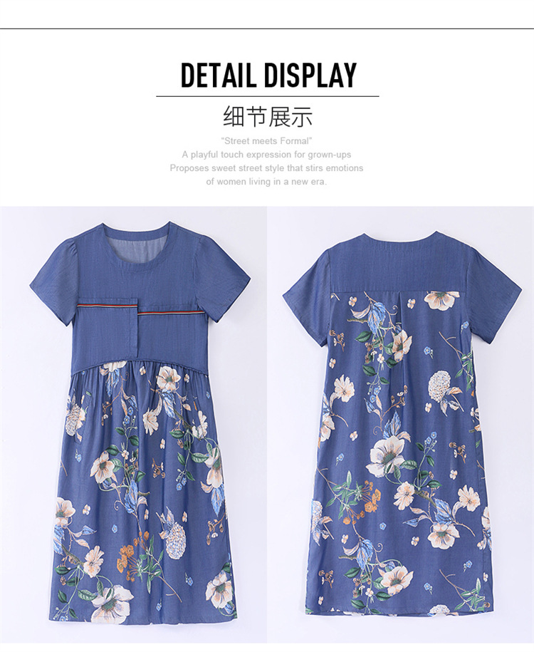 HRFS-WX62119拼接新款连衣裙2023年洋气印花时尚宽松休闲短袖连衣裙