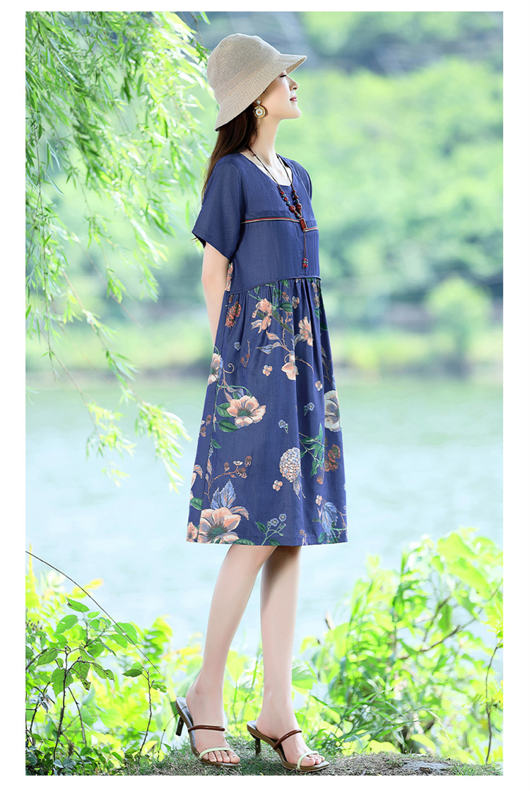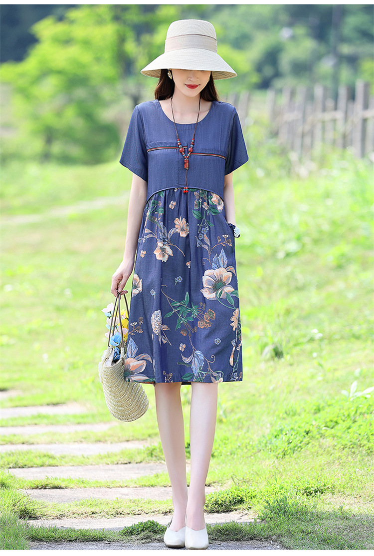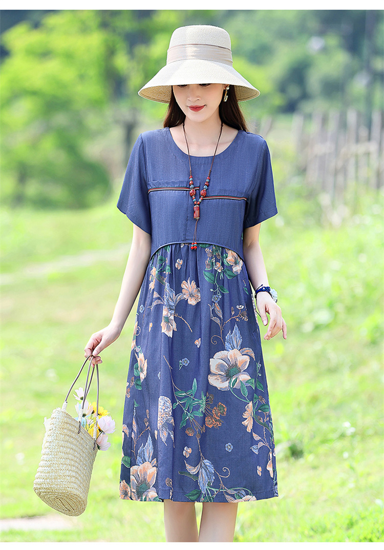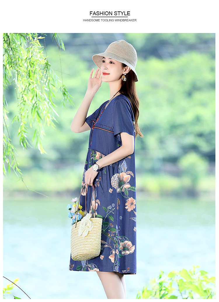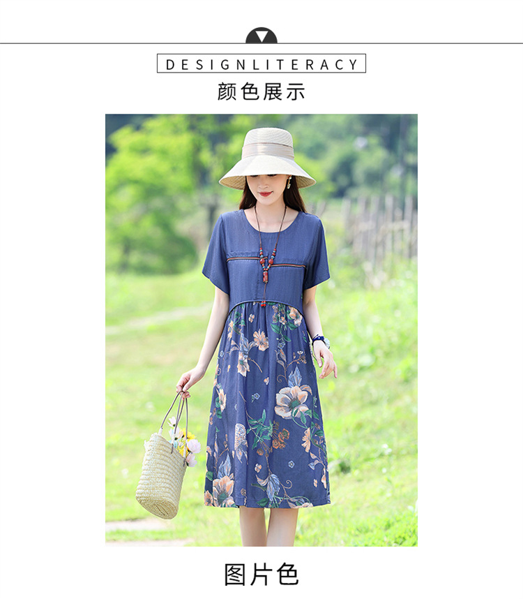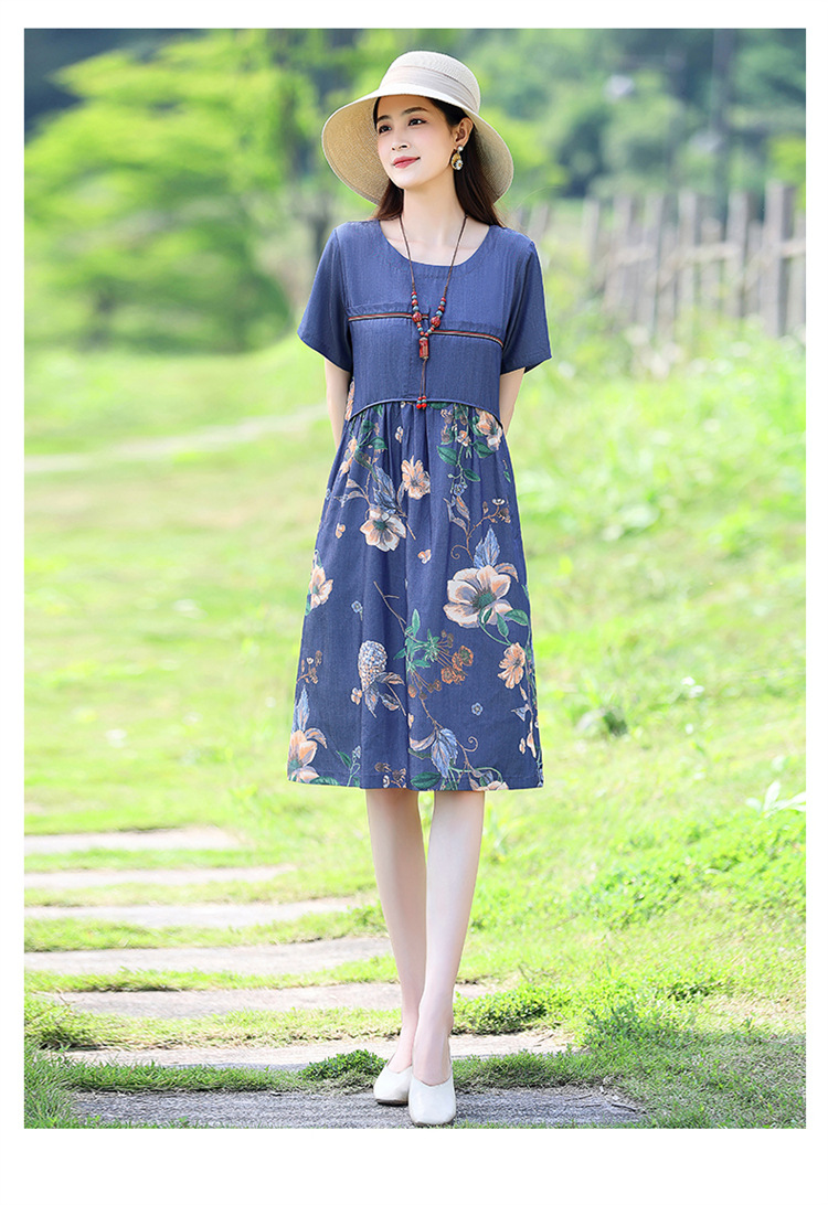 HRFS-WX62119拼接新款连衣裙2023年洋气印花时尚宽松休闲短袖连衣裙