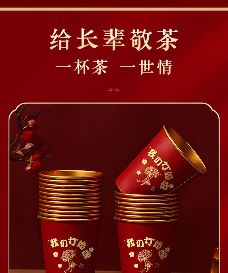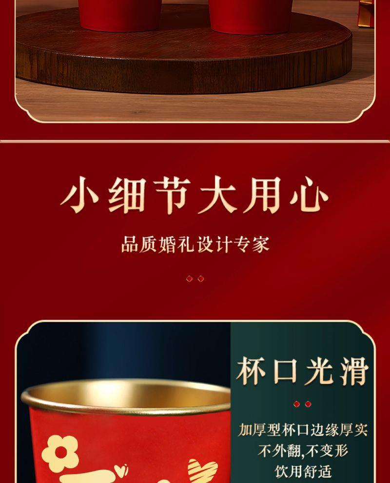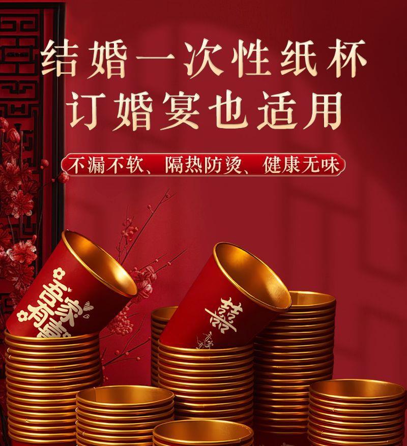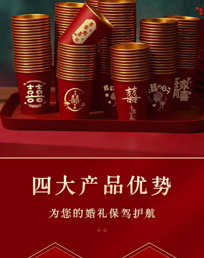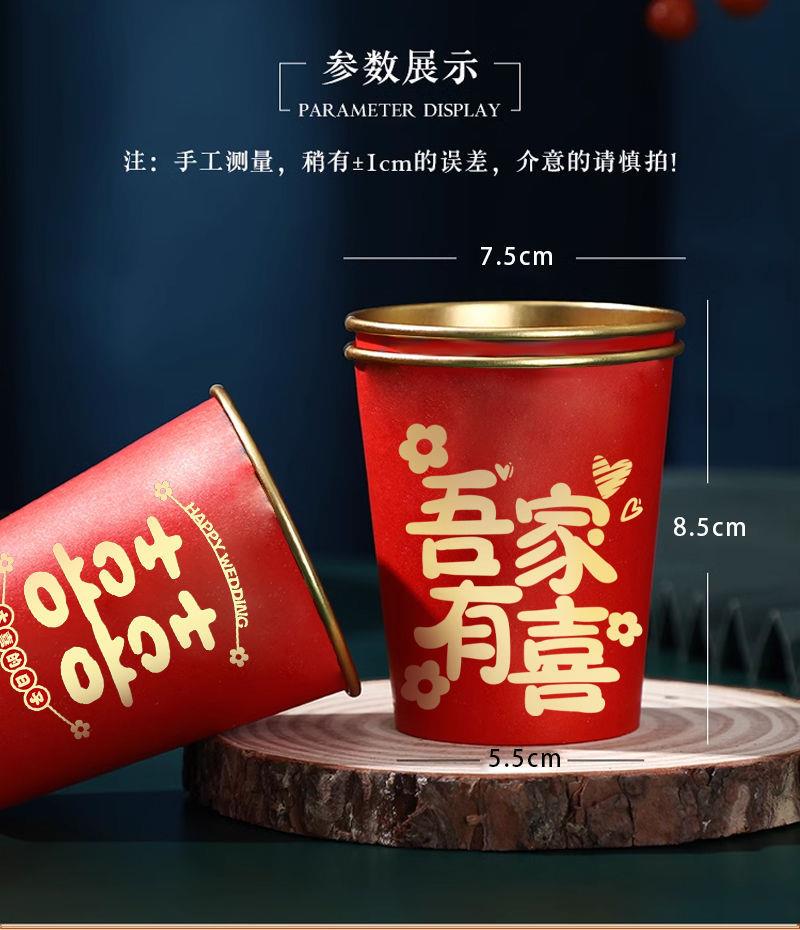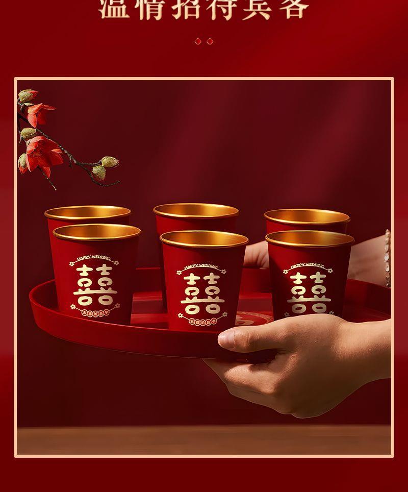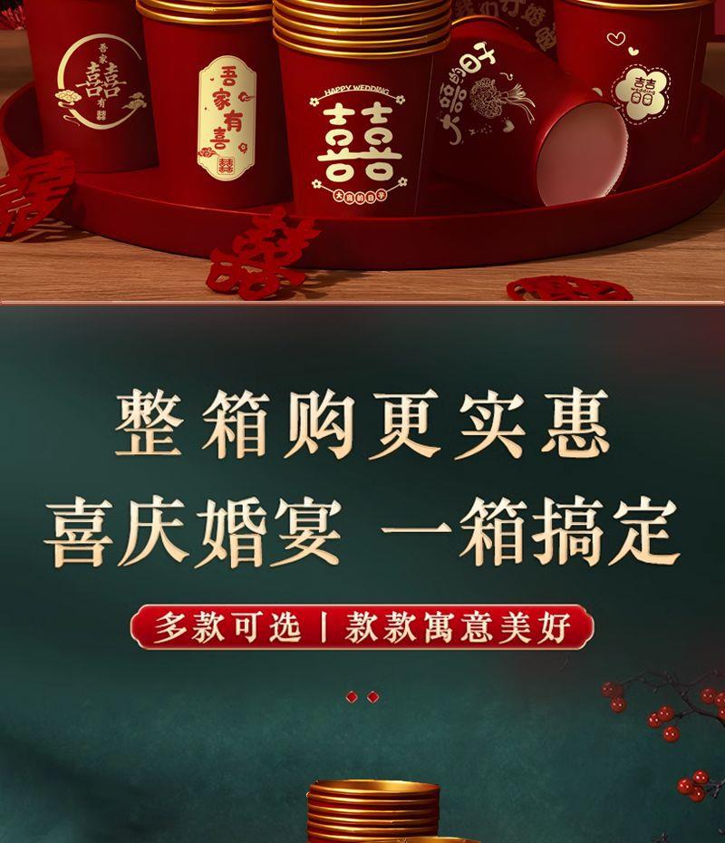结婚婚庆纸杯大全婚宴婚礼一次性喜字杯喜杯用品红纸杯水杯