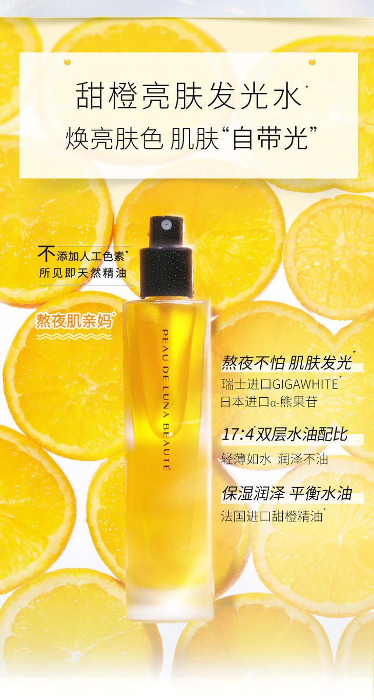 【新品-法国进口甜橙精油喷雾*-亮肤保湿-不添加人工色素】月明微露 活力甜橙亮肤精油喷雾105g 鲜活水润 一摇焕亮