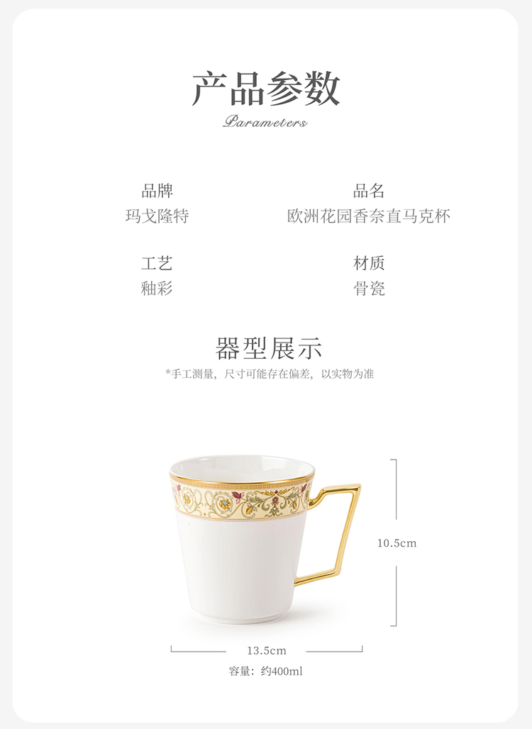 【玛戈隆特】欧洲花园骨瓷马克杯水杯早餐杯家用大容量高档办公室杯子