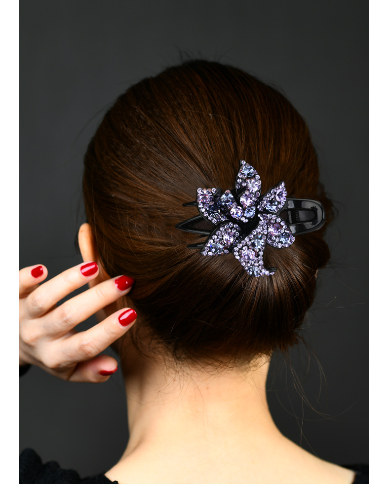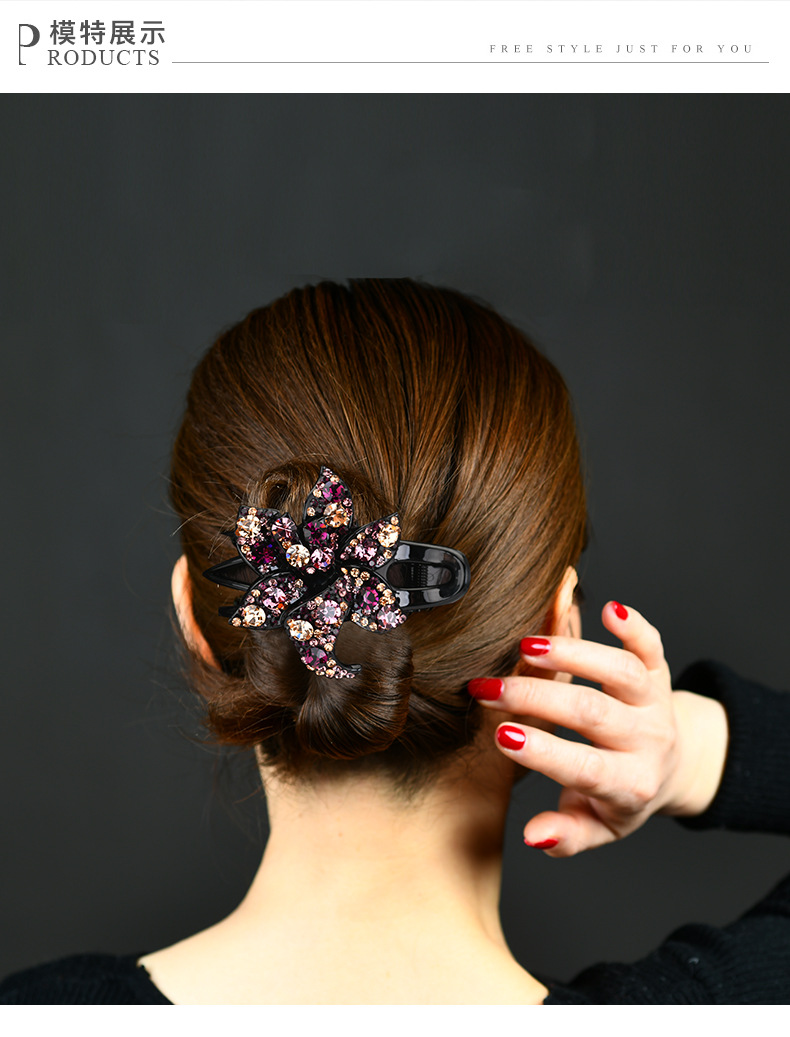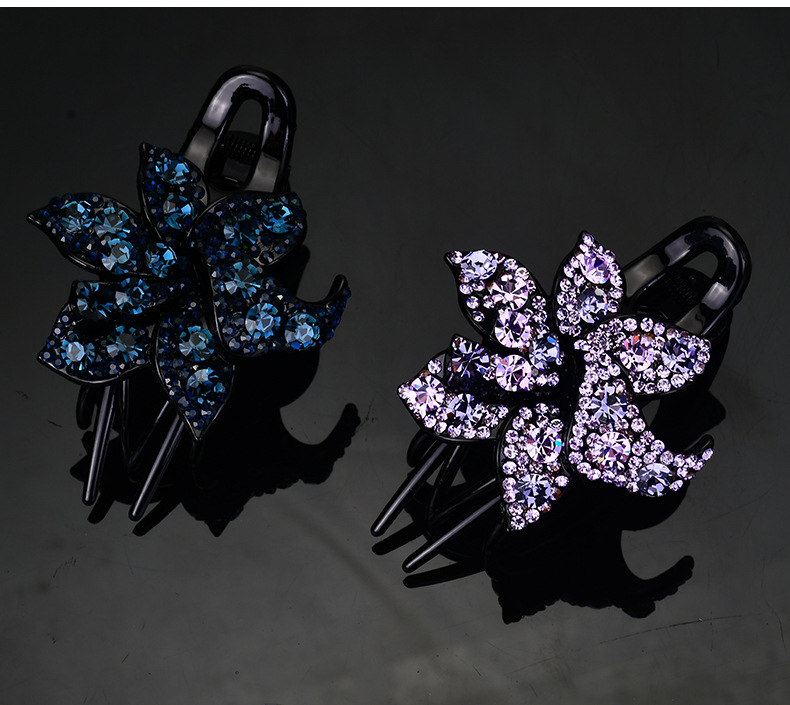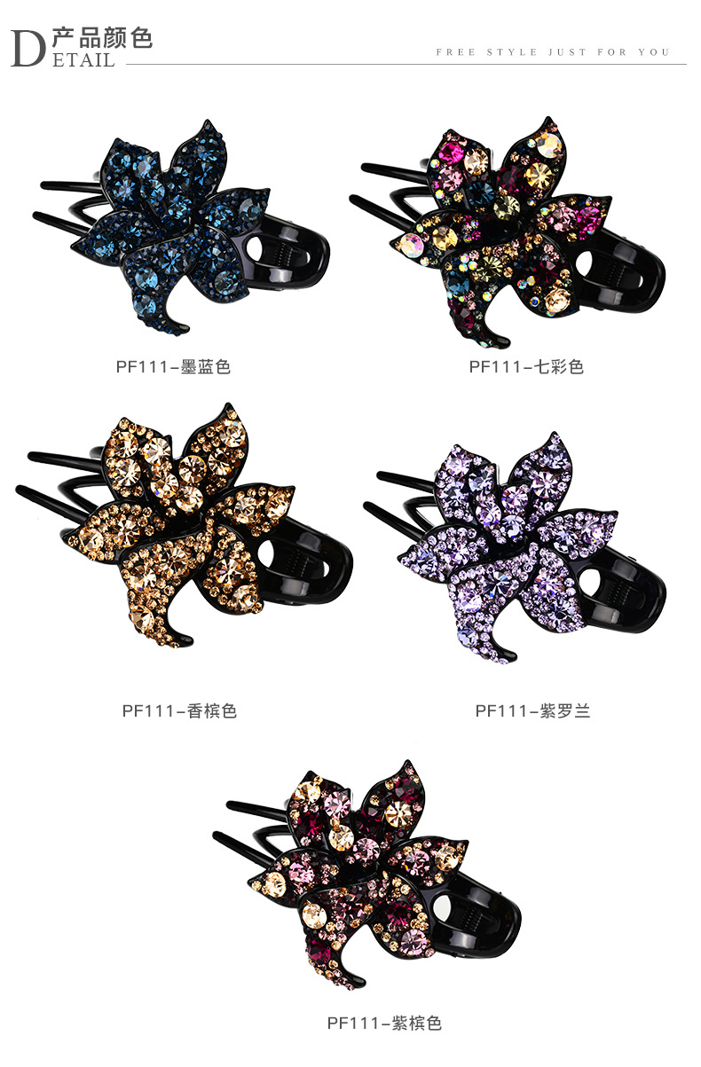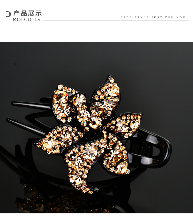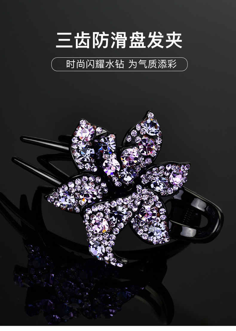 LBE三齿夹盘发抓夹头饰 韩国优雅个性水钻发卡一字鸭嘴成人发夹