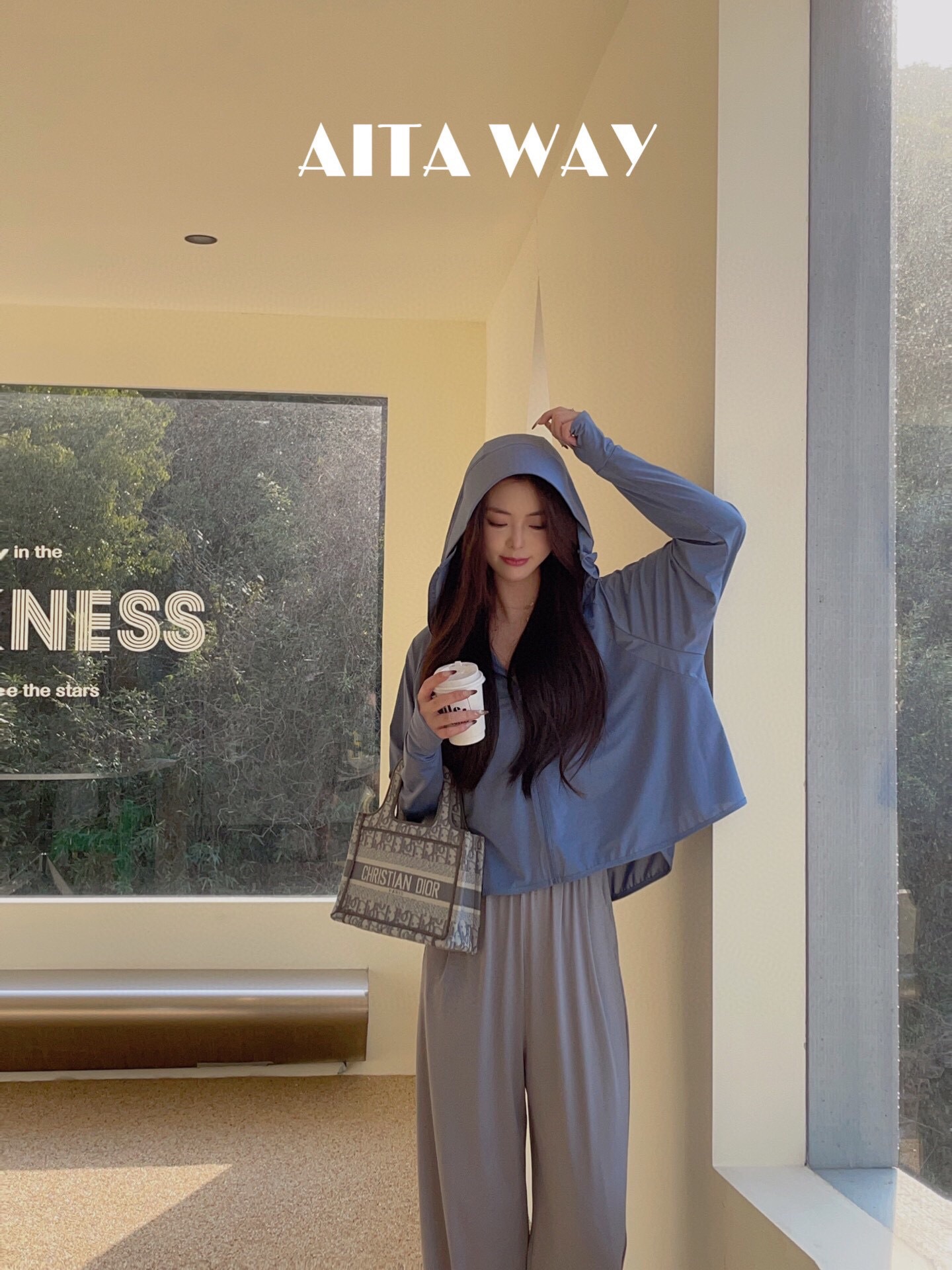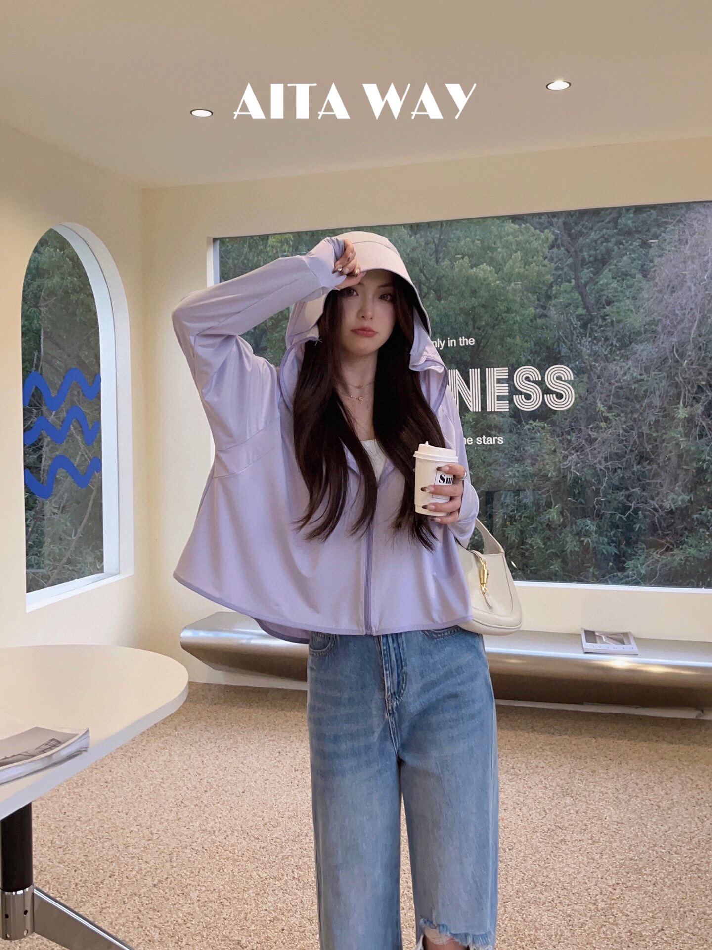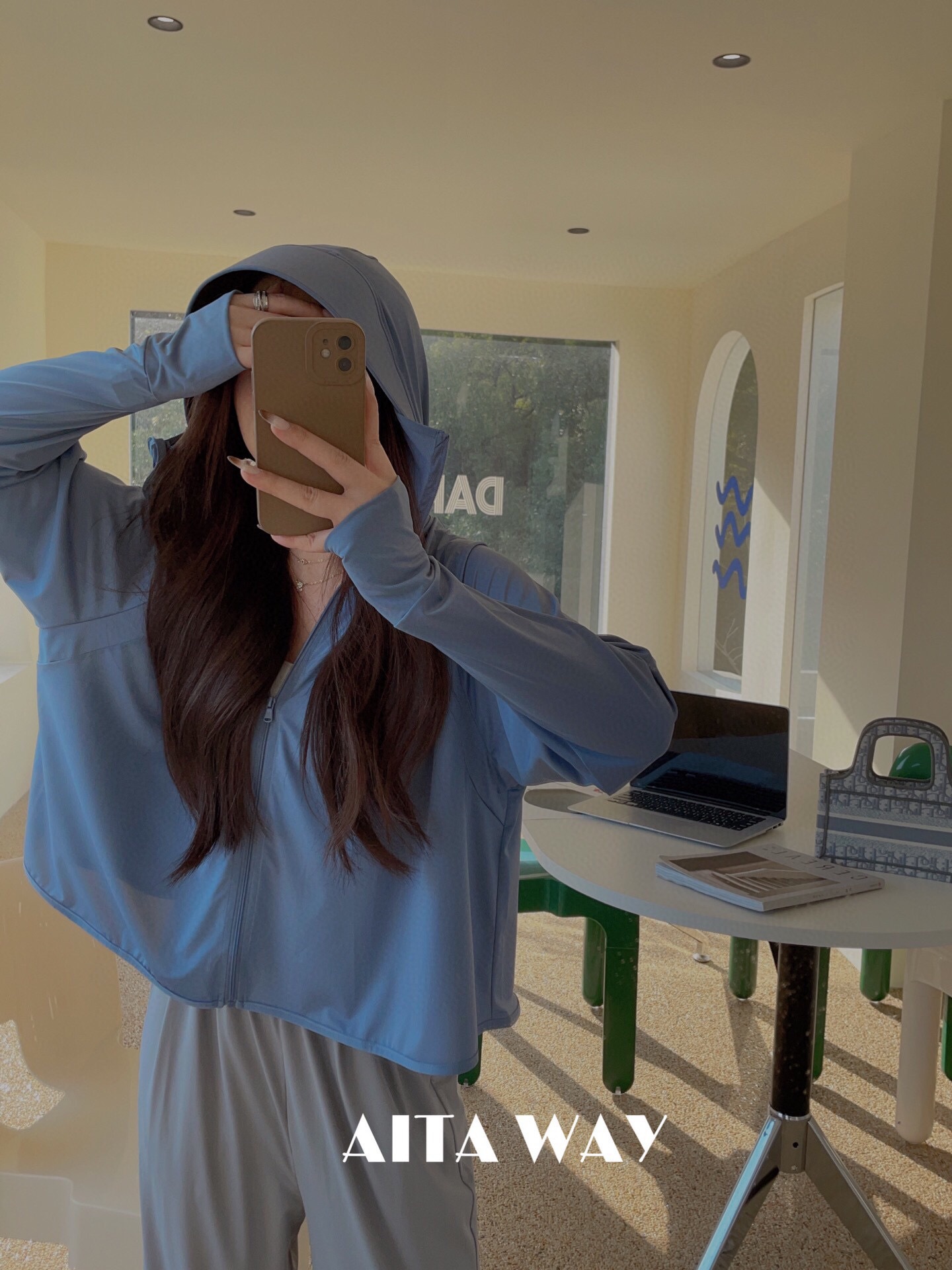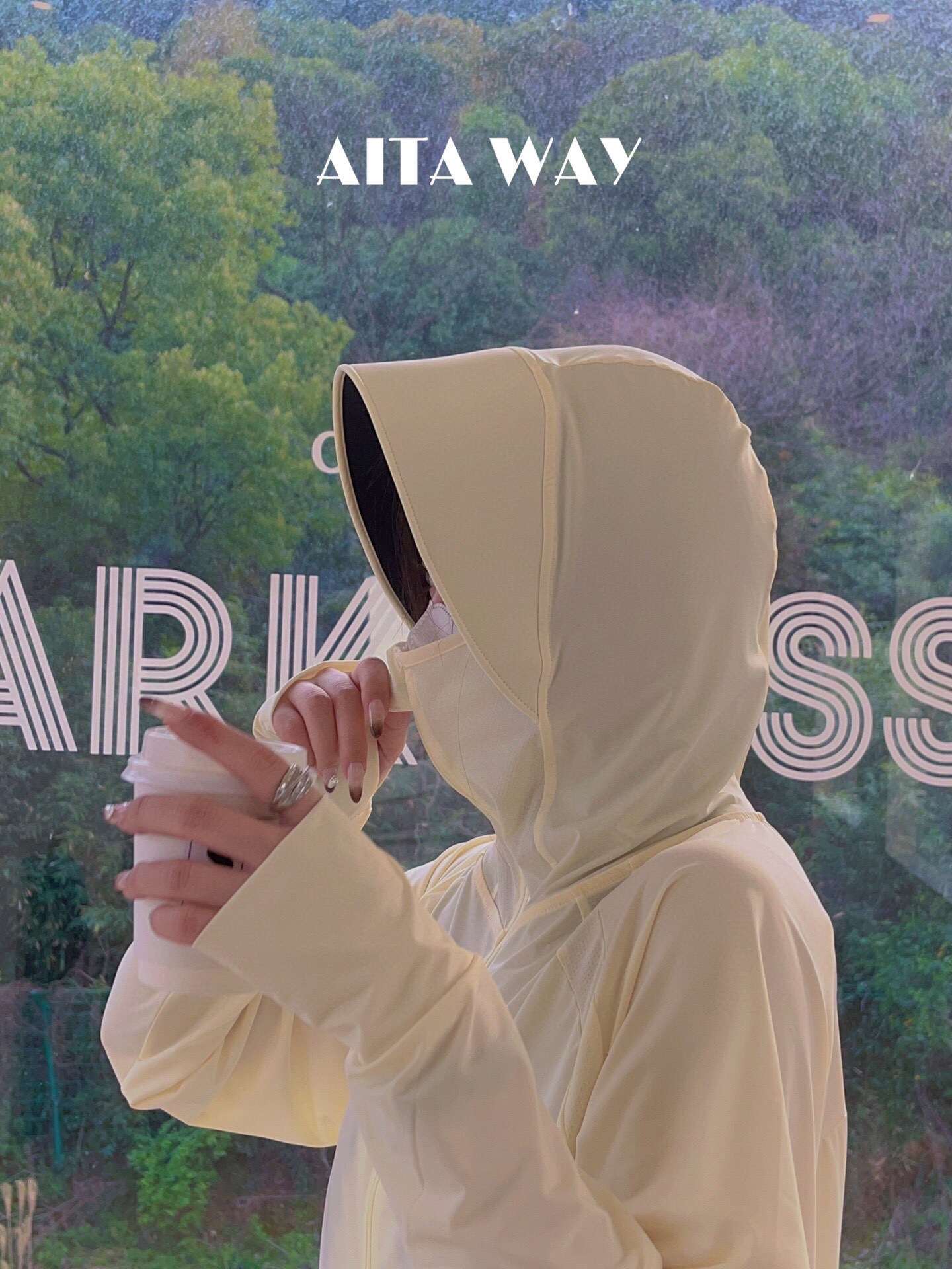 【升级版~黑胶帽斗篷防晒衣】轻奢黑胶帽斗篷防晒衣,防紫外线,时髦显瘦,透气网孔。上身舒适不闷热,立体黑胶帽檐防晒,防护小指套设计,冰感舒适面料,宽松便利,女防晒服