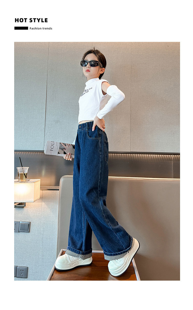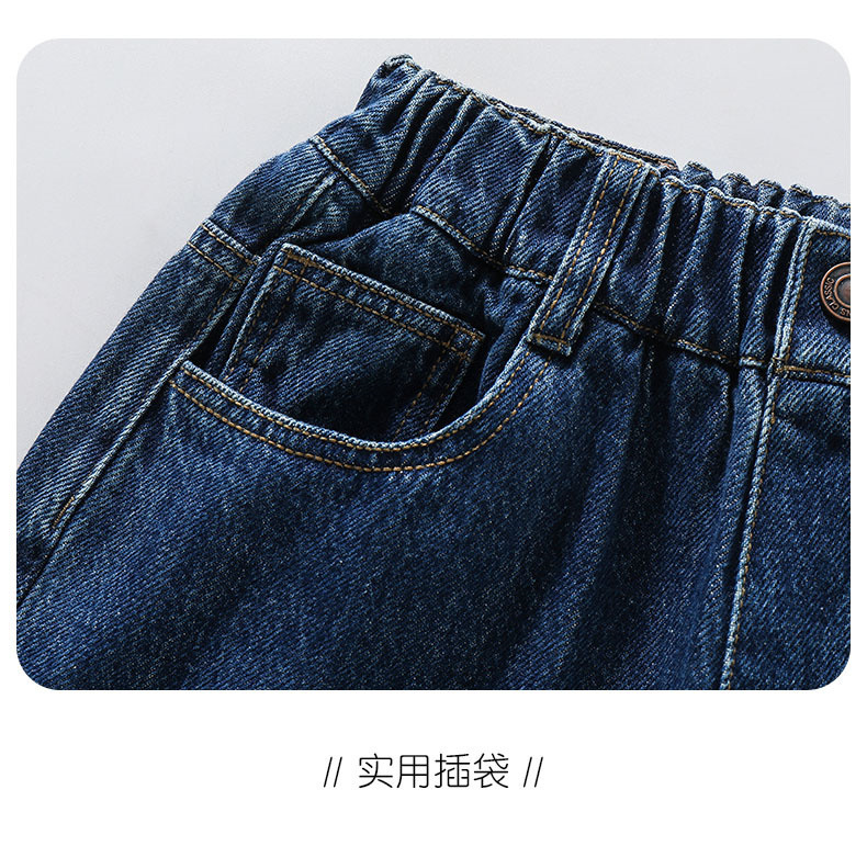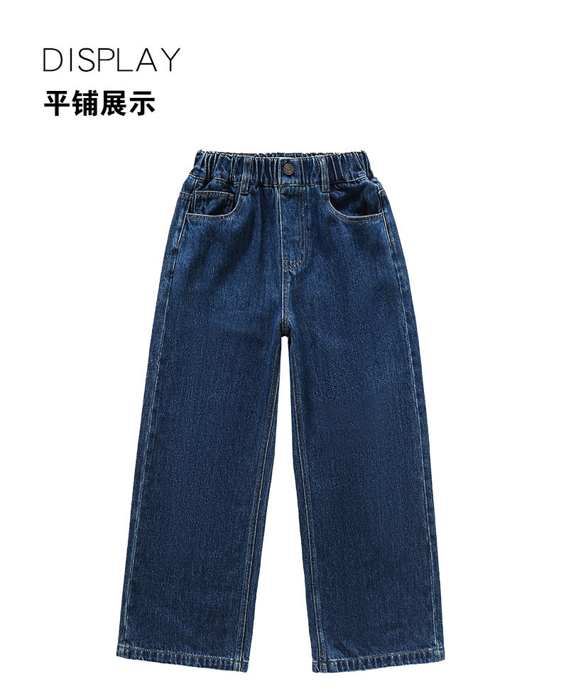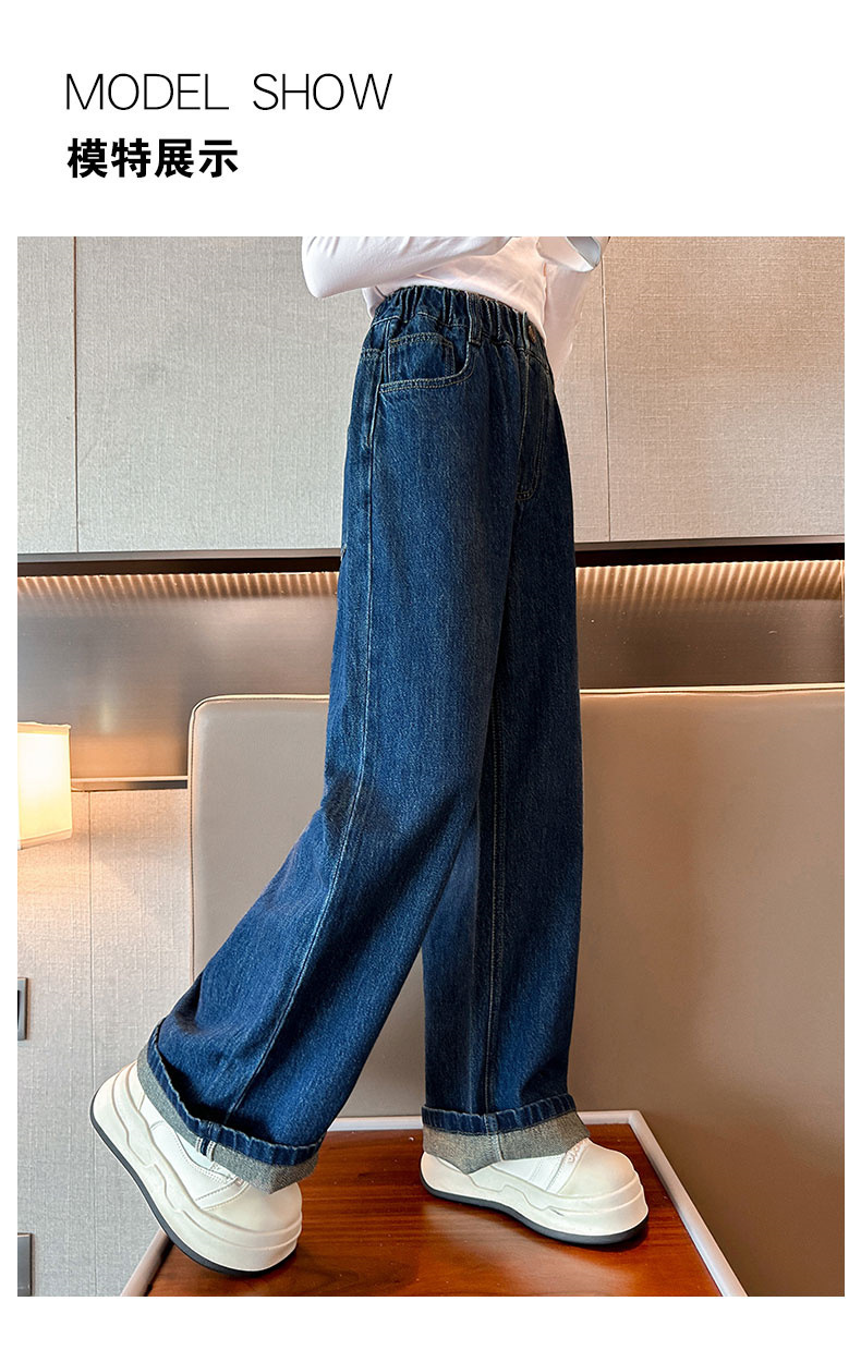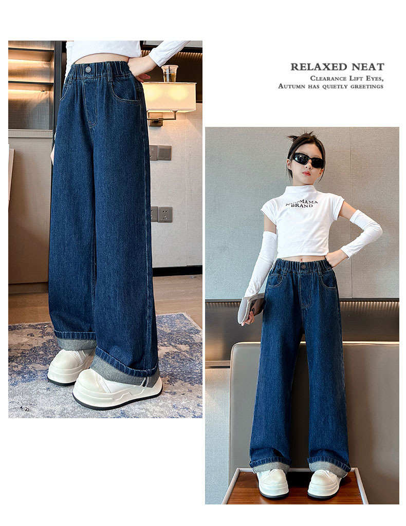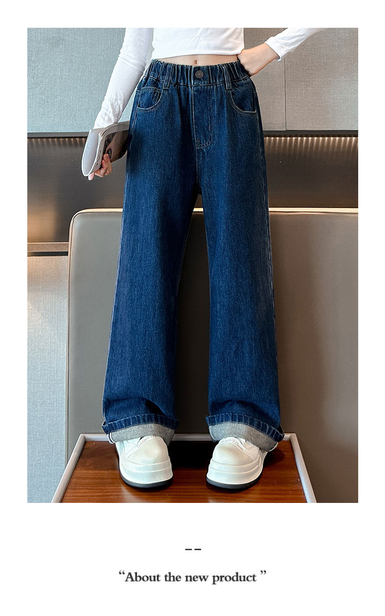 【显瘦高腰设计,舒适喇叭版型】女童裤子春秋新款 儿童深蓝牛仔裤 初秋长裤 女孩大童秋季阔腿裤-QQ