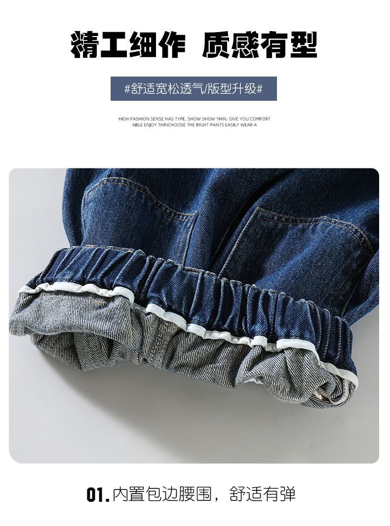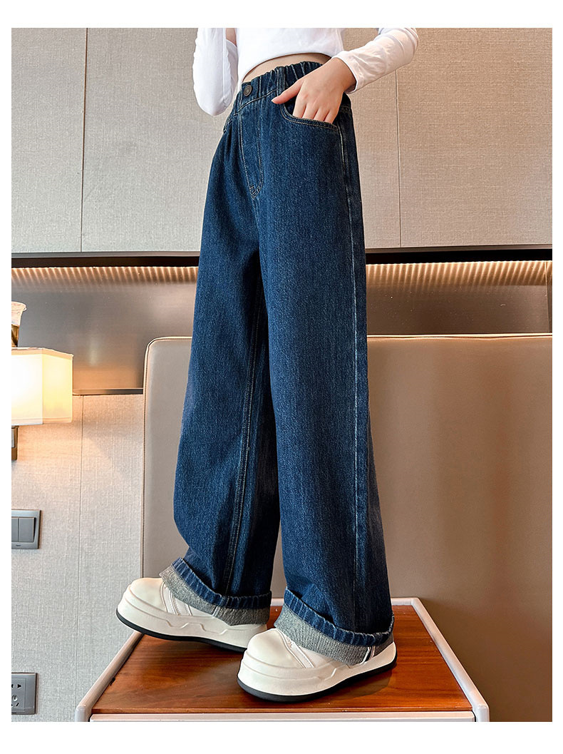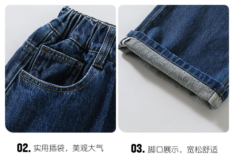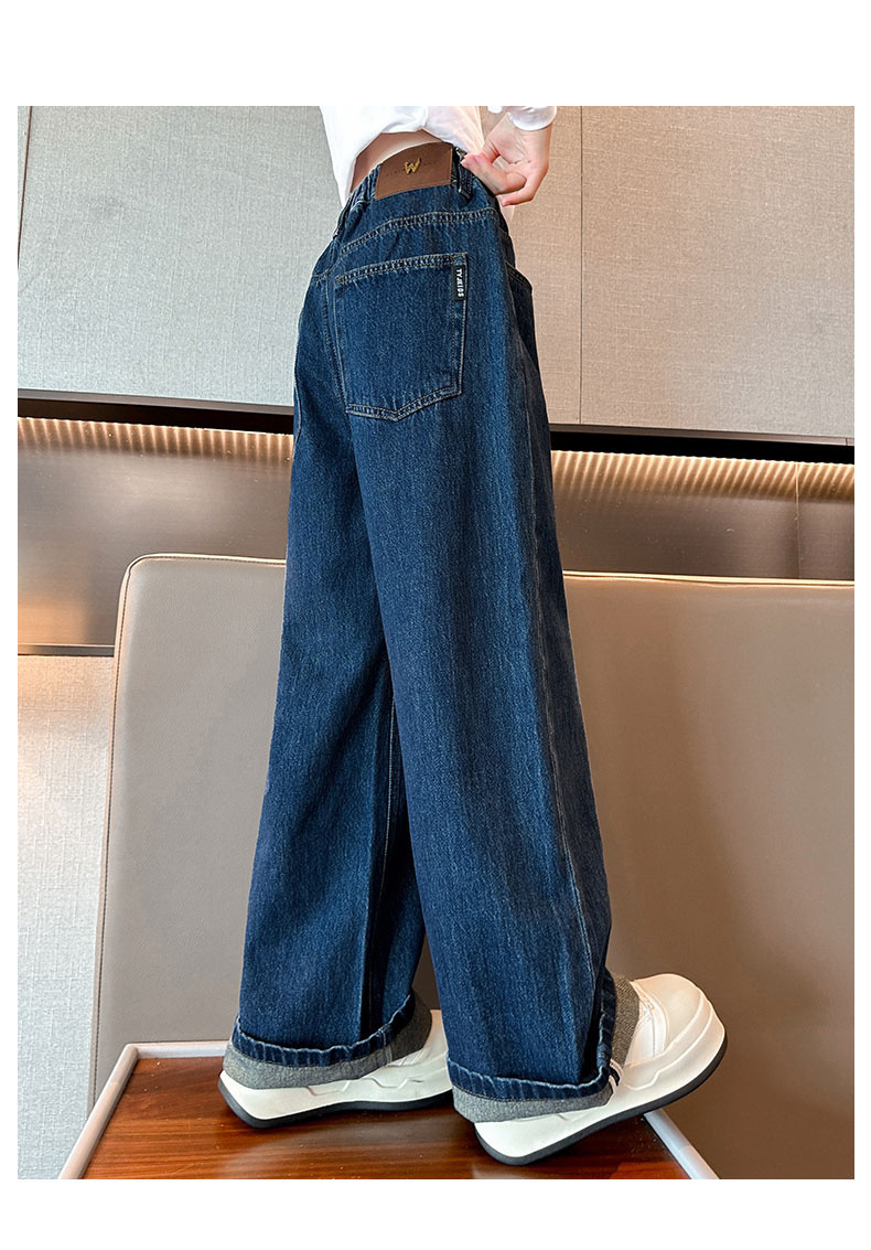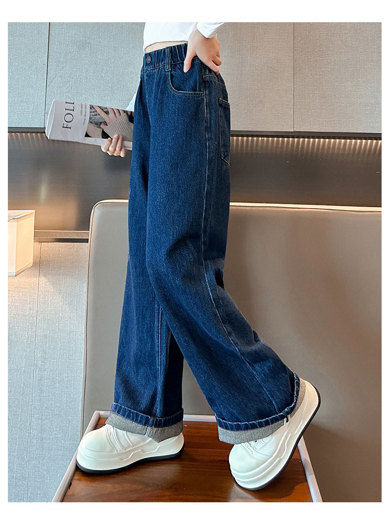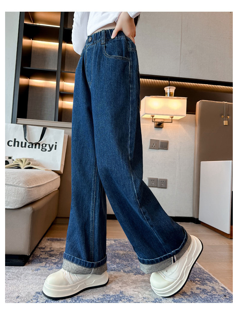 【显瘦高腰设计,舒适喇叭版型】女童裤子春秋新款 儿童深蓝牛仔裤 初秋长裤 女孩大童秋季阔腿裤-QQ