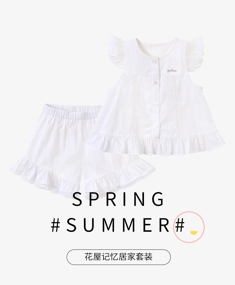 英氏女童家居服套装纯棉开衫背心短裤舒适凉快春夏季款马甲YZJCJ2A YZJCJ1A