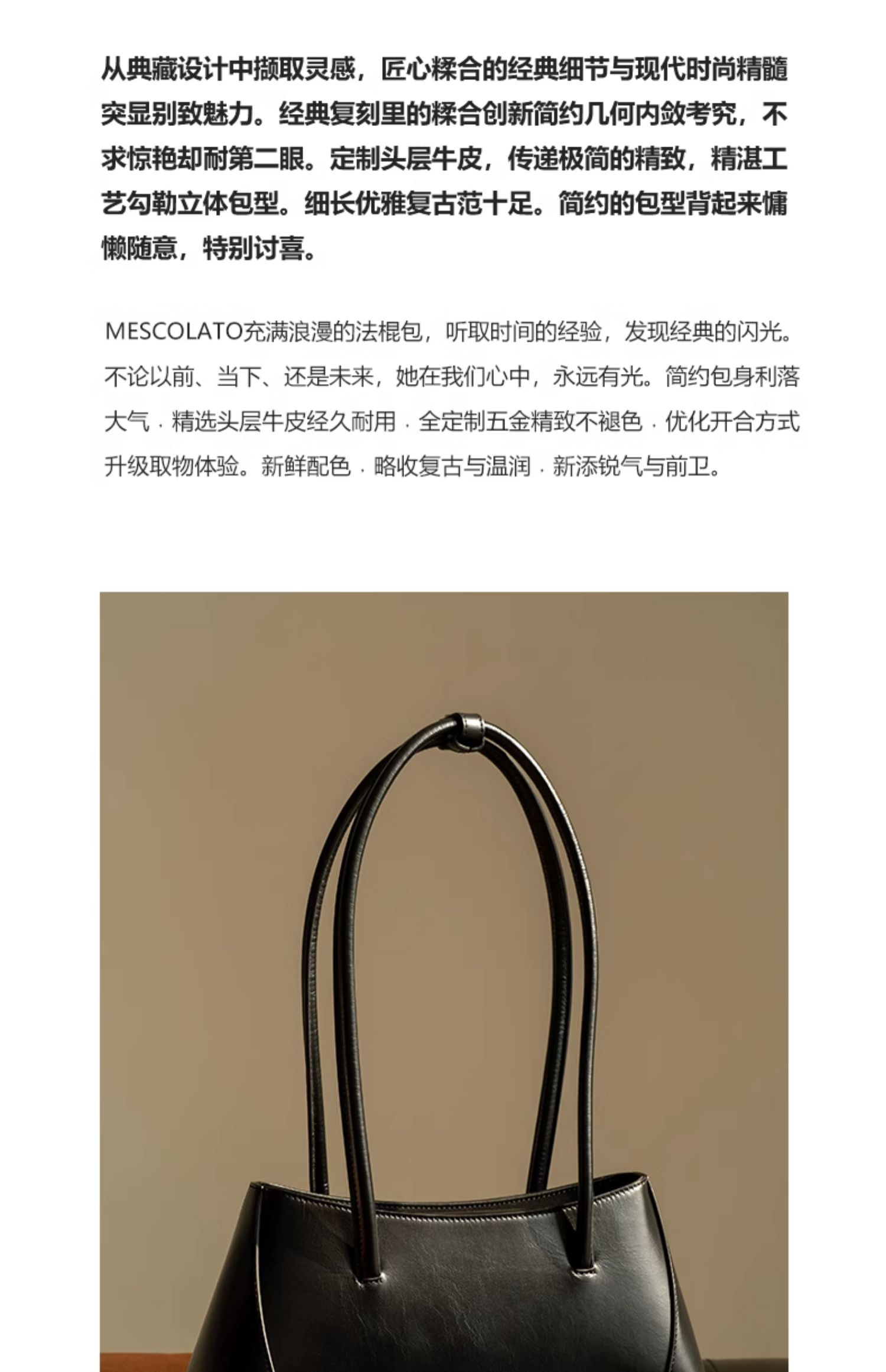 Mescolato 意大利手工新款法棍包小众设计品牌头层牛皮单肩腋下包【本商品不支持用券】