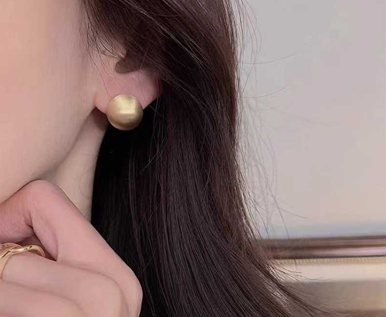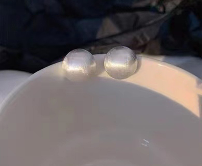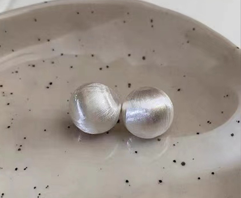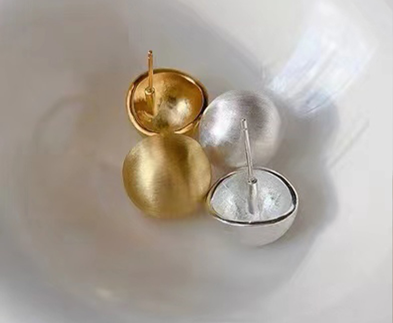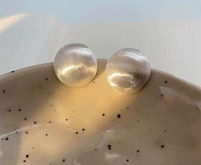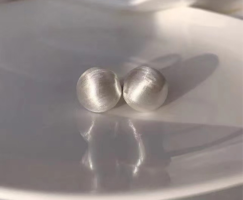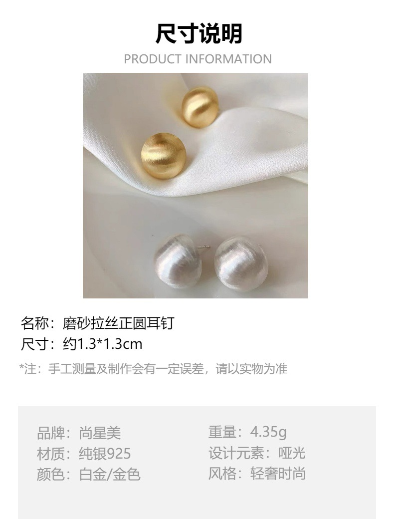 丁摩 纯银磨砂拉丝简约圆形哑光气质高级感耳钉欧美时尚耳饰潮5ZF-0005