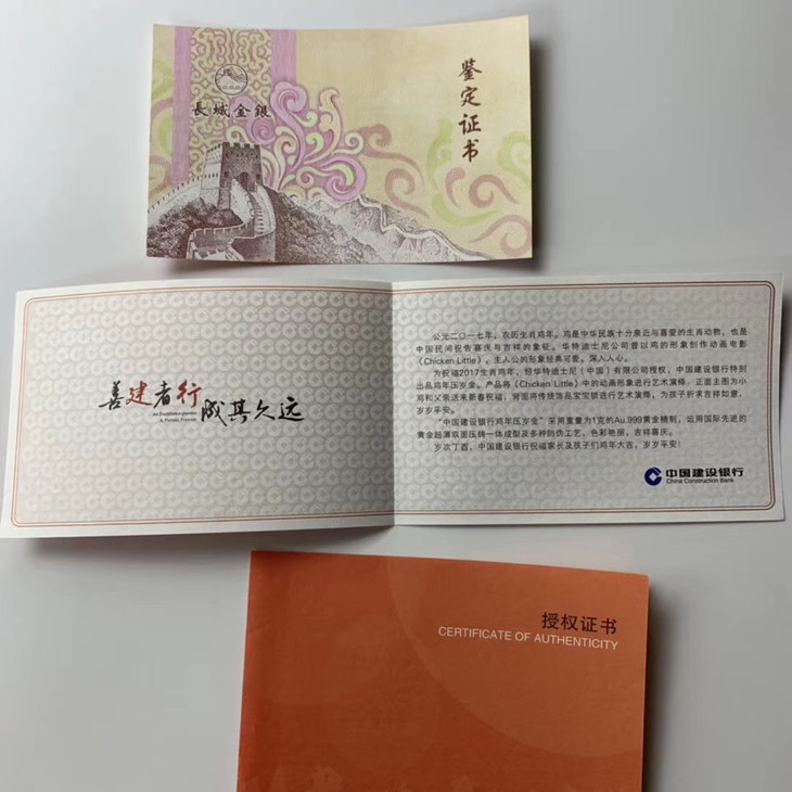 建行鸡年压岁金钞 中国建设银行发行 含纯金1克