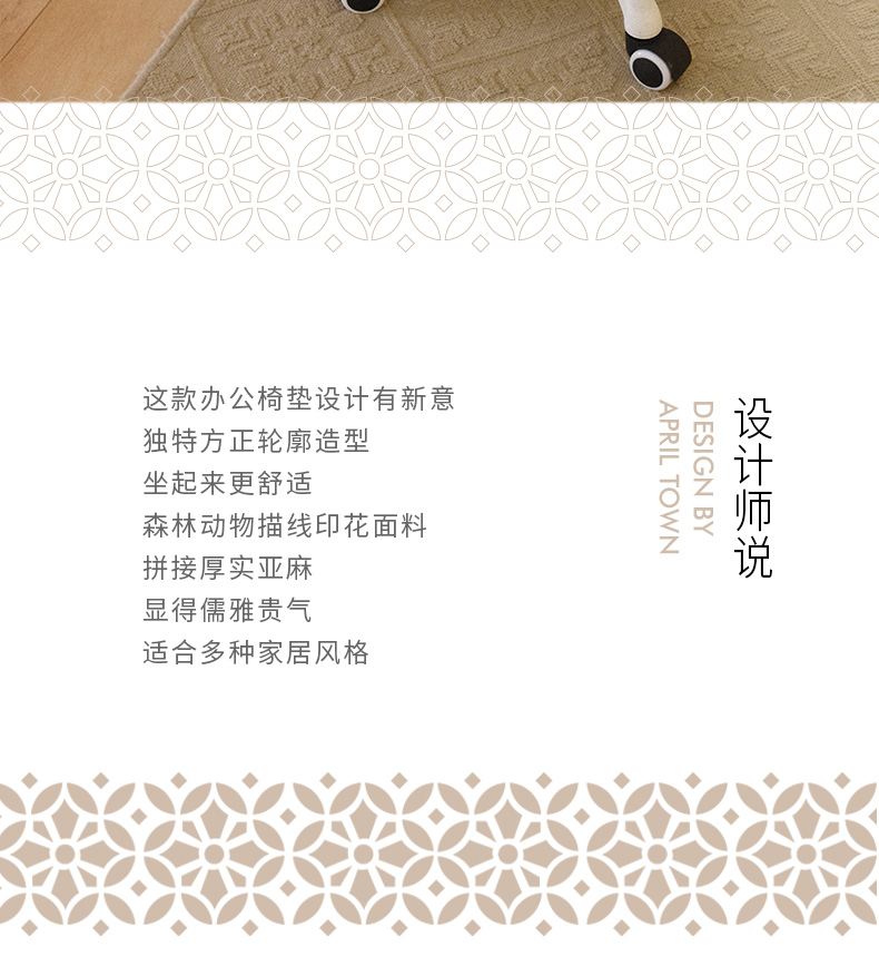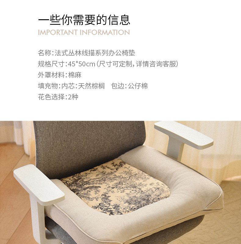 法式丛林线描系列人体工学电脑椅垫四季通用坐垫