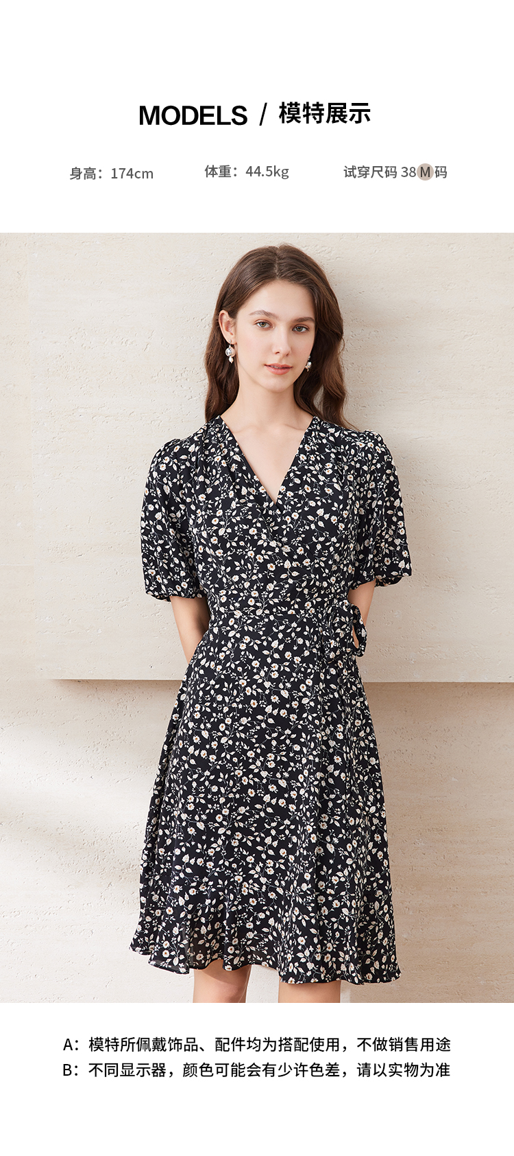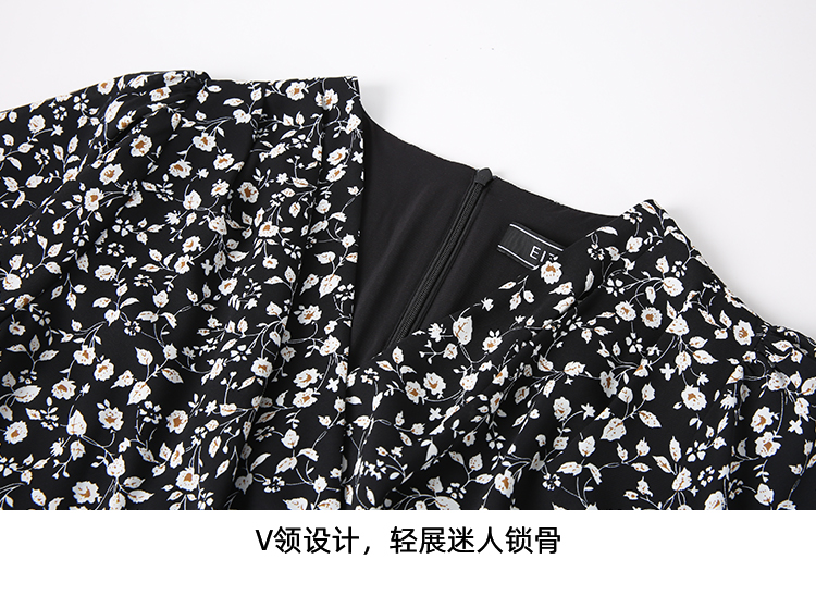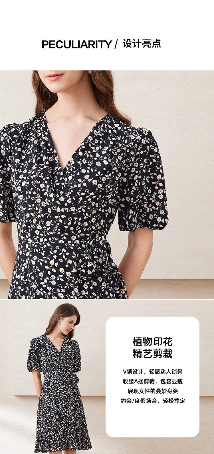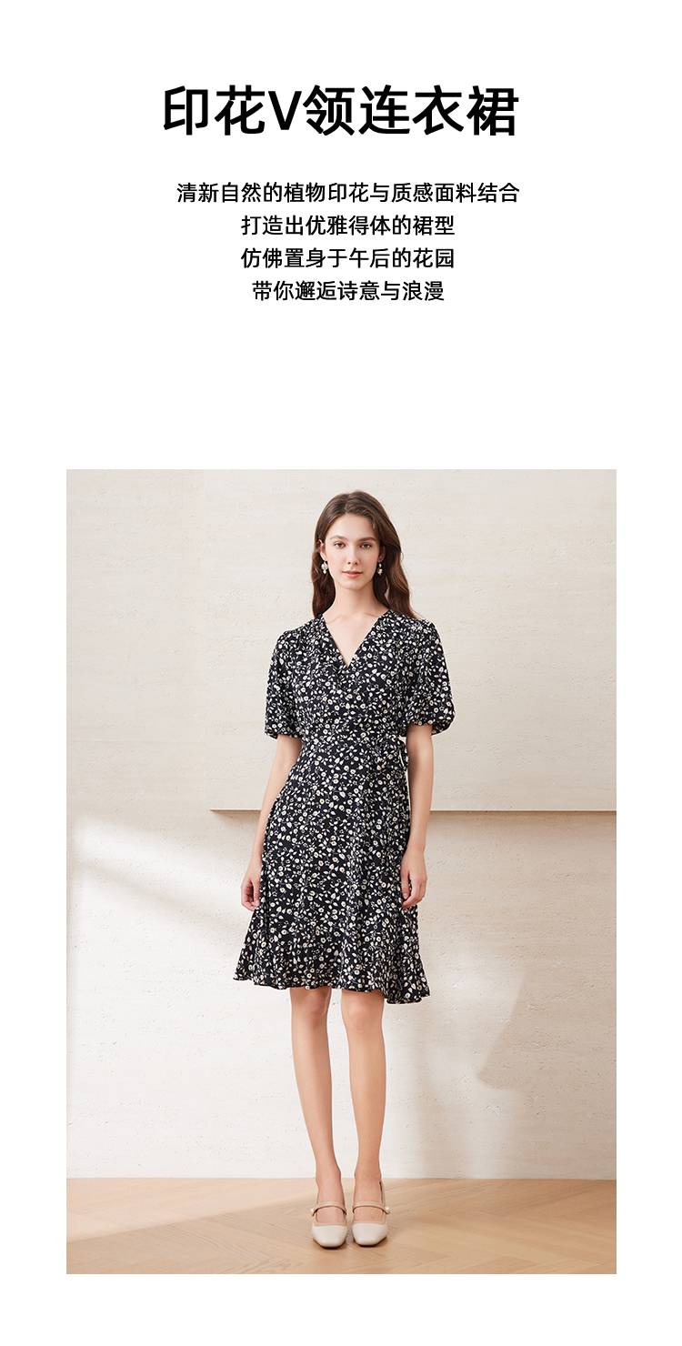 EITIE爱特爱泡泡袖气质碎花法式浪漫印花连衣裙2025夏季新款B2507644
