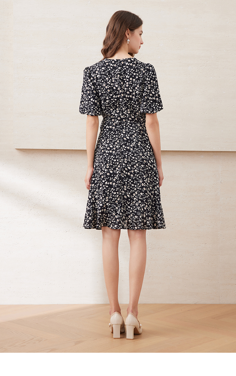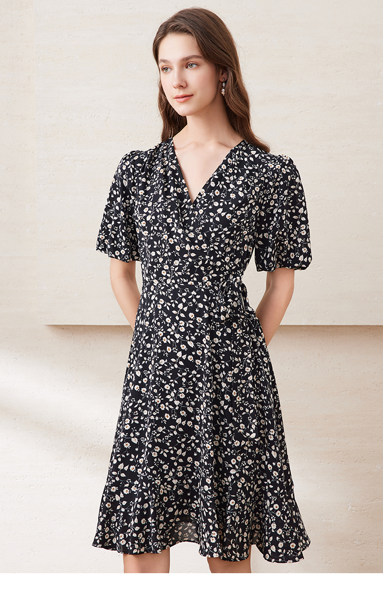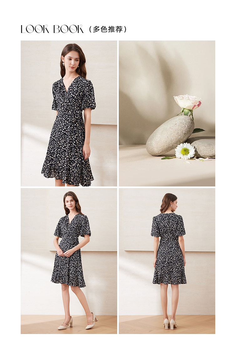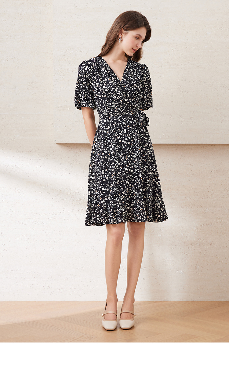 EITIE爱特爱泡泡袖气质碎花法式浪漫印花连衣裙2025夏季新款B2507644