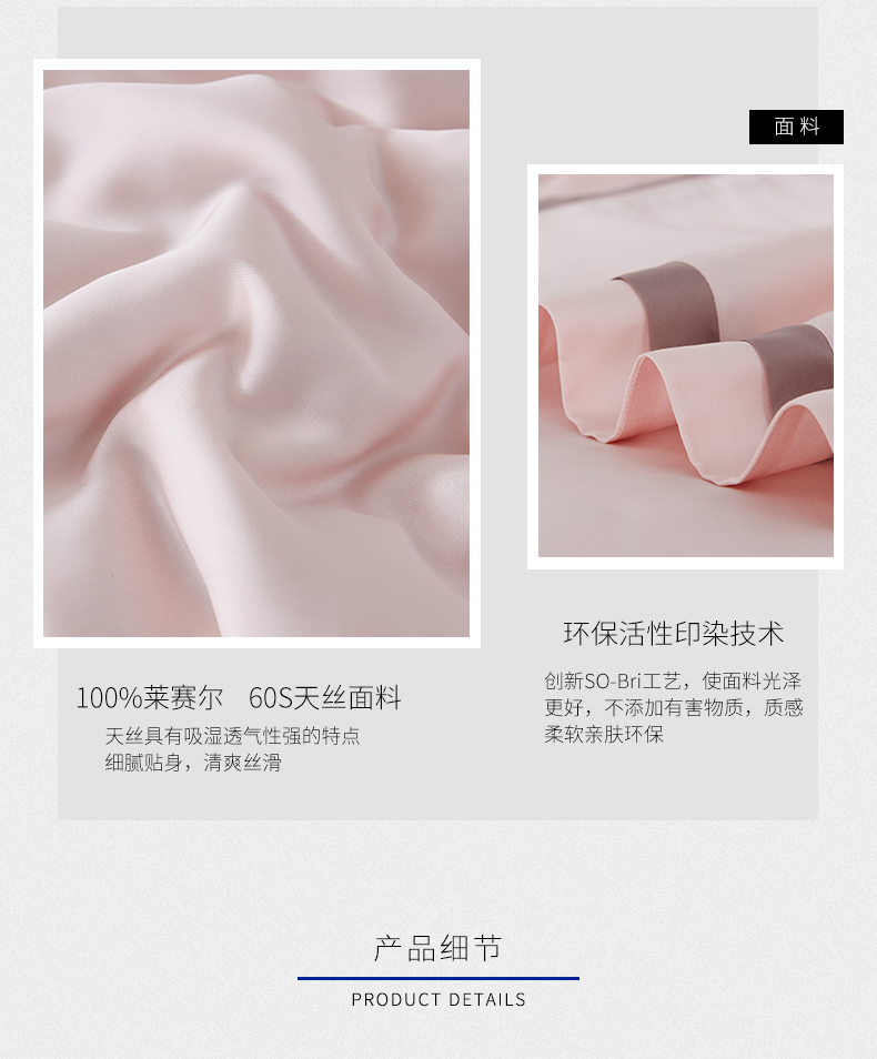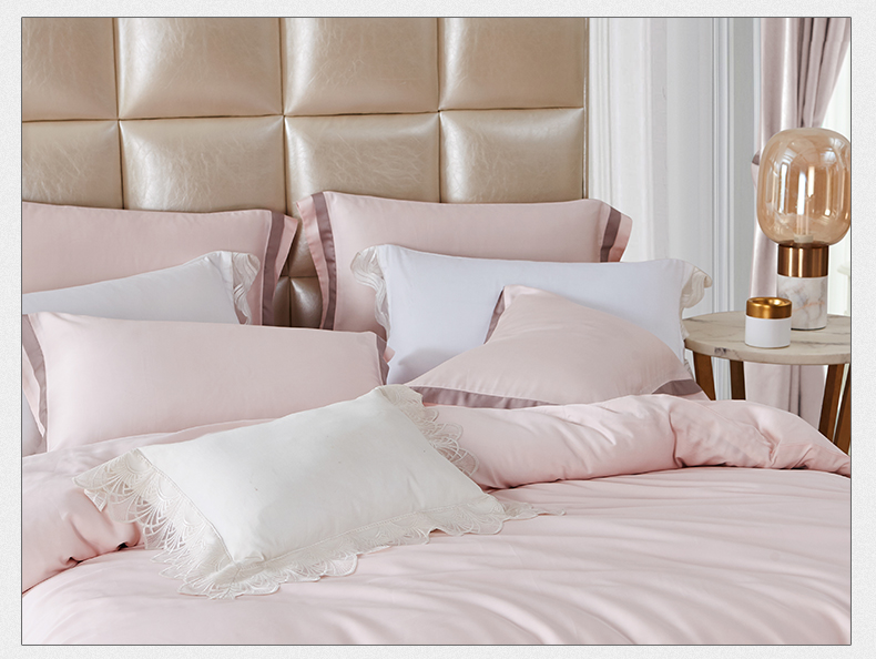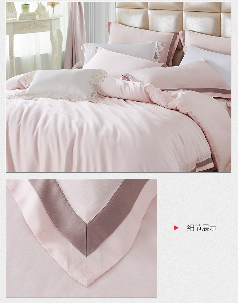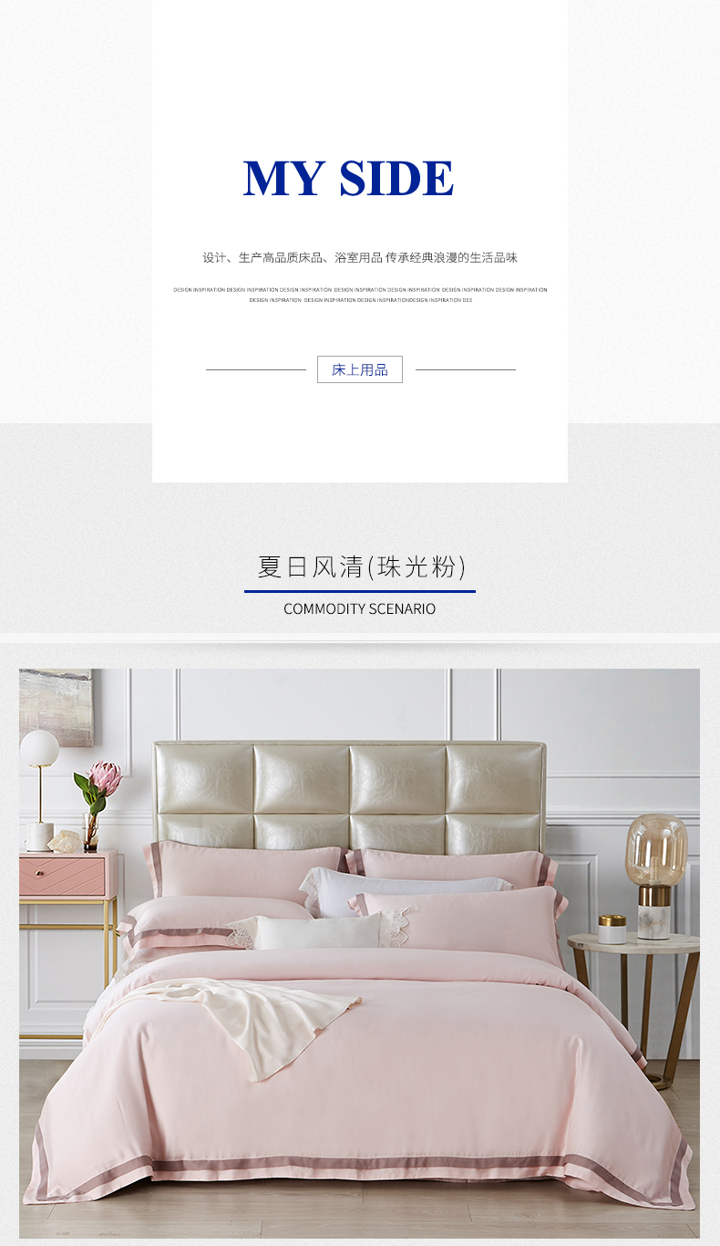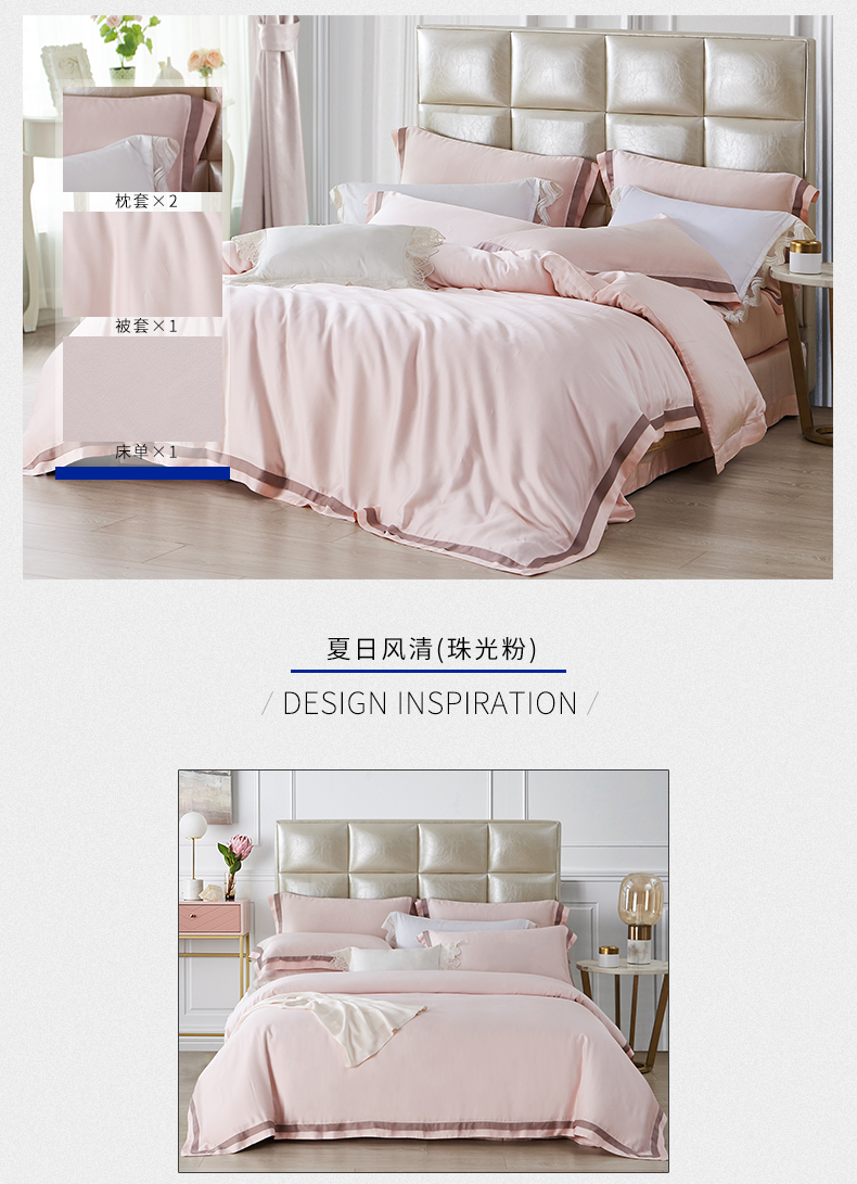 MY SIDE 2020年夏季新品 春夏凉60S天丝双拼角四件套-夏日风清(珠光粉) 100%莱赛尔4件套床单被套床上用品