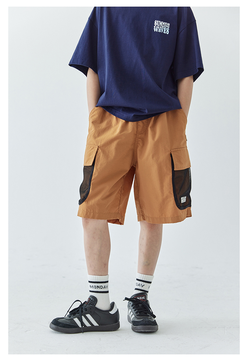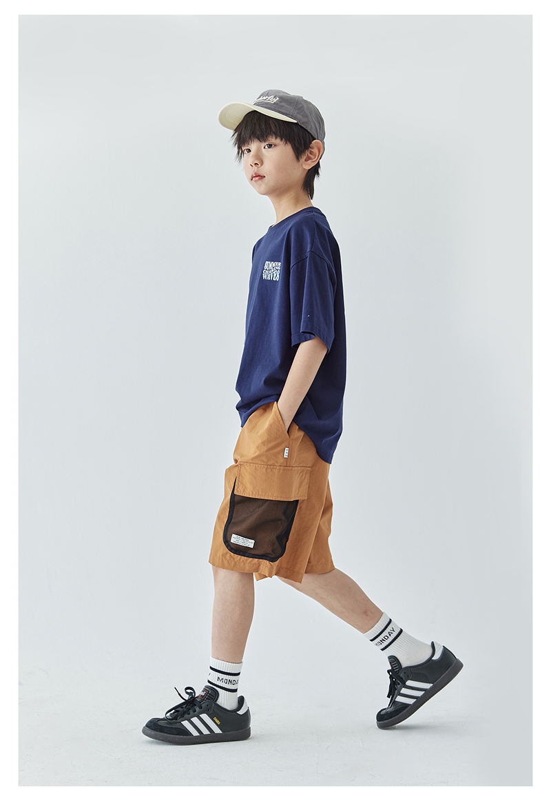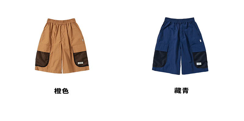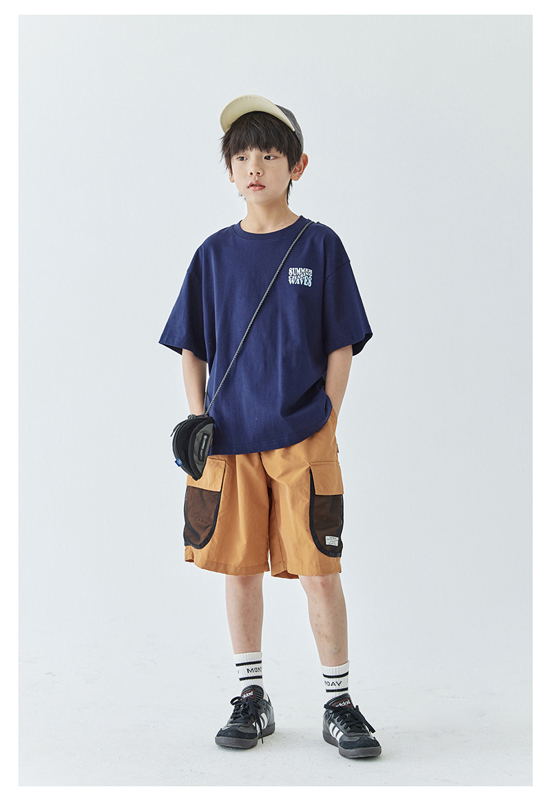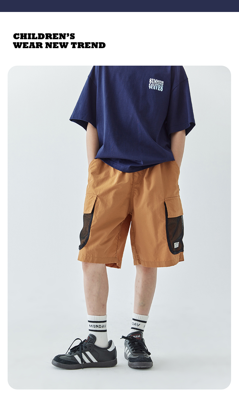 【代发】男童美式复古五分裤 蓝汽水夏季百搭户外工装网眼口袋短裤藏青/橙色