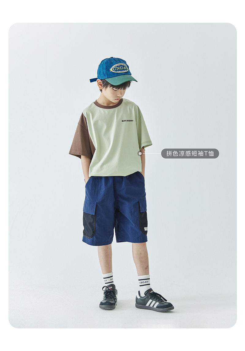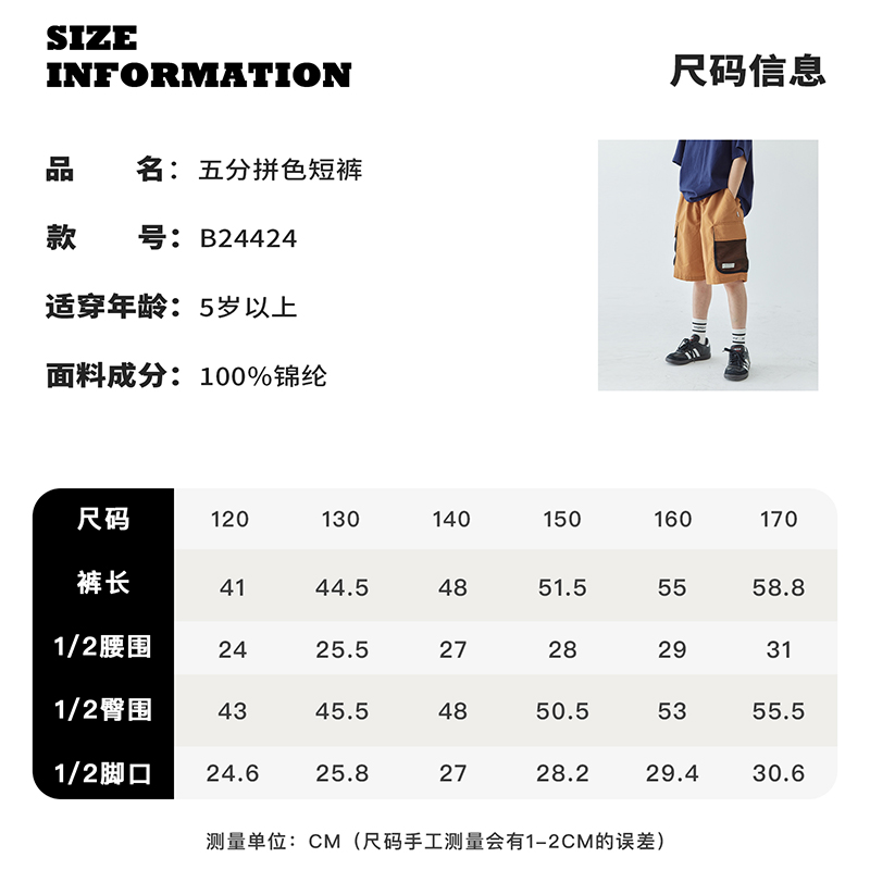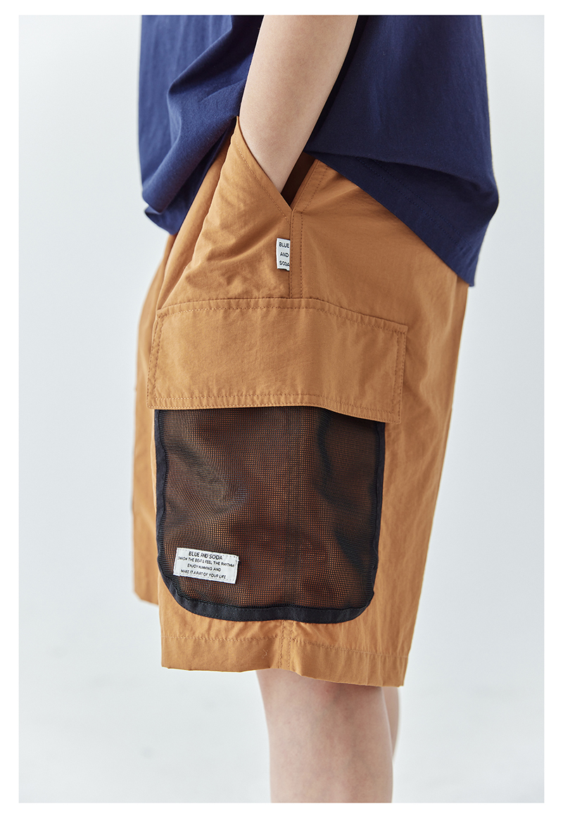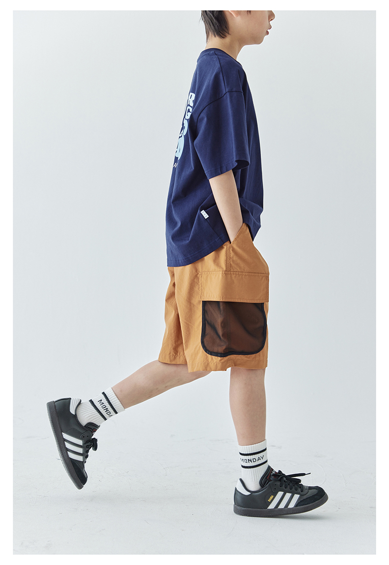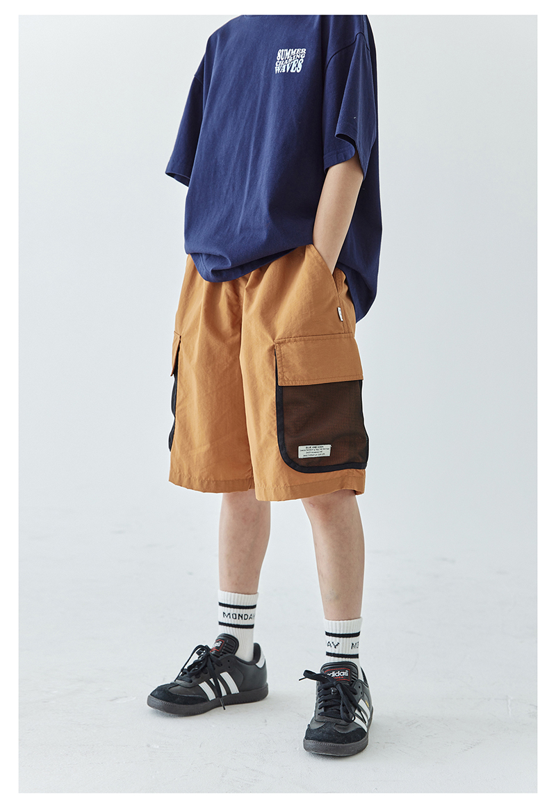 【代发】男童美式复古五分裤 蓝汽水夏季百搭户外工装网眼口袋短裤藏青/橙色