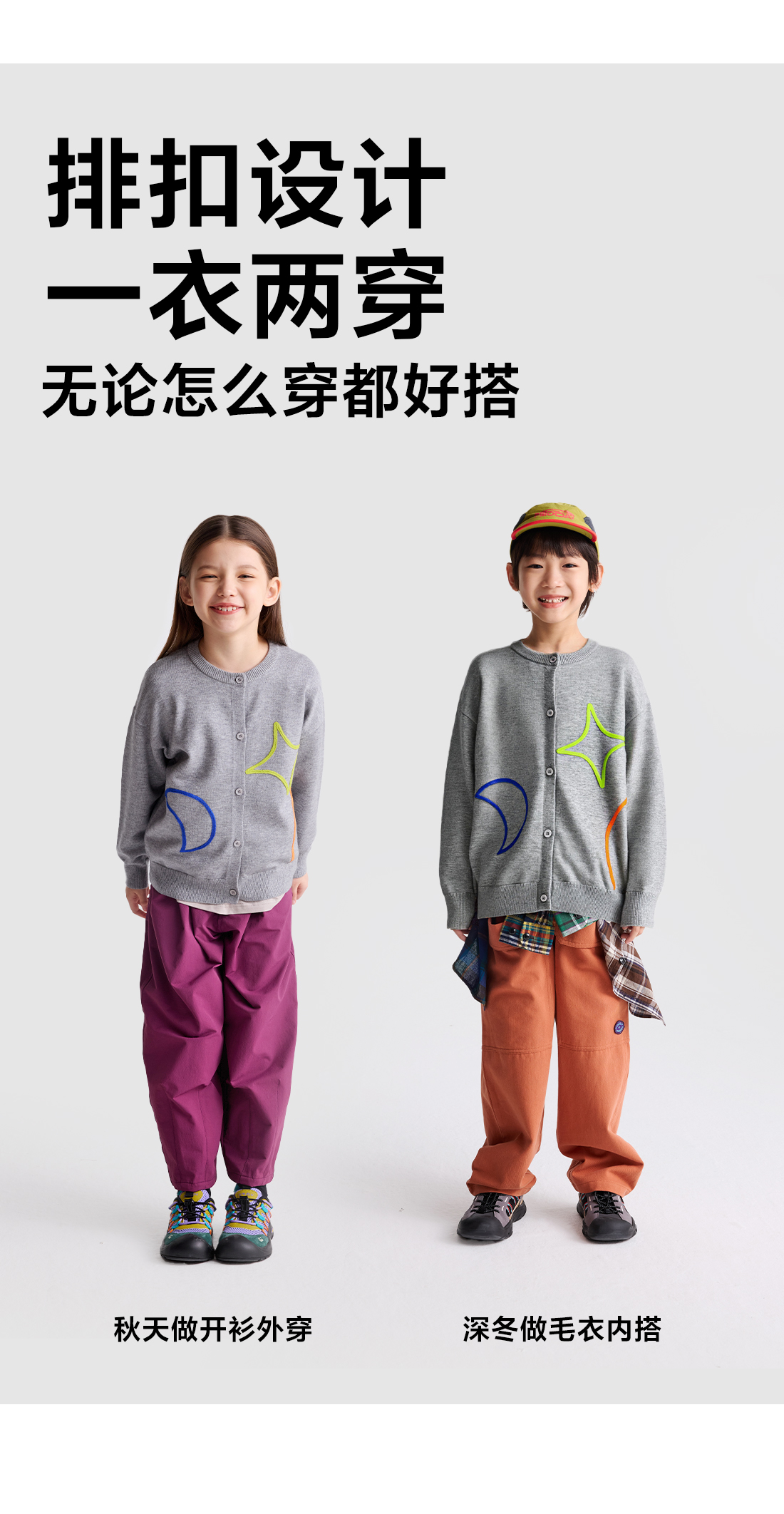 【咕噜日记】儿童【美利奴羊毛】四芒星复古温暖毛衣开衫PDMY2501