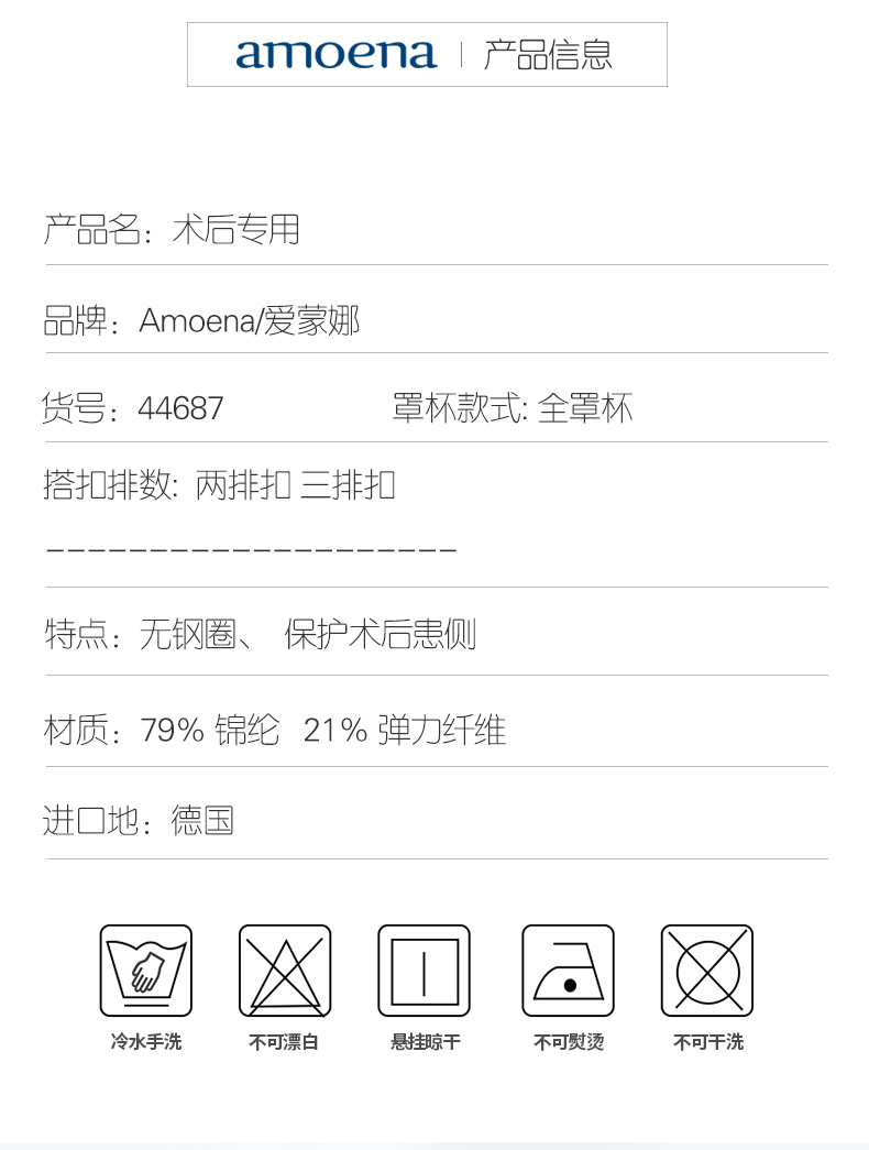 【优惠详情咨询客服】爱蒙娜amoena 德国进口义乳文胸乳腺术后专用胸罩无钢圈内衣44687