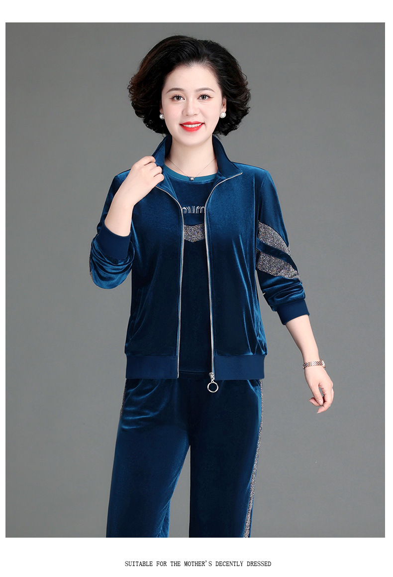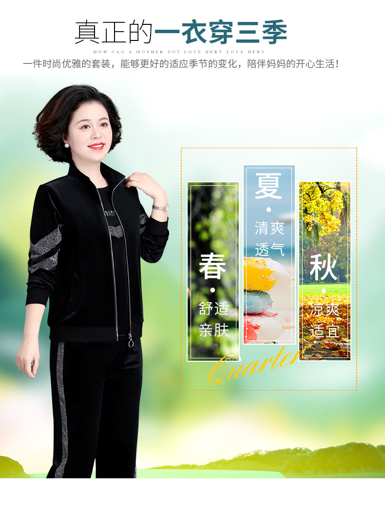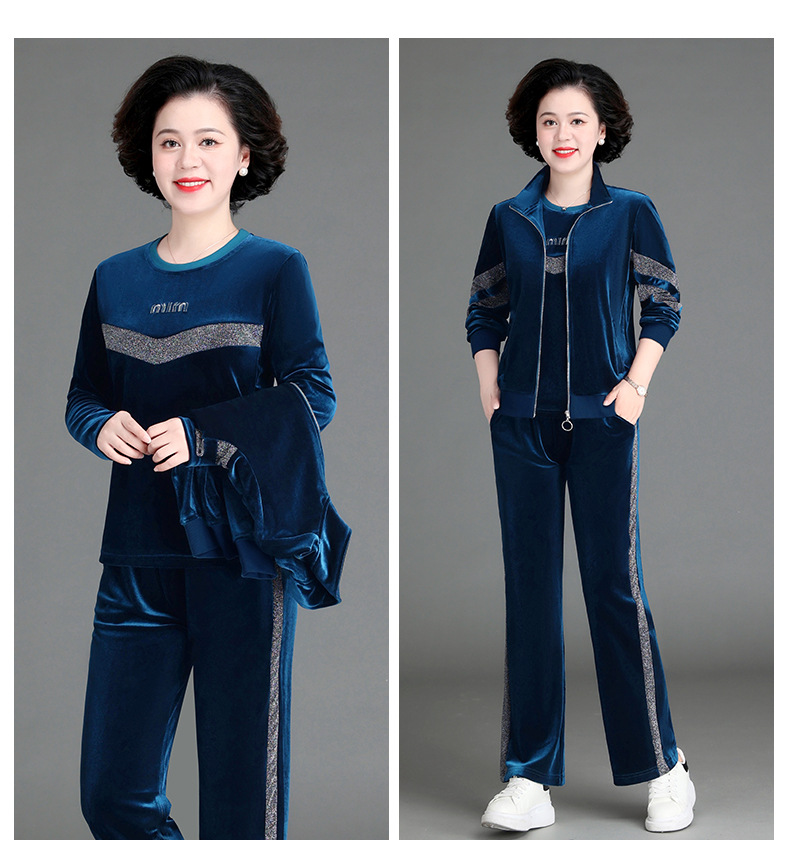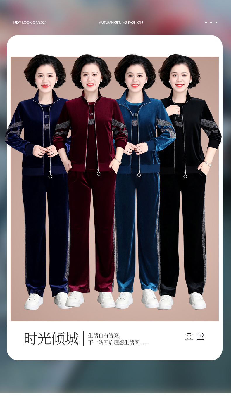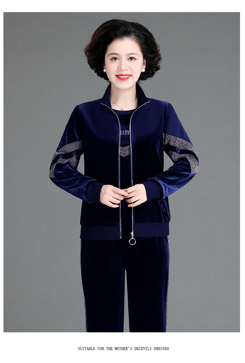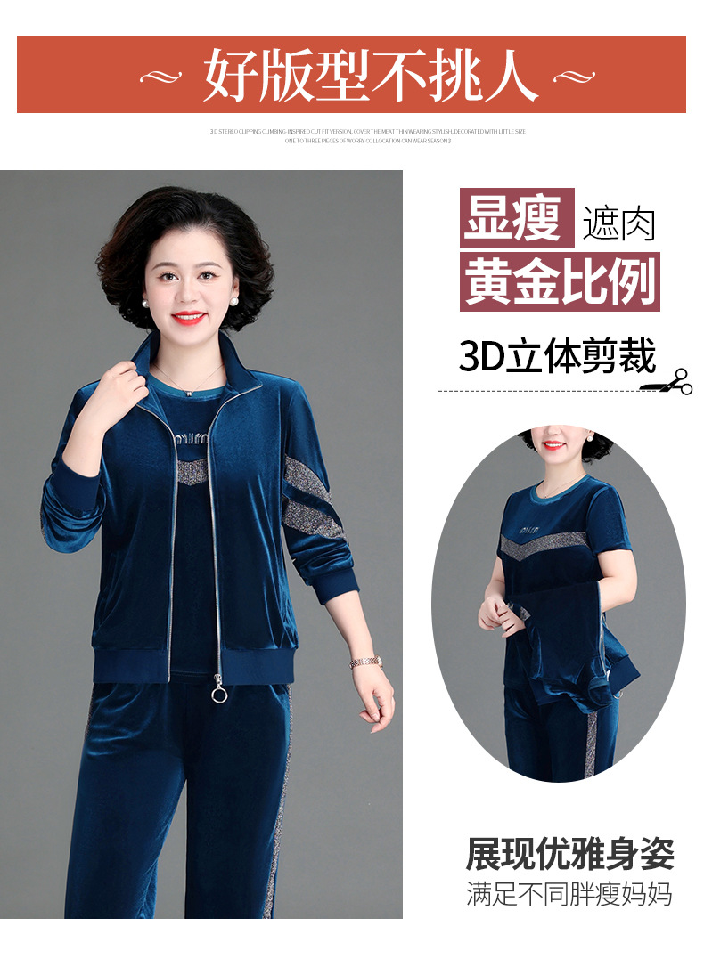 妈妈秋装外套洋气金丝绒休闲运动服三件套装ZB-XH213088