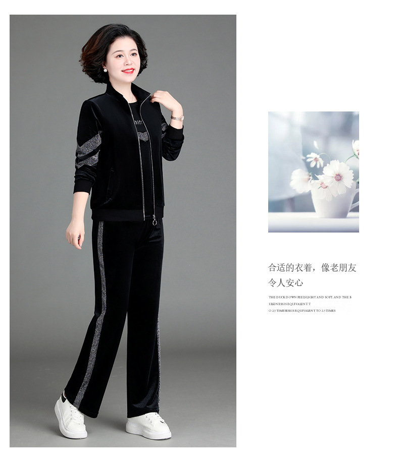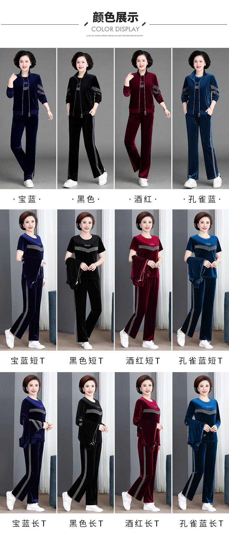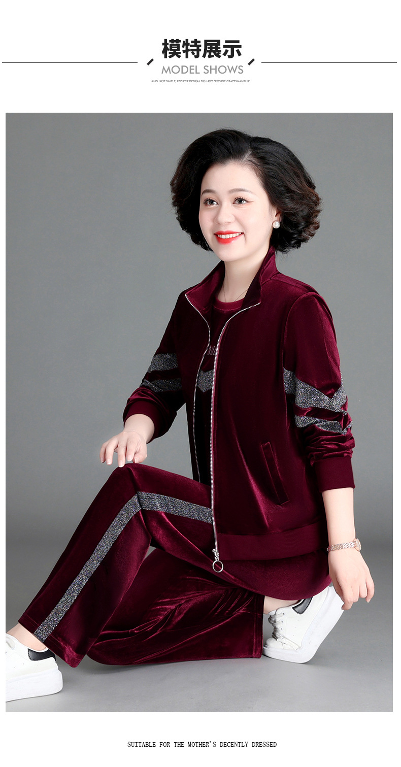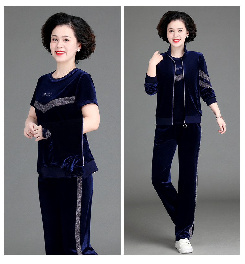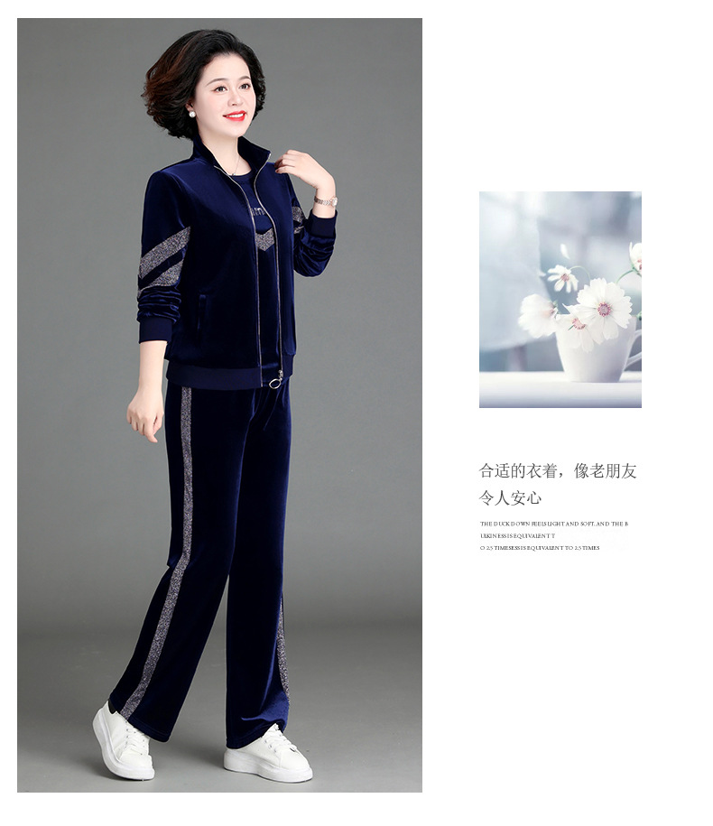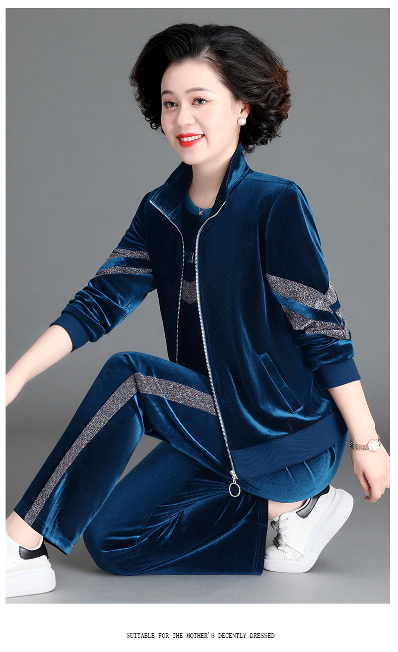 妈妈秋装外套洋气金丝绒休闲运动服三件套装ZB-XH213088